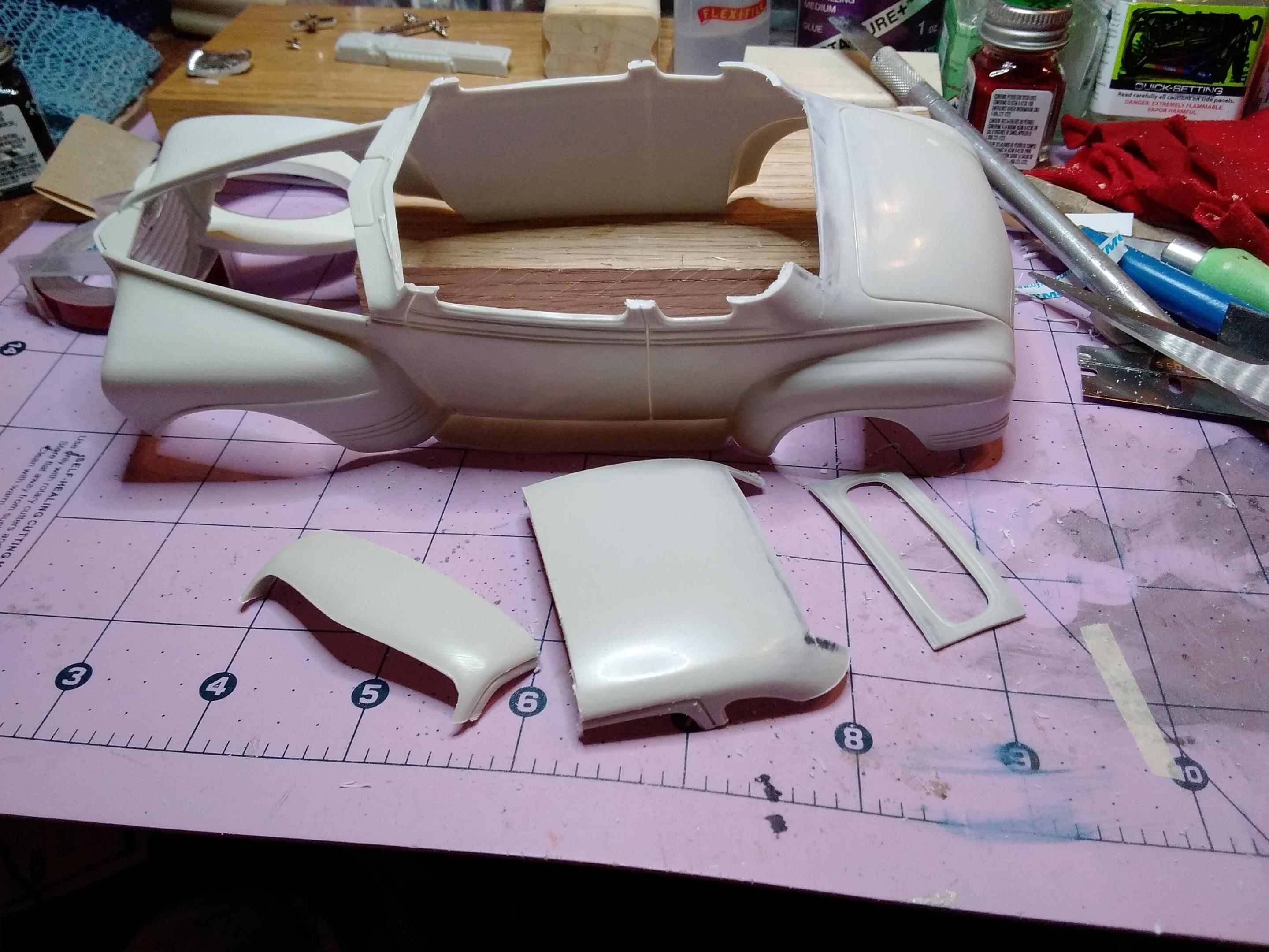 Here's my take on the AMT '41 Plymouth. I have made it my business to chop as many tops as possible ?. This one was somewhat of a challenge. This project is close to completion but for a paint issue. I tried to fix a blemish on the right door and it looked great in the sun....then I went inside. Out of the bright sun I saw that the new paint was a few shades darker. AAAAAUGHH!!! Anyway, here's the build from the beginning.