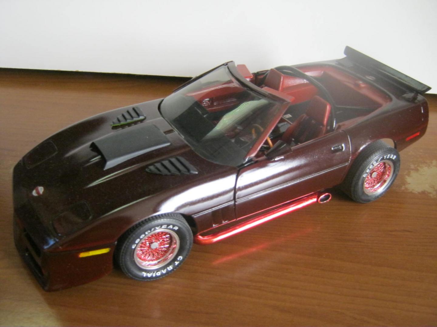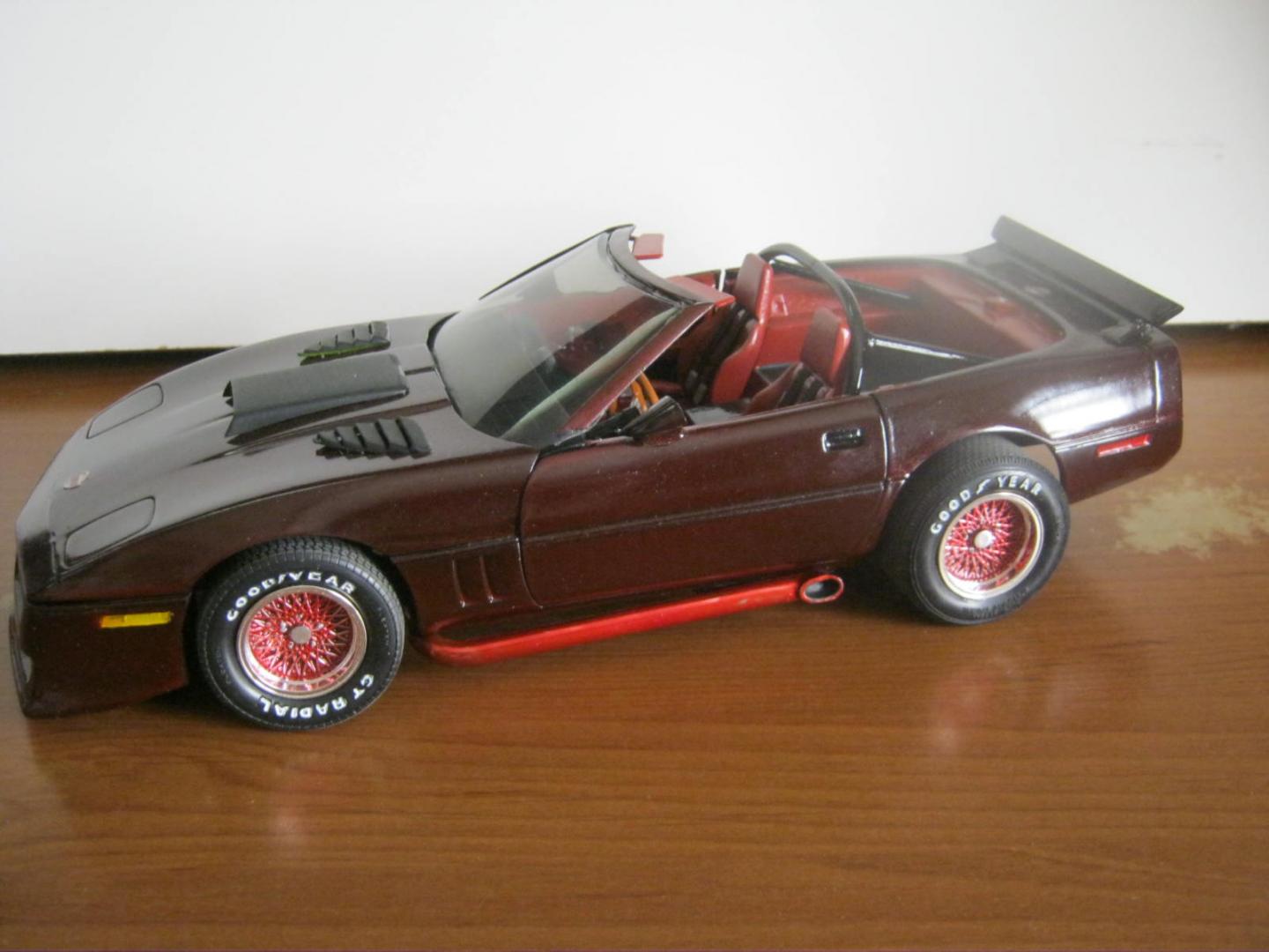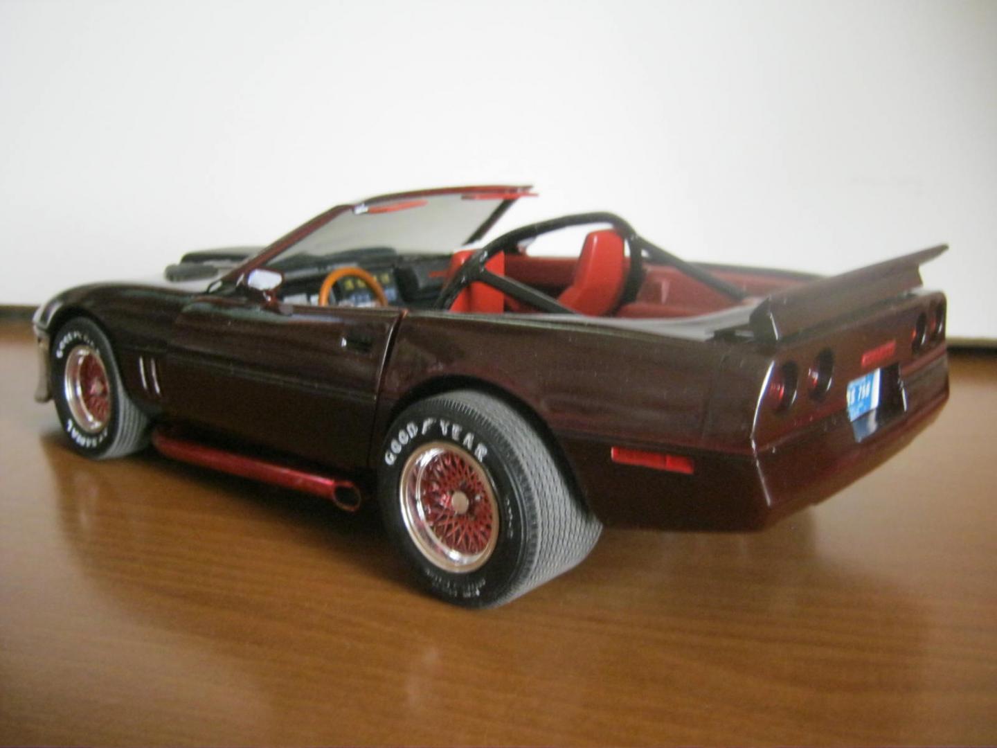 Howdy folks,,just finished a swap meet 15$ MPC 1/16 84' Vette. S-built : Roll bar,,hood scoops,belts,rear wing, I added the rear tires from a MPC 1/16 Cobra kit. Rims came w/the kit. Used Testors Transparent Grape over dollar store F-Blk primer. Hardware store Autumn Red interior. Neat vintage kit. Thanks for looking,keep up the great works!