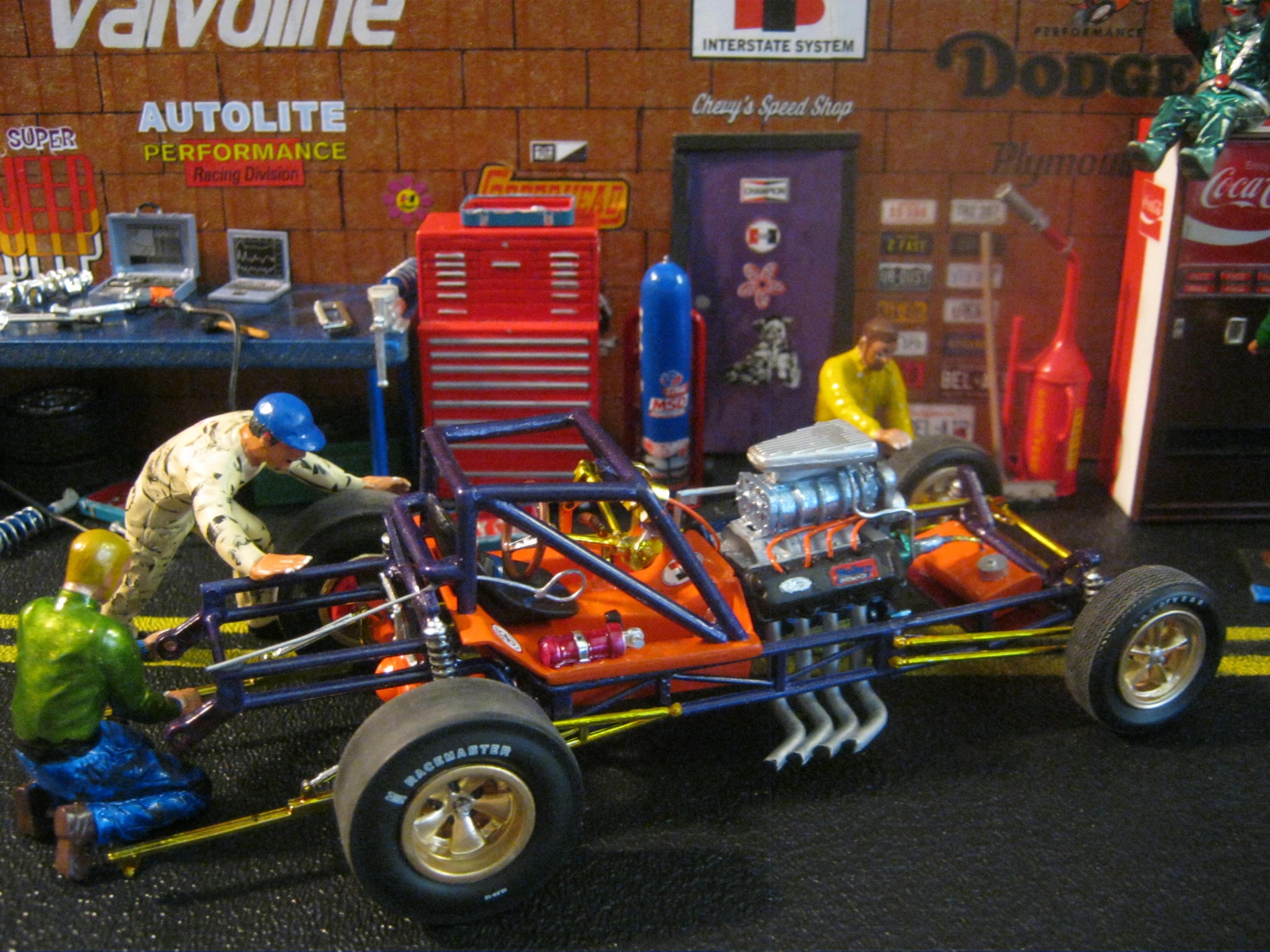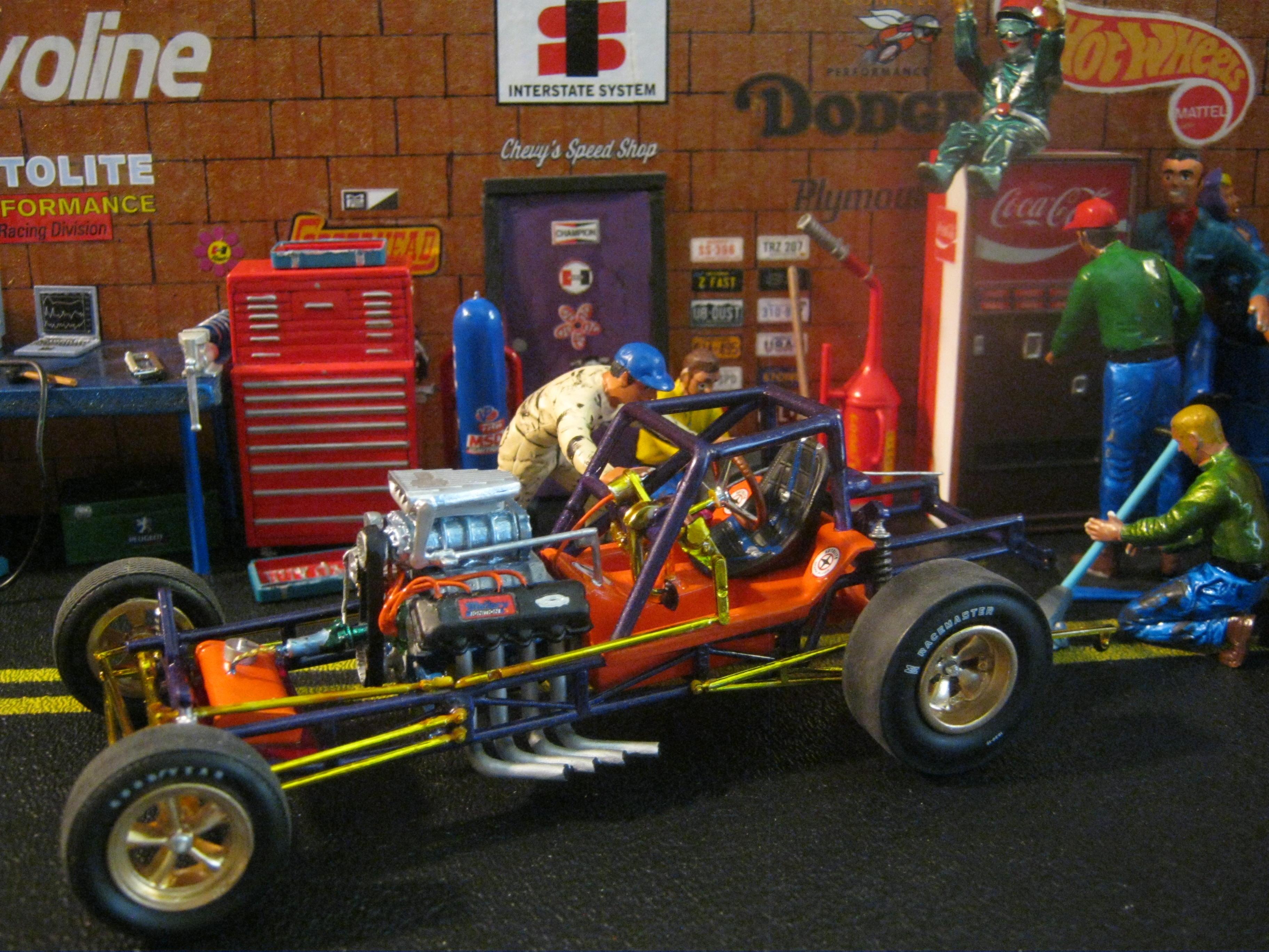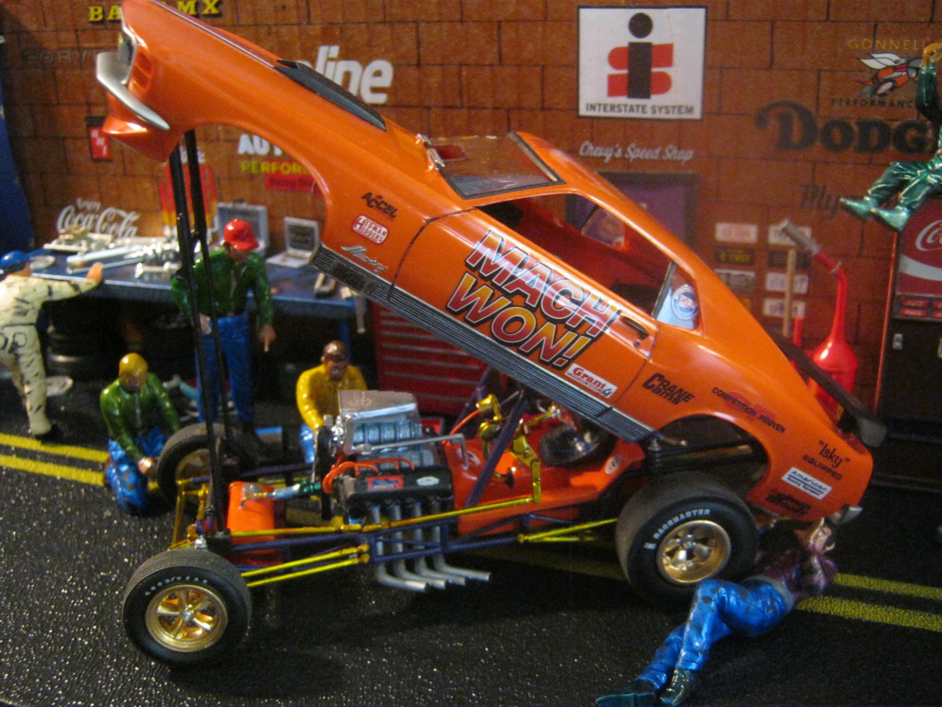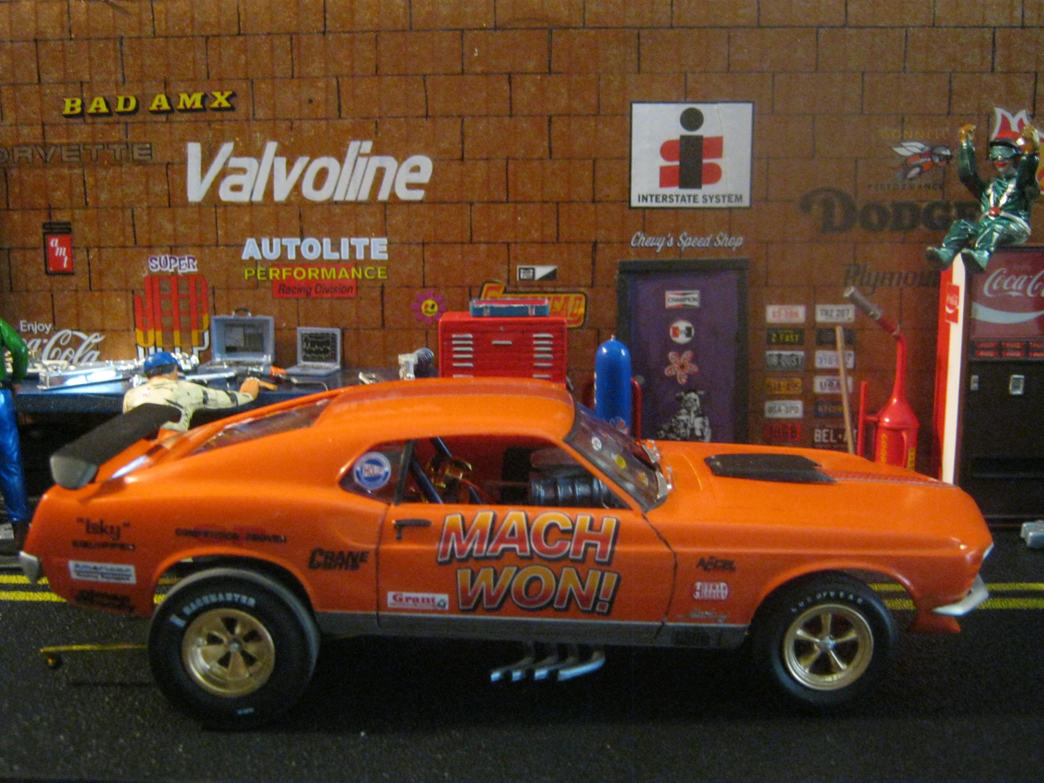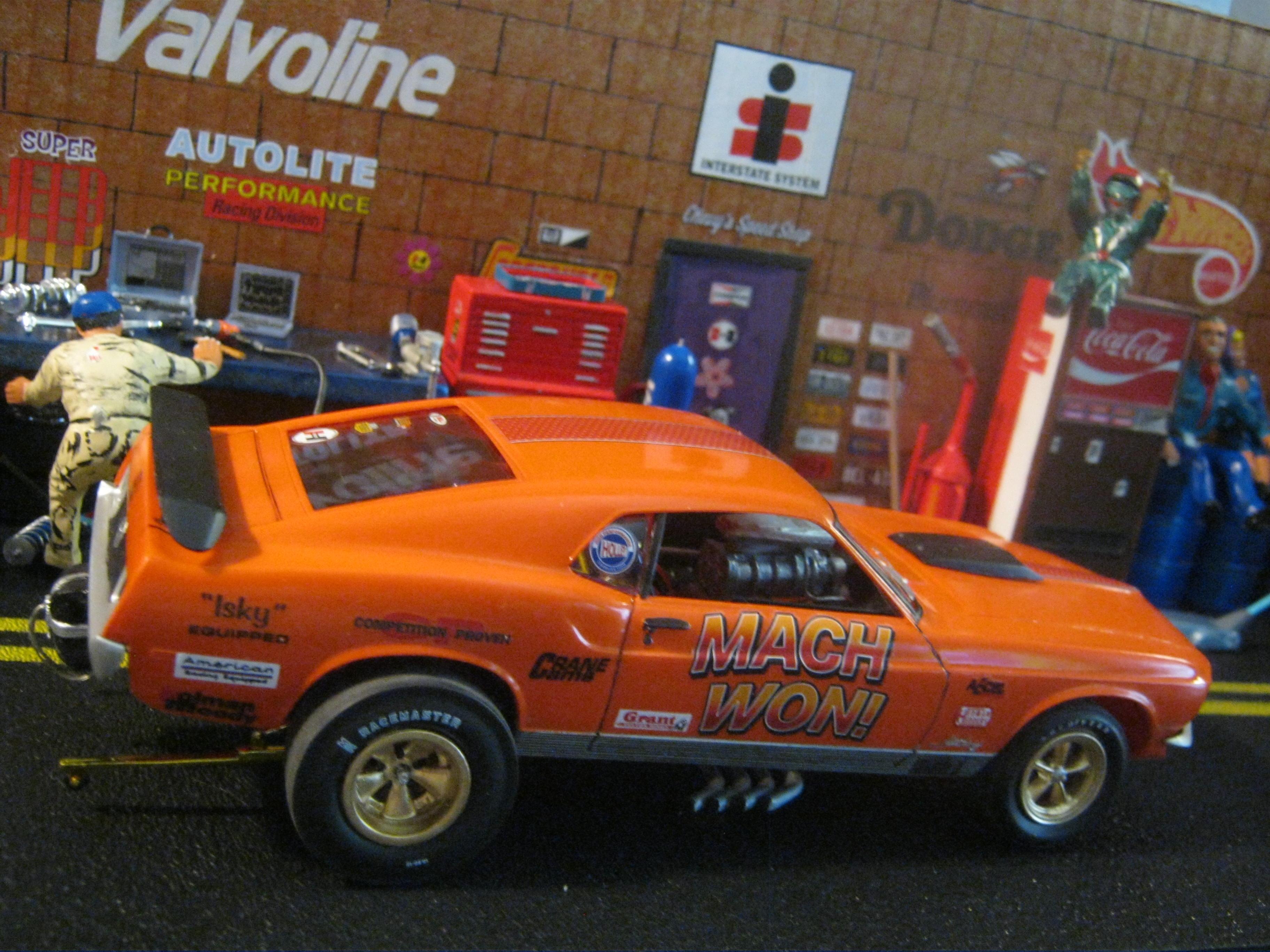 Happy Football day LOL ! I added up how much Football is on today,,its around 16 hrs worth or so,,wow. I can handle only about 4-6 hrs worth. Waiting on the lions game( I live in a Detroit suburb} later today,,I just finished the AMT Mach Won F/C. For starters ,,youll need alot of patience for this one,,alot of issues with this one. But I dont want to go on about it all,,all I can say is the design and engineering for this is way off on many things. But with some creative skills and the trusty dremmel,,it can be done. Anyways,,I used tamiya orange rattle can spray for body,,tamiya purple for chassis,,and hardware store paint for the Flt Black. The kit turned out great but like I said its an uphill climb to get there. So there it is,,the AMT MACH ONE!! Cheers SS