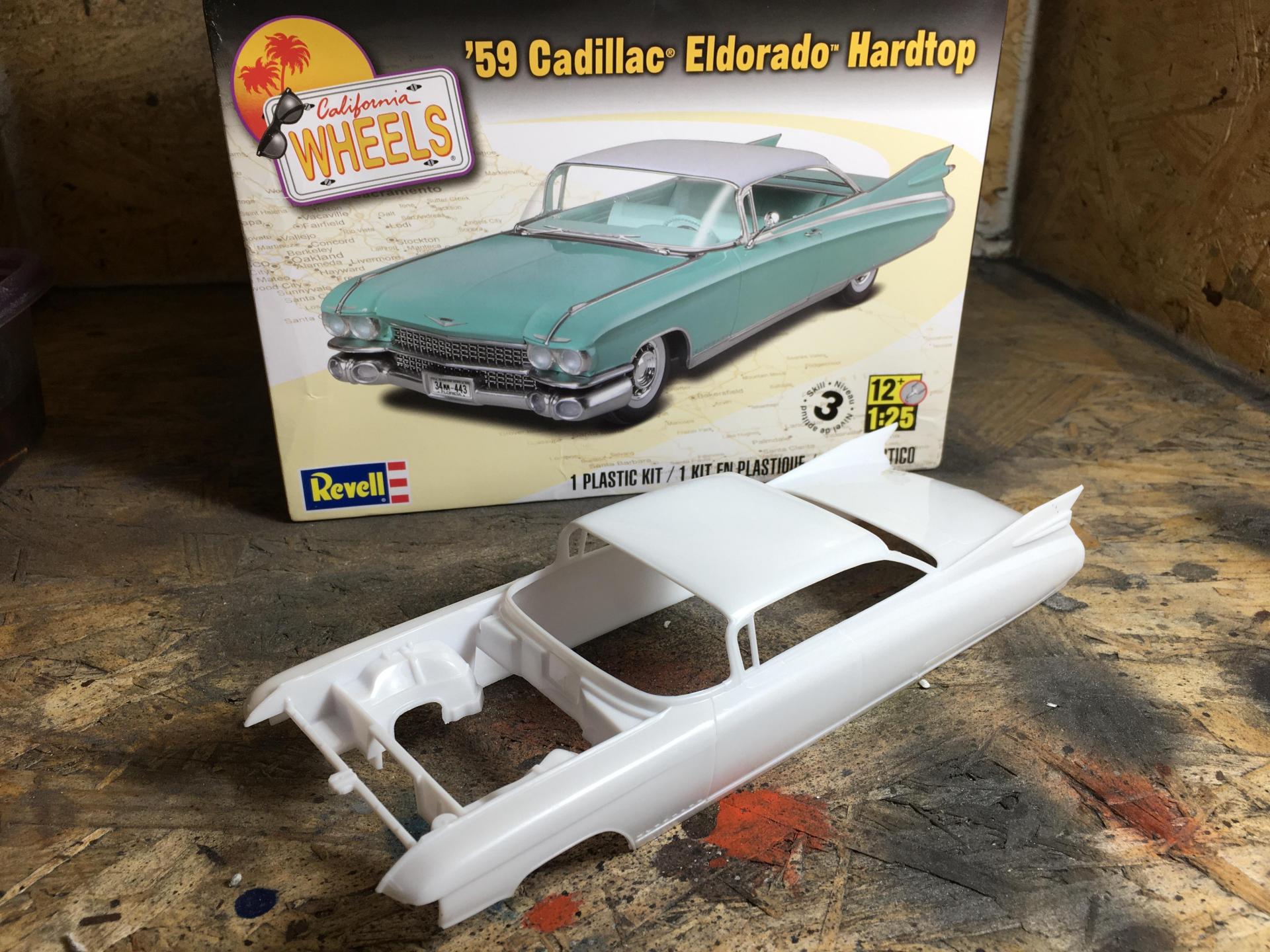 While I wait for some bmf for my copo build I pull out the 59 eldorado and put it on the work bench. Nothing special with this one. Basically a box stock build. Wired engine. Hot pink over black which will give it...well let me dig up a picture of a convertible I built a few years ago.