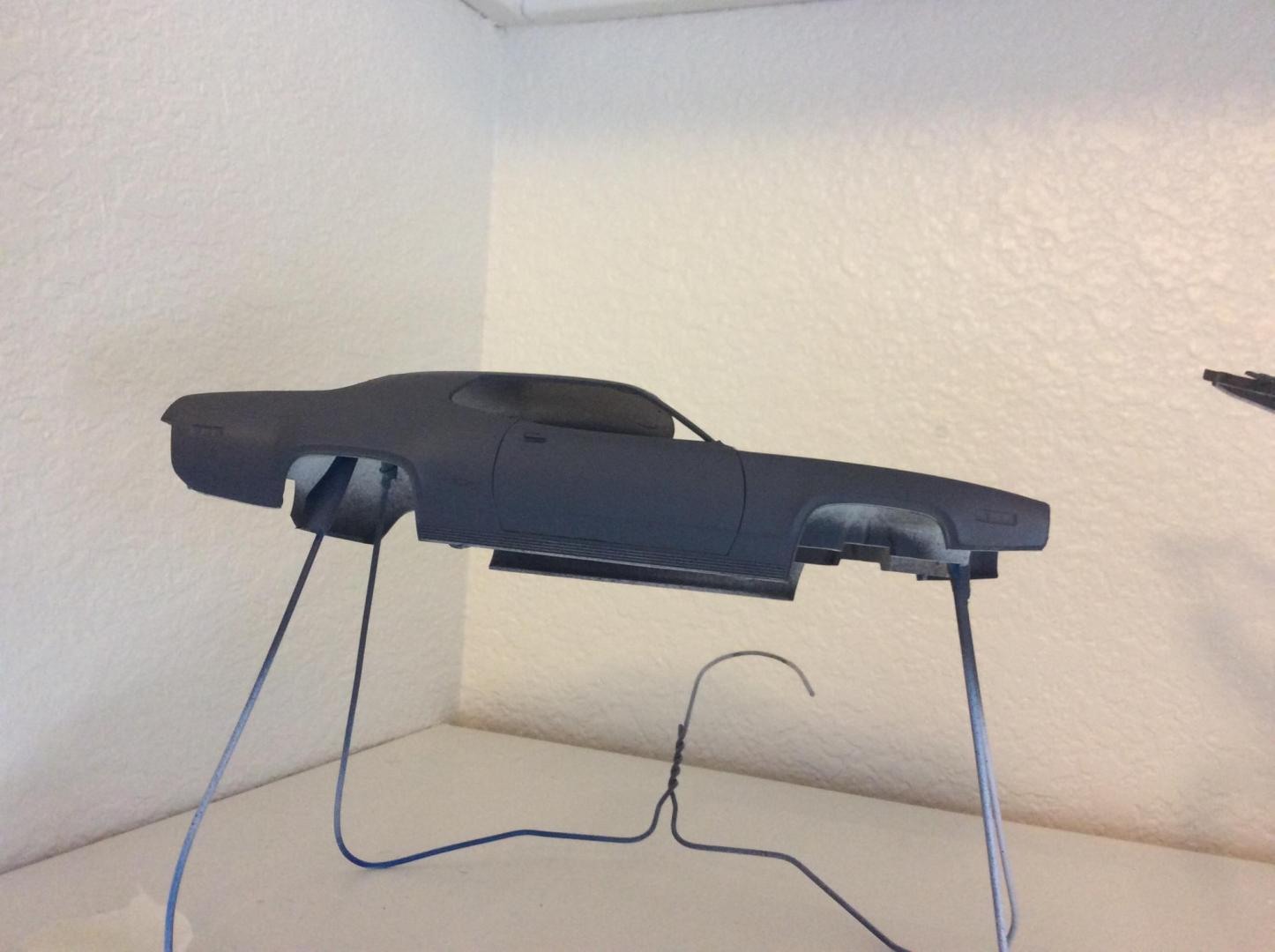 This will be my second build. I have some new tips to use and new tools. Last build I didn't use primer, I am this time. I didn't do much detailing either, but plan on hand painting some stuff on this engine. Plan on a two color paint scheme. Going fiery orange for the main body with the tail and hood scoop black. Black interior as well. Very excited. Priming the body and larger parts now, along with engine. Plan on taking more time on letting paint and primer to dry longer. I hope by tomorrow evening I can start hand painting motor.