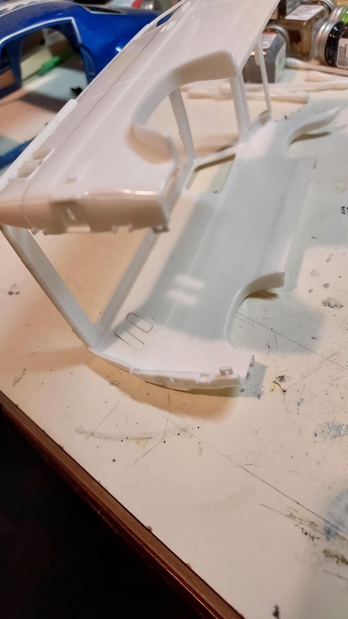 Saw a rendering by Ragle of a Mustang race-concept protouring and said I have to build this. Starting with the AMT Shelby GT-350 Looked at variations for stance, not doing this, just to show what the wheels and tires I will be using look like in a stock position Thought about tucked in the wheel wells... nah... everyone does this with building an Eleanor... Drew out a starting position for trimming... Trimmed out a lot more than I first thought... This is the stance I was looking for and the rendering by Ragle Started the flares... Added the front sail-vent behind the front wheel and modified the side window opening to give it a new lower-chopped look. Also added a deeper body line tying the front sail-vent to the rear scoop and molded it all in. Note the smaller side sail scoop, I think it looks better cut down by a third of the orginal size, this will be moilded in as well.. Created the rear sail-vent behind the rear wheel... haven't decided if I will change the shape of it yet... Feedback? Finally... in primer 3/6... Primary body mods are complete, next is custom racing chassis with ground effects package, splitters, air-dams and rear diffuser