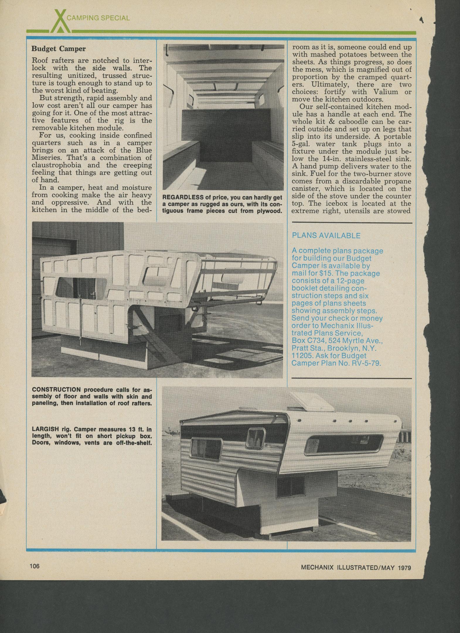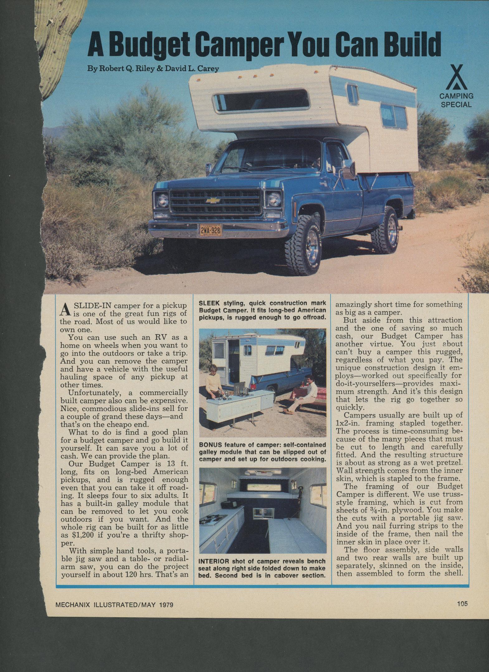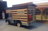 HI! Once in a while, I like to get out of my usual subjects (pro-Touring, street-rods, Bonneville cars) to scratch-built something different. Last fall, I saw a nice Westfalia camping van built by a young man at a model show in Montreal, and it got me remembering a 1/1 '66 Chevy van I converted to a camper in the 70's. So... I took an AMT Chevy S10 X-treme pick-up, modified it, and straddled the box with a totally scratchbuilt "fold-away" camping cabin of my own design. Look closely, and you'll see all the composite panels can pivot, slide-out and pop-up in position to allow 4 adults to sleep in dry comfort on a wide flat floor, and still be able to use the PU box to carry stuff concealed from view, and the weather. In the morning, you just climb down the ladder, stack the mattresses, tilt and slide-in the side extensions, flip-up the front and rear walls (with window and door) inside the roof, and lower the roof/cap to seal it all. Ready to go, with minimal wind drag behind the PU cabin. Unless you load the roof rack with bulky objects, but you know... While at it, I made a custom "base" to recreate camping life around the charcoal BBQ. How would you like your steak? Hours of fun with styrene... CT