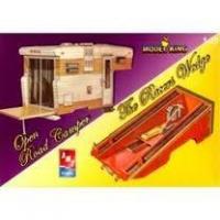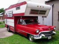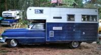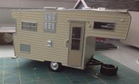 I have always been fascinated by Campers. Just the idea to have a small mobile home, and to be independend and travel where ever you want and always have a place to sleep. I have been building model kits for over 42 years, but always wondered why model car manufacturers did not make campers, caravans RV's etc. A while ago I found this awesome kit from AMT called " the open road camper". I bought it right away, but it was a stand alone kit without a car attached to it. I tried to cut up several model trucks to see if they would fit, but they were all too big. Recently I came across a bunch of photos of Campers with a regular passenger car in front of it. I even heard that Cadillac used to built them! I think I'm going to try my luck and saw a model car in half, to see if it would fit my open road camper. It's a whole new world for me, I have never really tried to cut kits in half or make serious modifications, like most of the expert builders on this forum. Wish me luck!