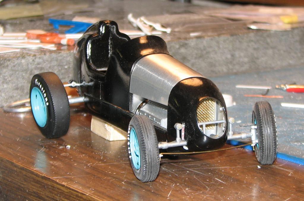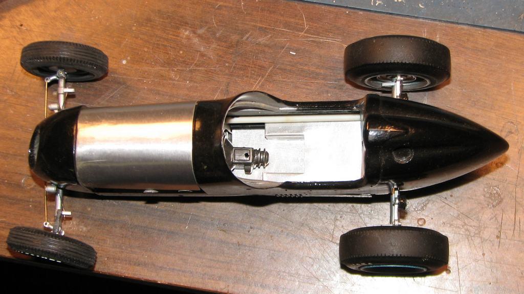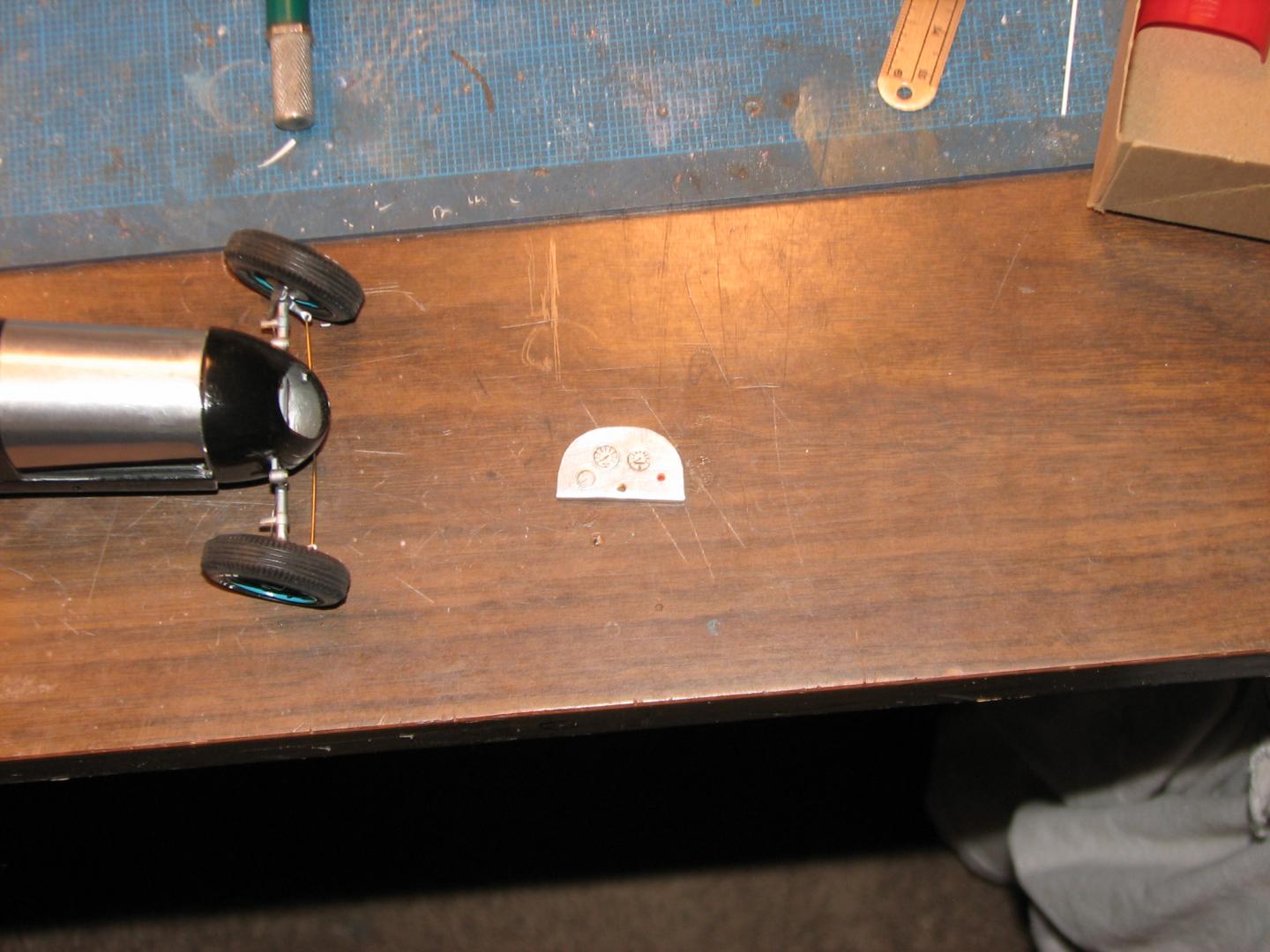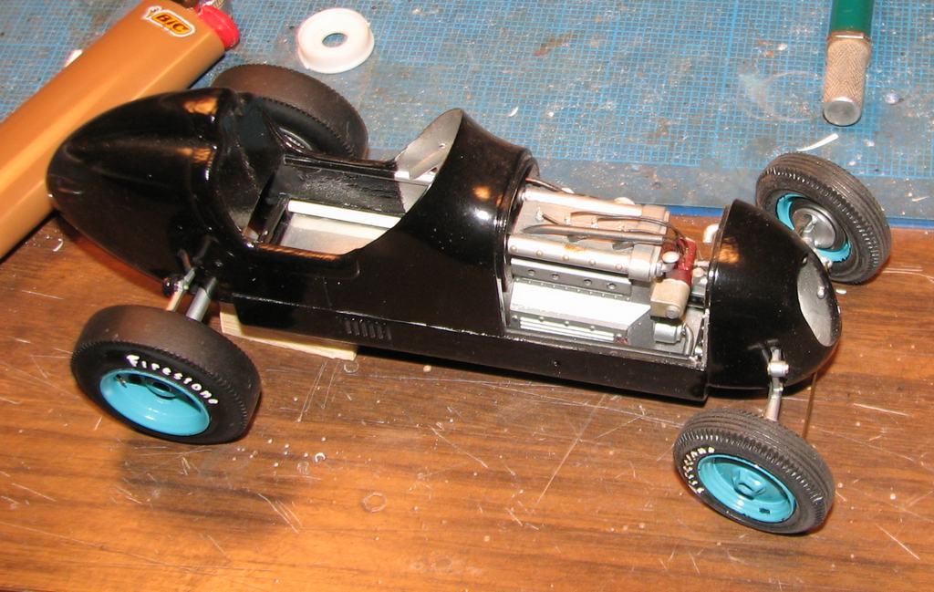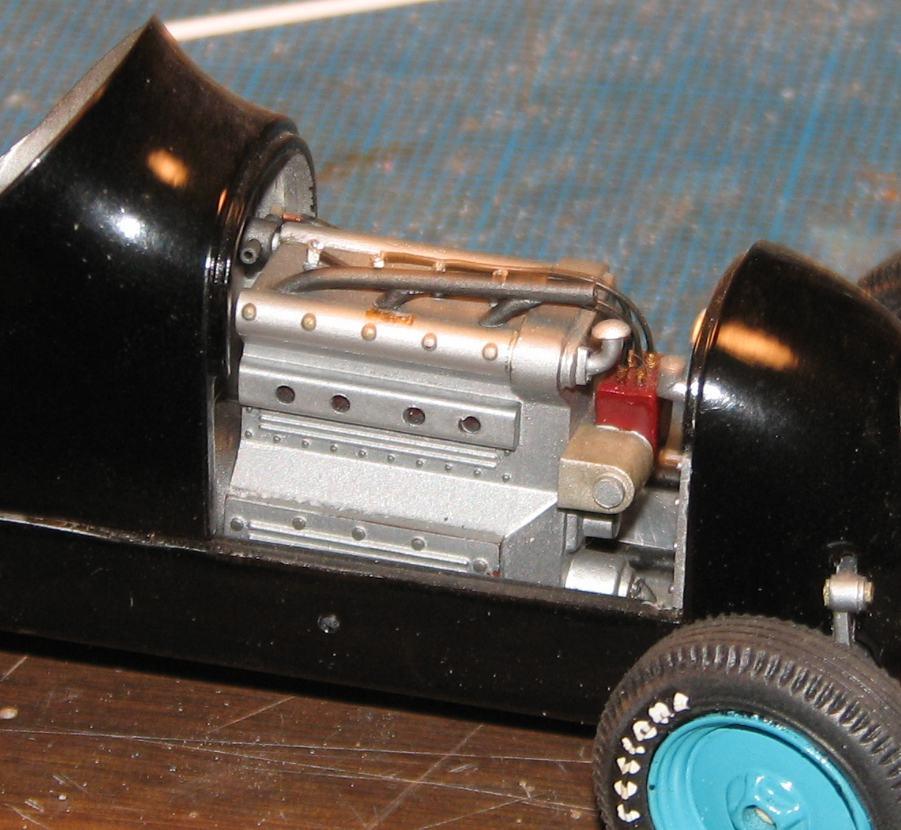 I started work on this almost twenty years ago, moved on to something else, and put it back in the closet. Last night, I decided to get it out and take some better photos of it. It began as Monogram's old off-scale Midget kit. Inspired by the old Belanger Special Indy car, I cut it apart and lengthened it, to better represent one of the "big cars". I am considering finishing it up, as I don't think it would require too much time (relatively speaking) to do so. The radiator is completely scratchbuilt. The firewall, hood and seat support are aluminum sheet. Evergreen styrene tube and half-round were used to represent the chassis tubing. The dash has photo-reduced gauges, is covered with "tooling aluminum" found at a crafts store, with bezels (one of which has detached and departed) made from aluminum tubing. Most of it is from the kit, with some modifications and/or enhancements. I've said before that I love these old Monogram kits! I've also been told that I do much more work on them, than they deserve! For me, they capture a real sense of Americana and nostalgia, and, given some attention, they look pretty cool, sitting in the display case. Comments and questions welcome. Thanks for having a look!