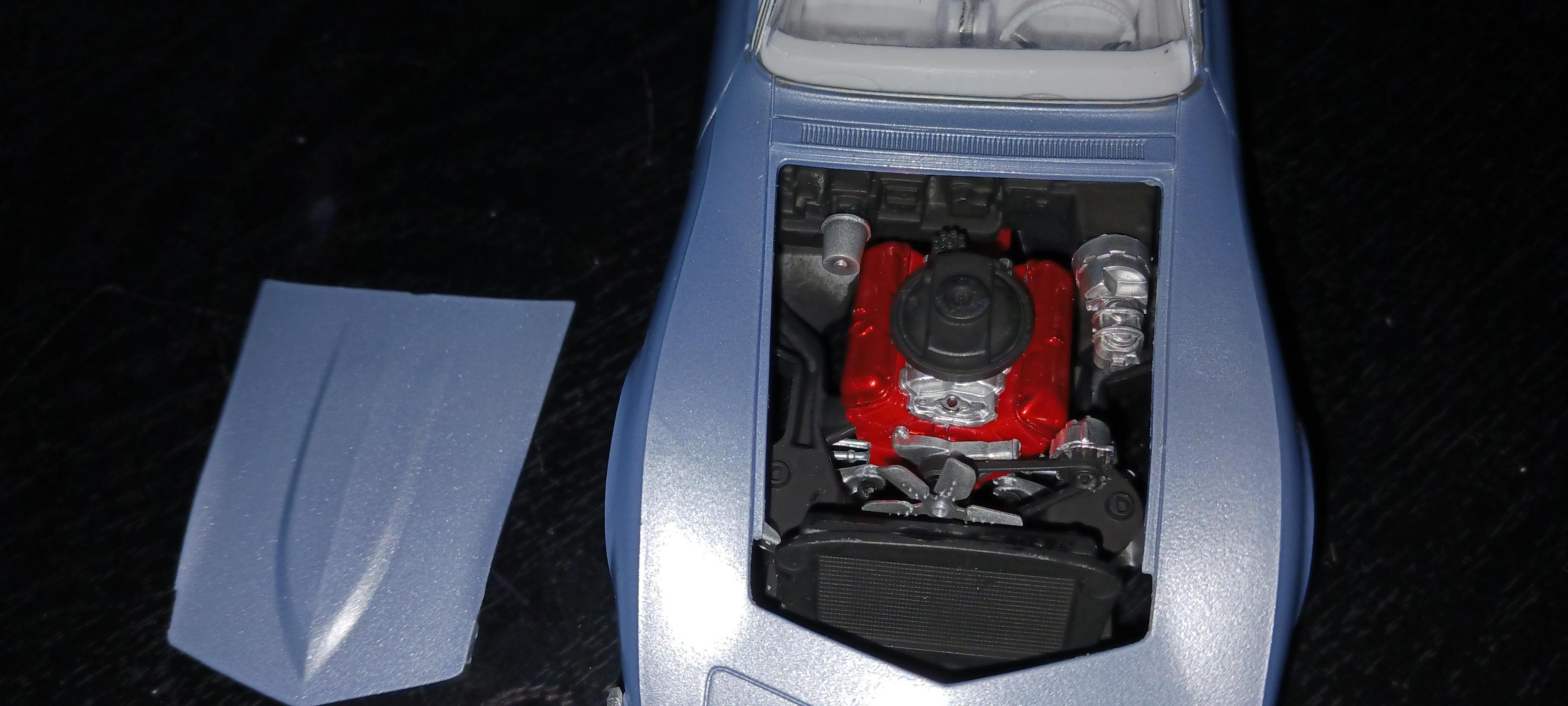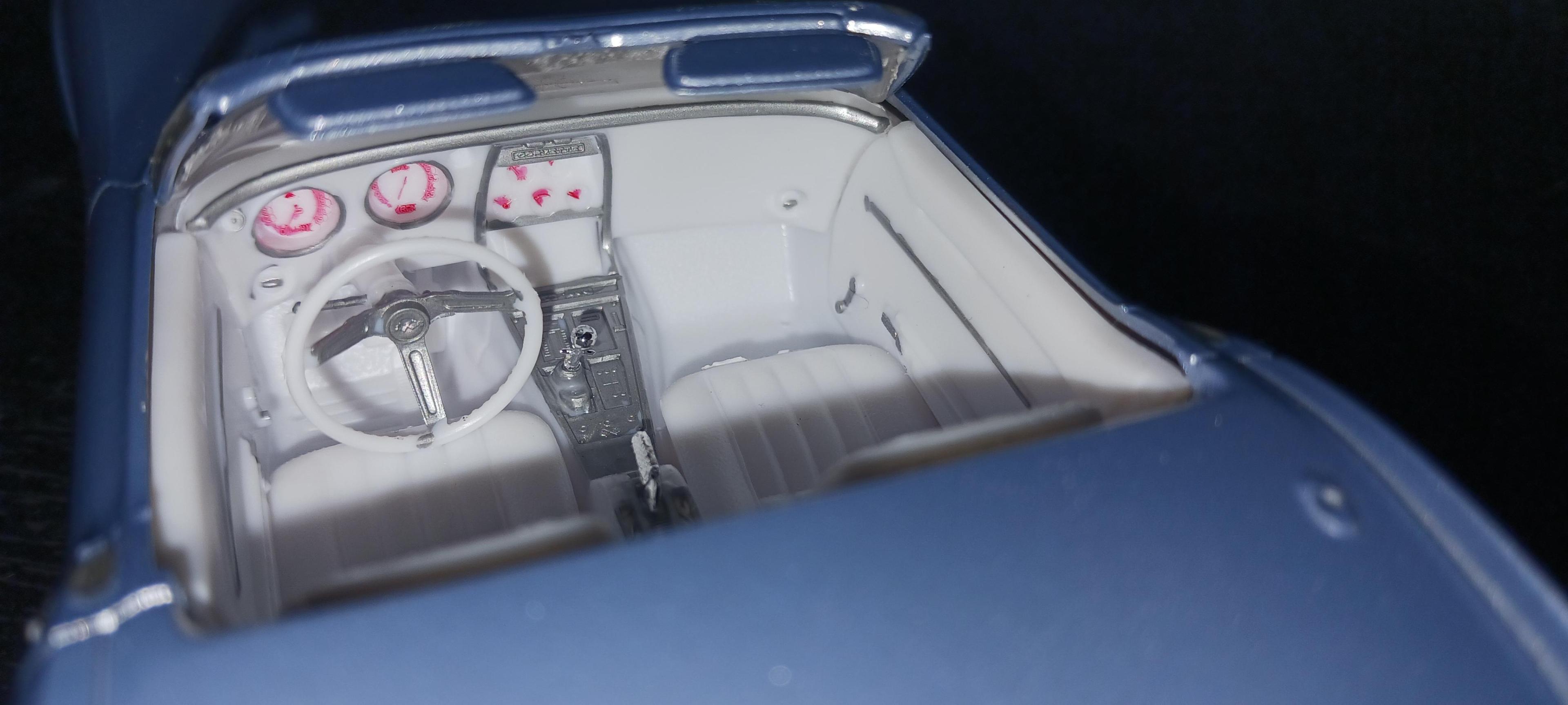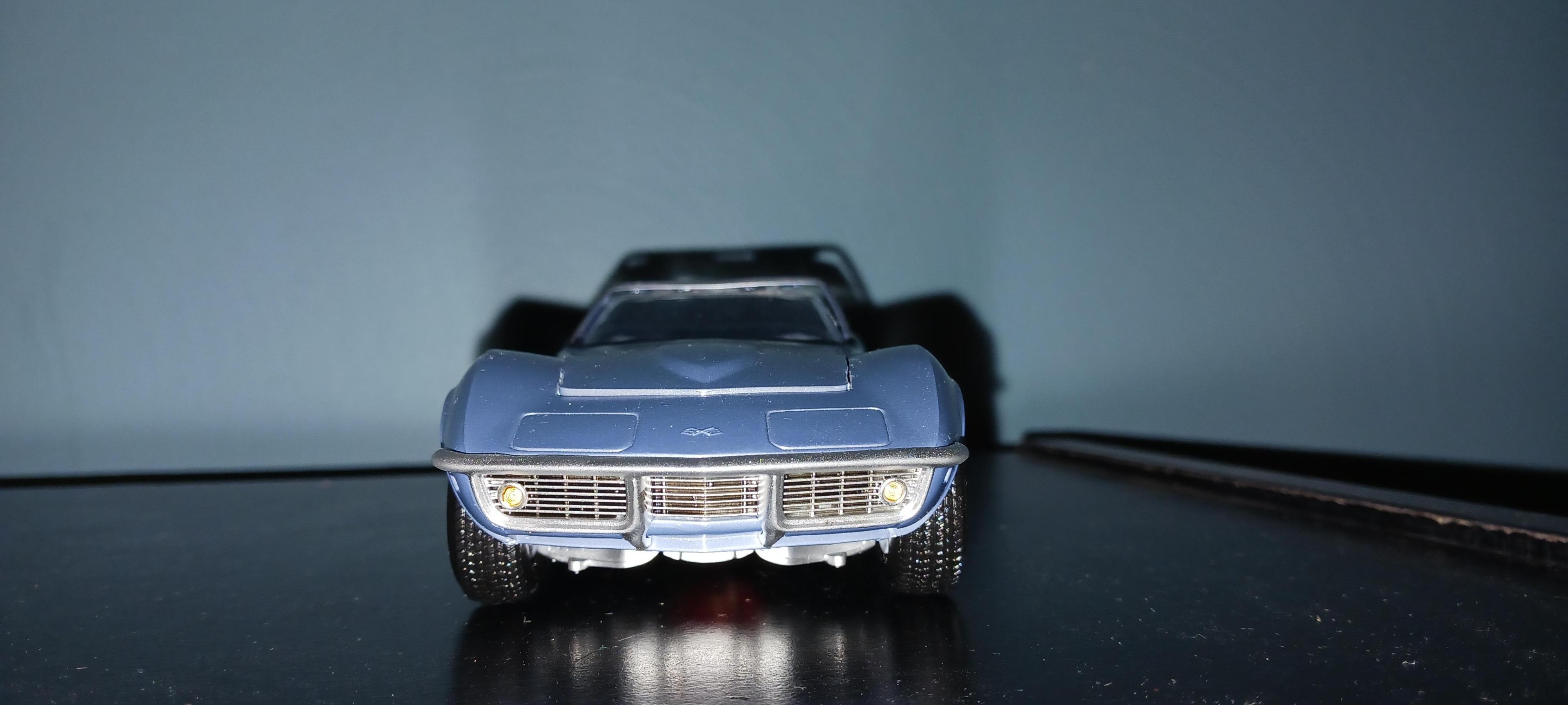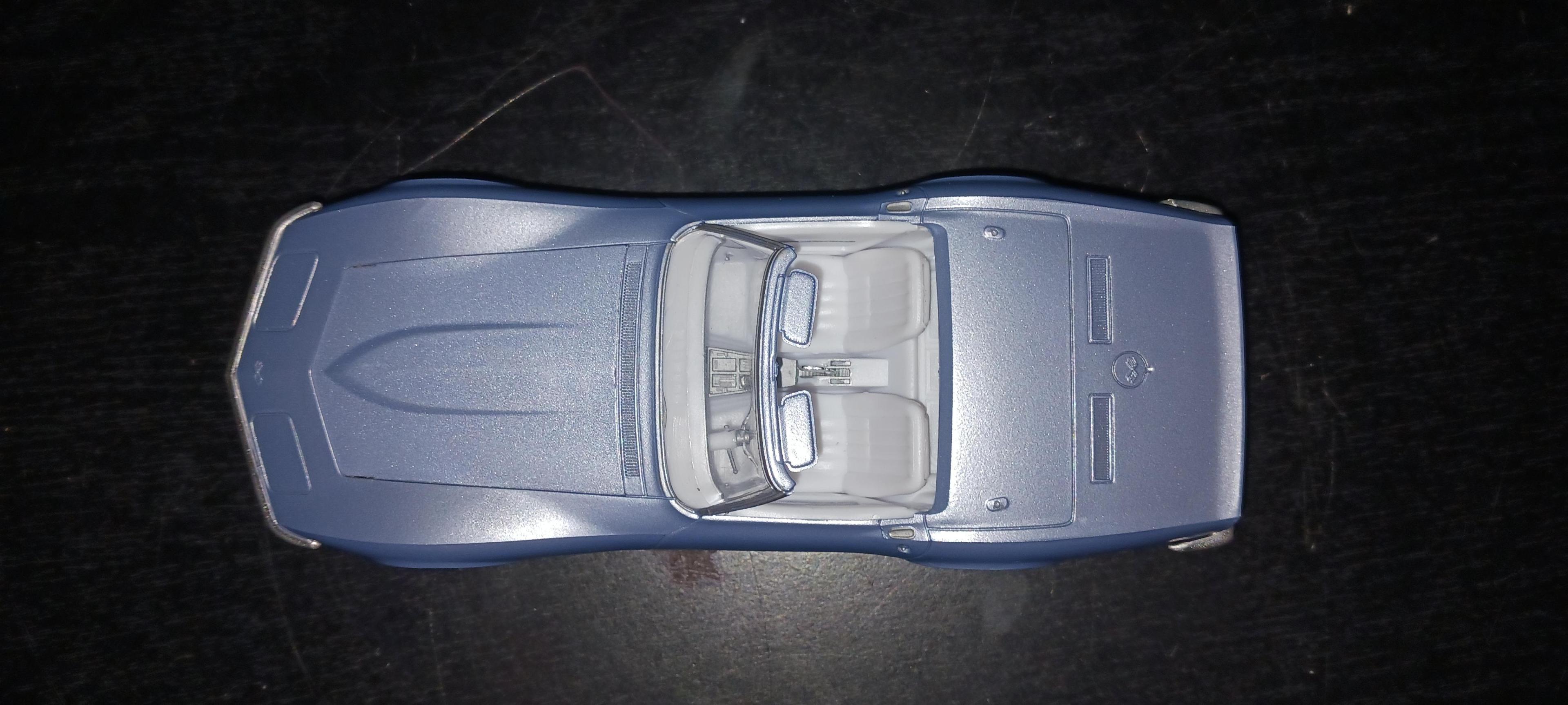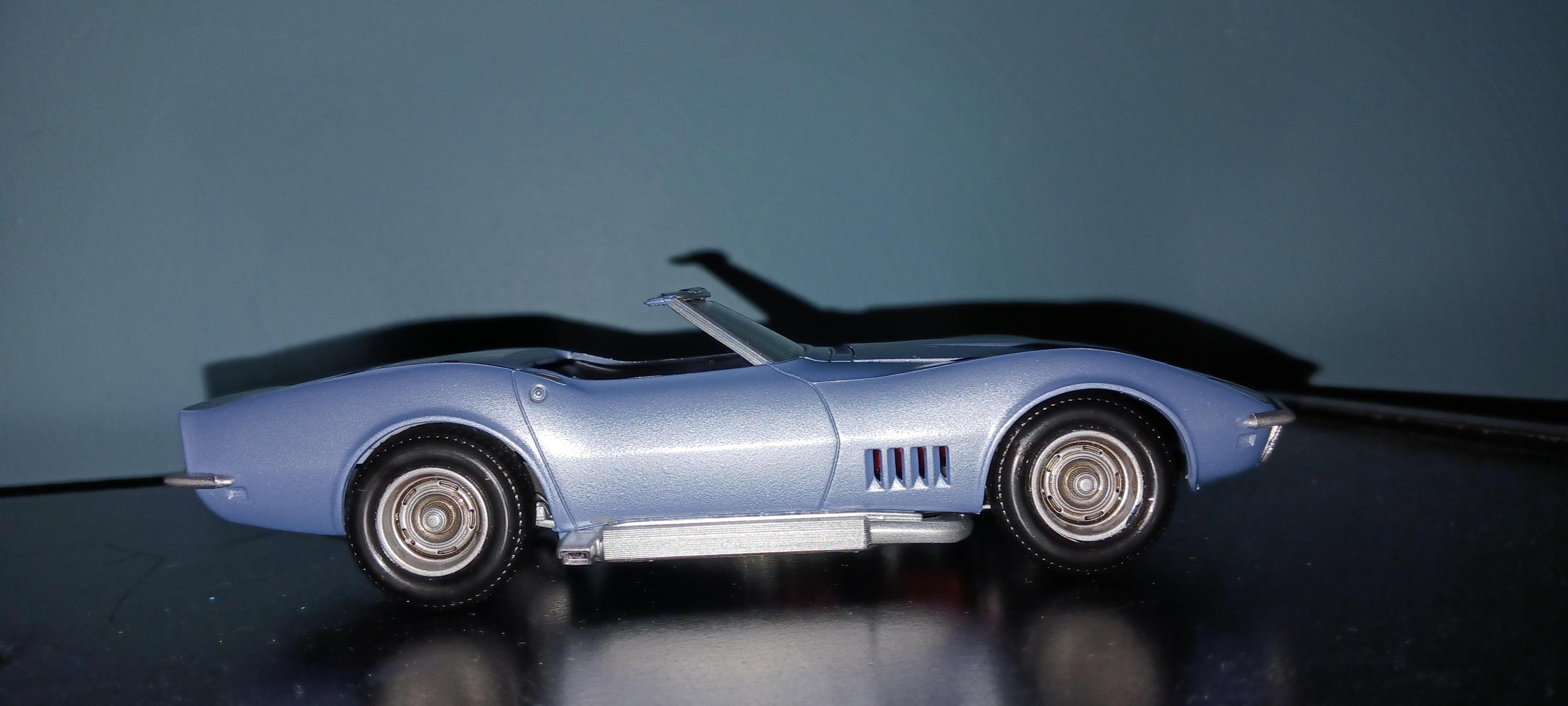 Revell 68 corvette convertible 2in1 kit I got in a trade with a friend I had planned on doing it as a hardtop but changed my mind last second before i glued the hard top roof on and had planned on using factory stock exhaust but the exhaust pipes would not fit right so I went with the custom side pipes I painted the body Tamiya ts-58 pearl light blue i have a song that came out in 68 playing in the background of the video
