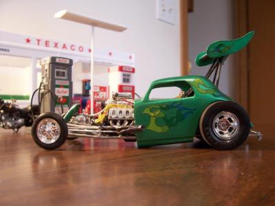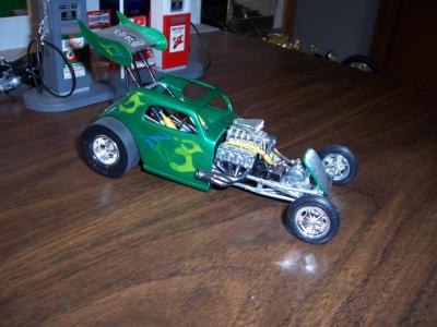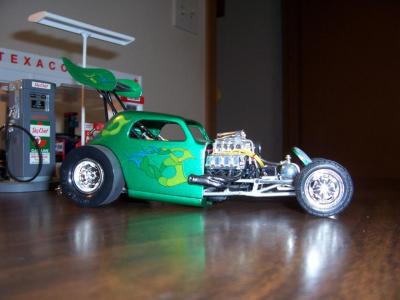 Hi all,,one of my fav kits,,the 1/12th Lindberg Topolino,,with some x-tras. Sprayed w/Testors qukdry lime green,,diamond dust for the chassis. And some hand painted accents. Build on!