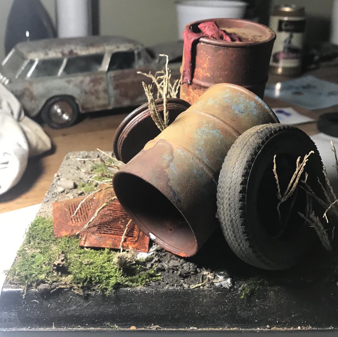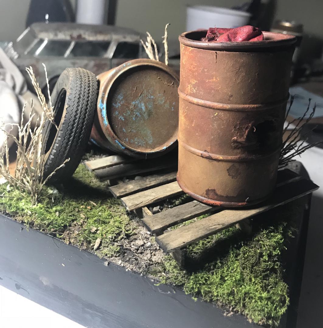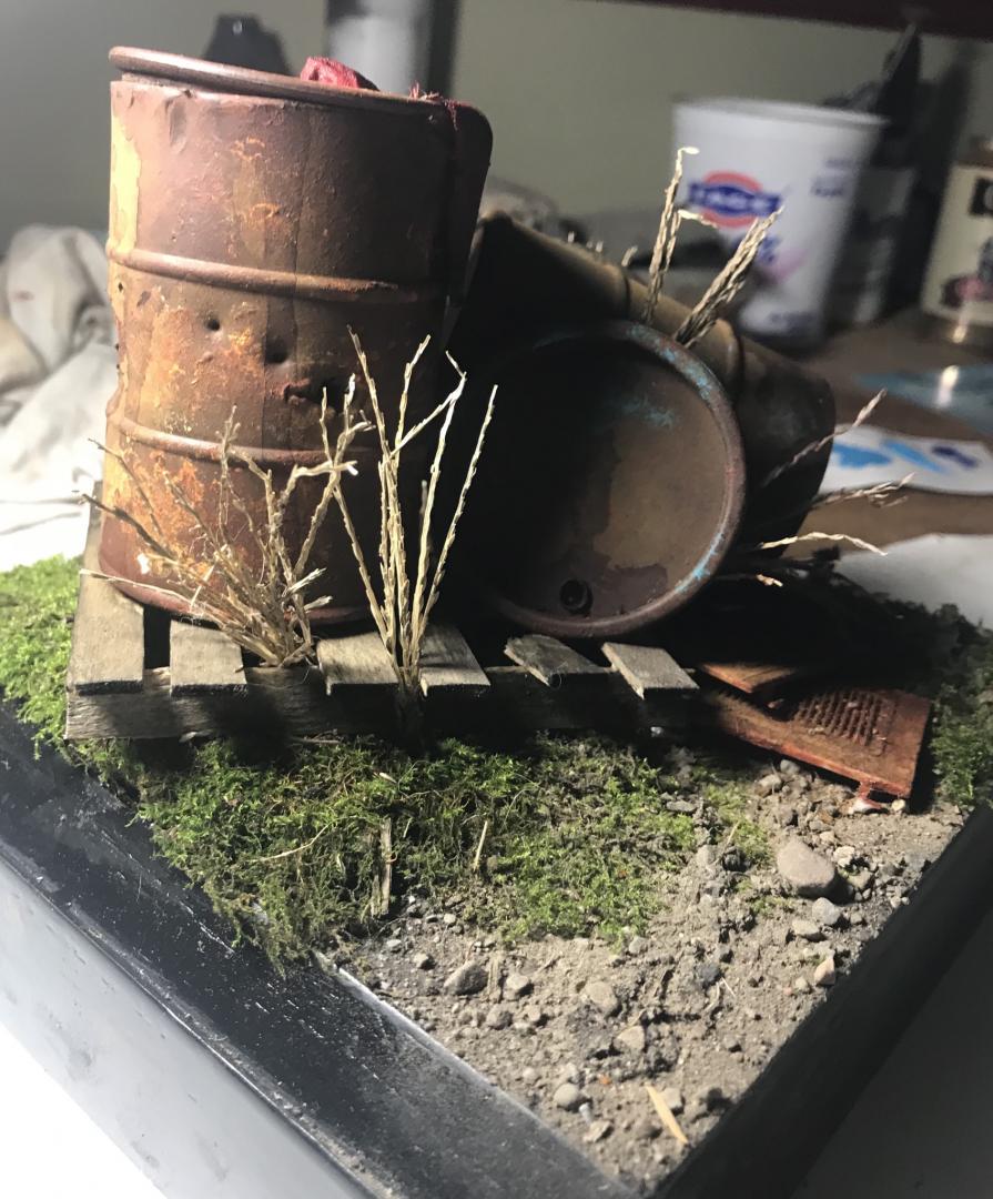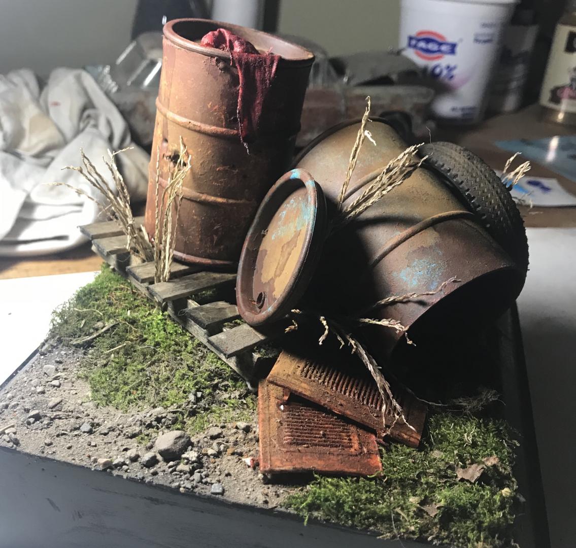 Hey y’all here’s my first real attempt at a diorama using silly sludge barrels from the dollar store and random parts box stuff. Thanks for looking. Ryan
