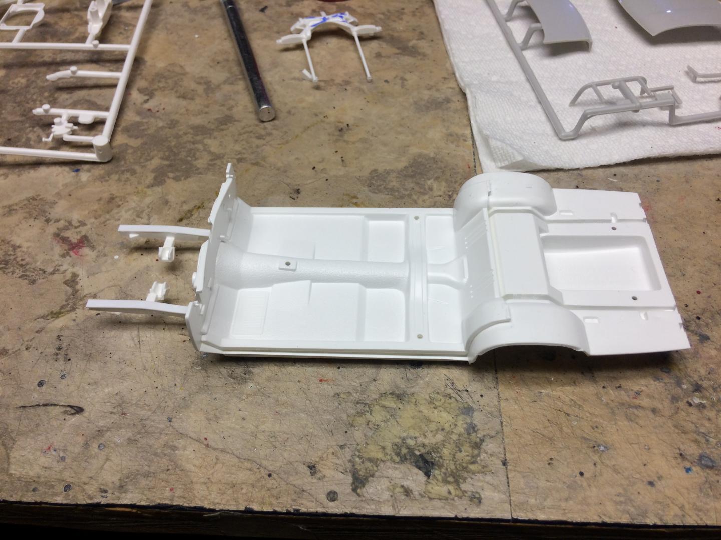 Since everyone appears to want a small mint for the real model, I figured I would build a clone as best as my limited abilities would allow. Started with this kit molded in silver. Was unable to find spray Championship White paint reasonably priced, so I used Tamiya TS7, Racing White. Probably a little to creamy for the correct color, but It works for me.