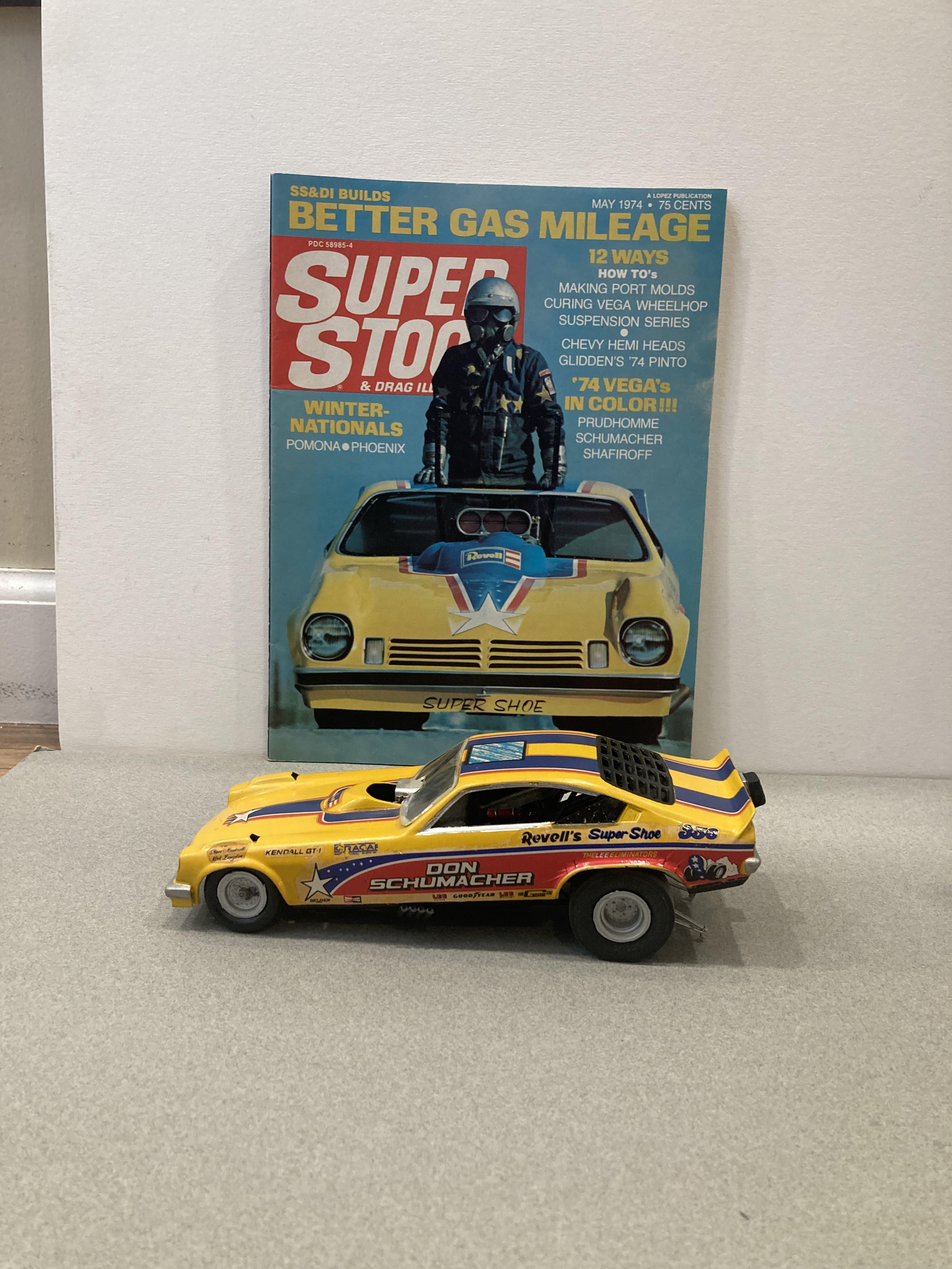 This was built from the old revell kit the early 90’s reissue. It’s box stock . The paint color is an old testors boyed’s color a pearl yellow ( or it might have been called pearl sunflower ) . These mid 70’s era revell funny car kits are some of the best ever made at least in my opinion. Until next time thanks for looking ?, Mike
