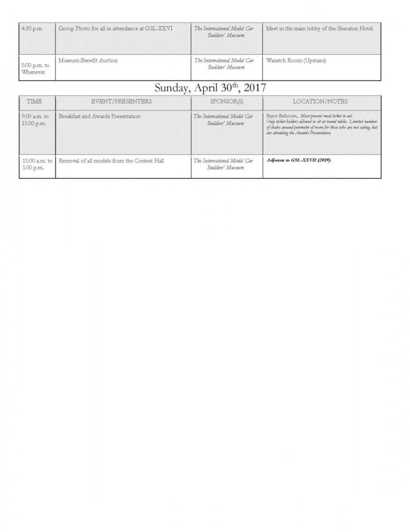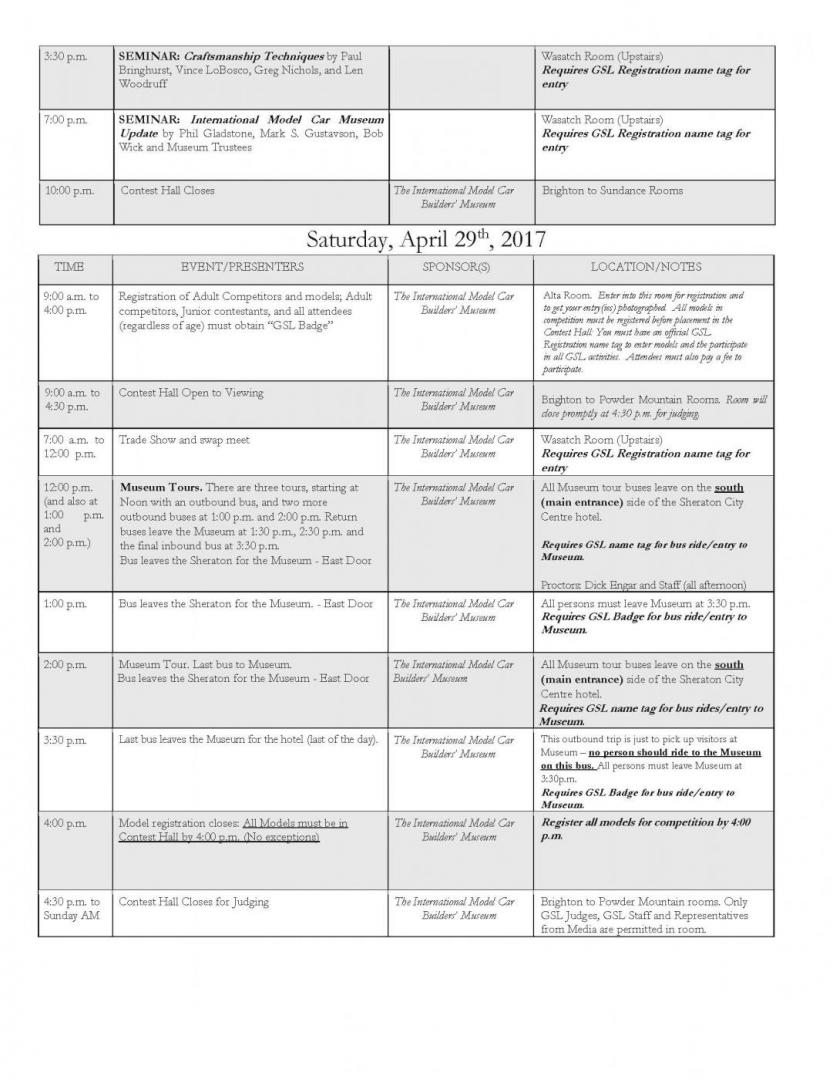Here is the recently uploaded schedule of events for the GSL, April 27-30, 2017, as a downloadable PDF: 2017-schedule.pdf JPEG Images: Web site: GSL Web Site