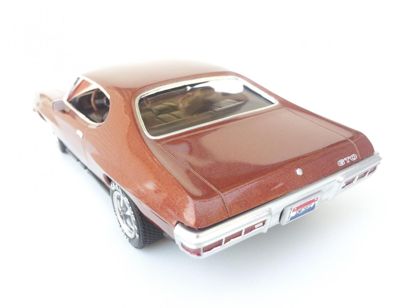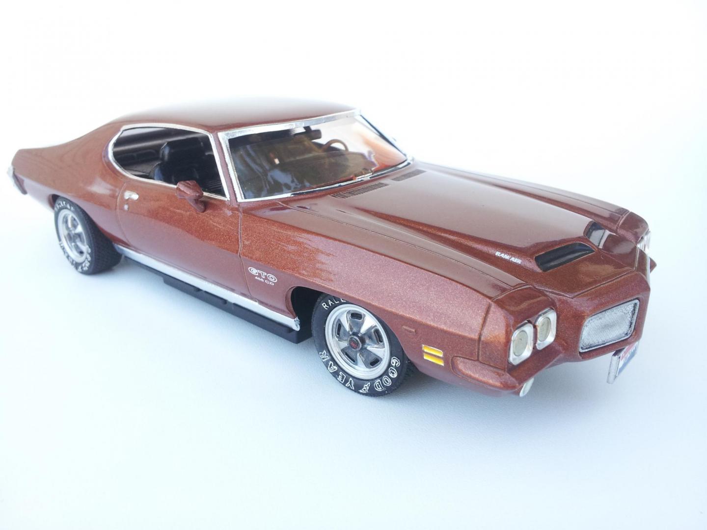 Happy 2014 all,,hope your staying warm in this crazy weather. Heres what Ive been up to recently,,its the AMT 72' GTO,,a decent kit ,,although it had some "issues" as far as fit+ design,,had to modify a few things to get it together. But it turned out ok,,I used different rims+ tires,but other than that,,with some minor wiring/plumbing thats about all I did to it. Fun kit overall,,have fun and stay warm!