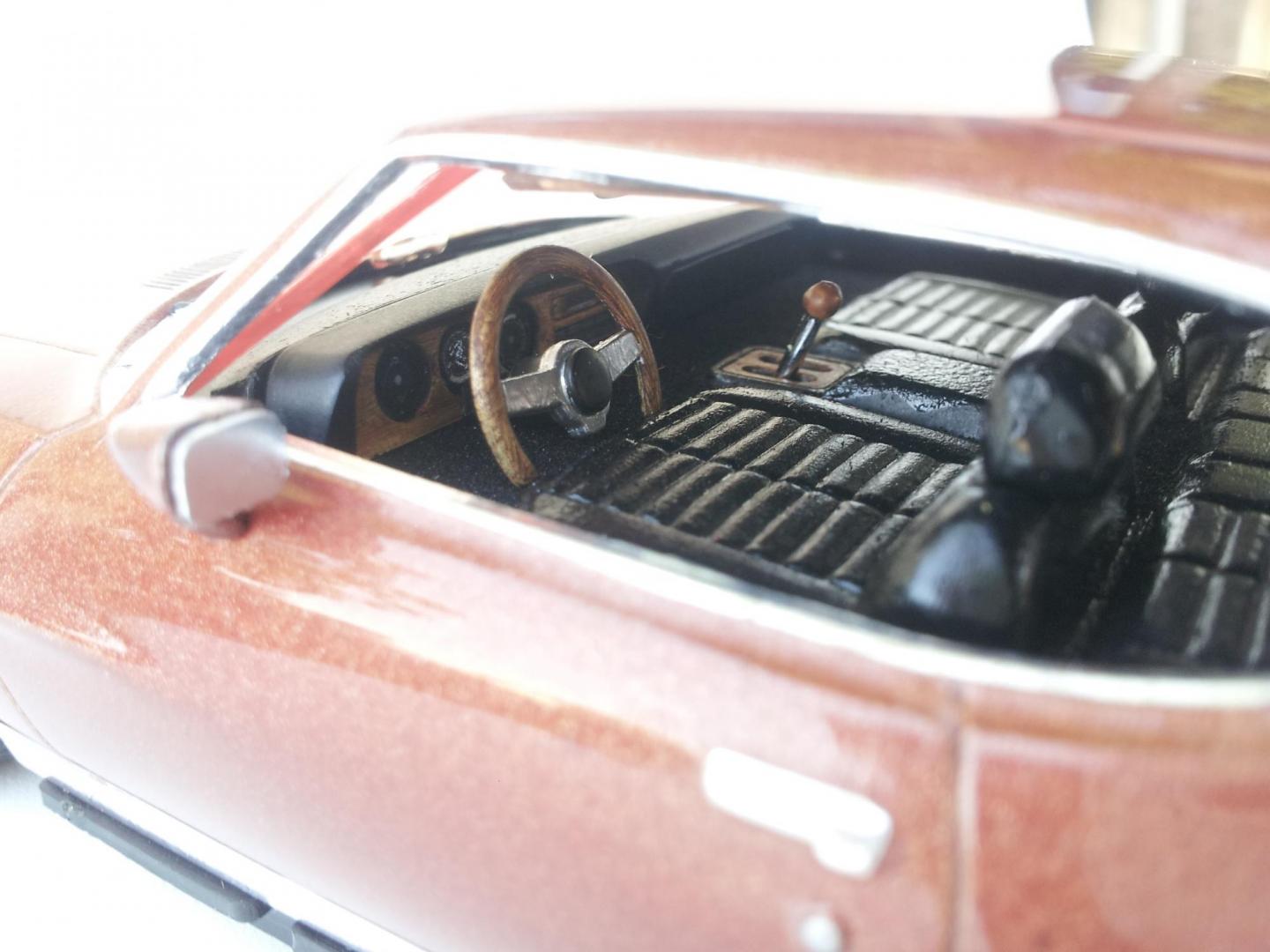 My attempt at giving the old Monogram GTO new life. Sorry about the pic quality. Paint is Tamiya,both base and clear. Engine is 604cid Milodon w auto from VCG Resin. Fujimi wing with carbon,hard to see with the bad quality pics. The same carbon is used on the headlight covers/grill. Added chin spoiler from parts box,same with seats,gear linkage and steeringwheel. Wheels are Aoshima. Brakes are Brembo from "Forward Resin" on Ebay. Instruments,clamps etc are detail master. I could not find any decent mirrors i liked,will add later on. Any thoughts are welcome.