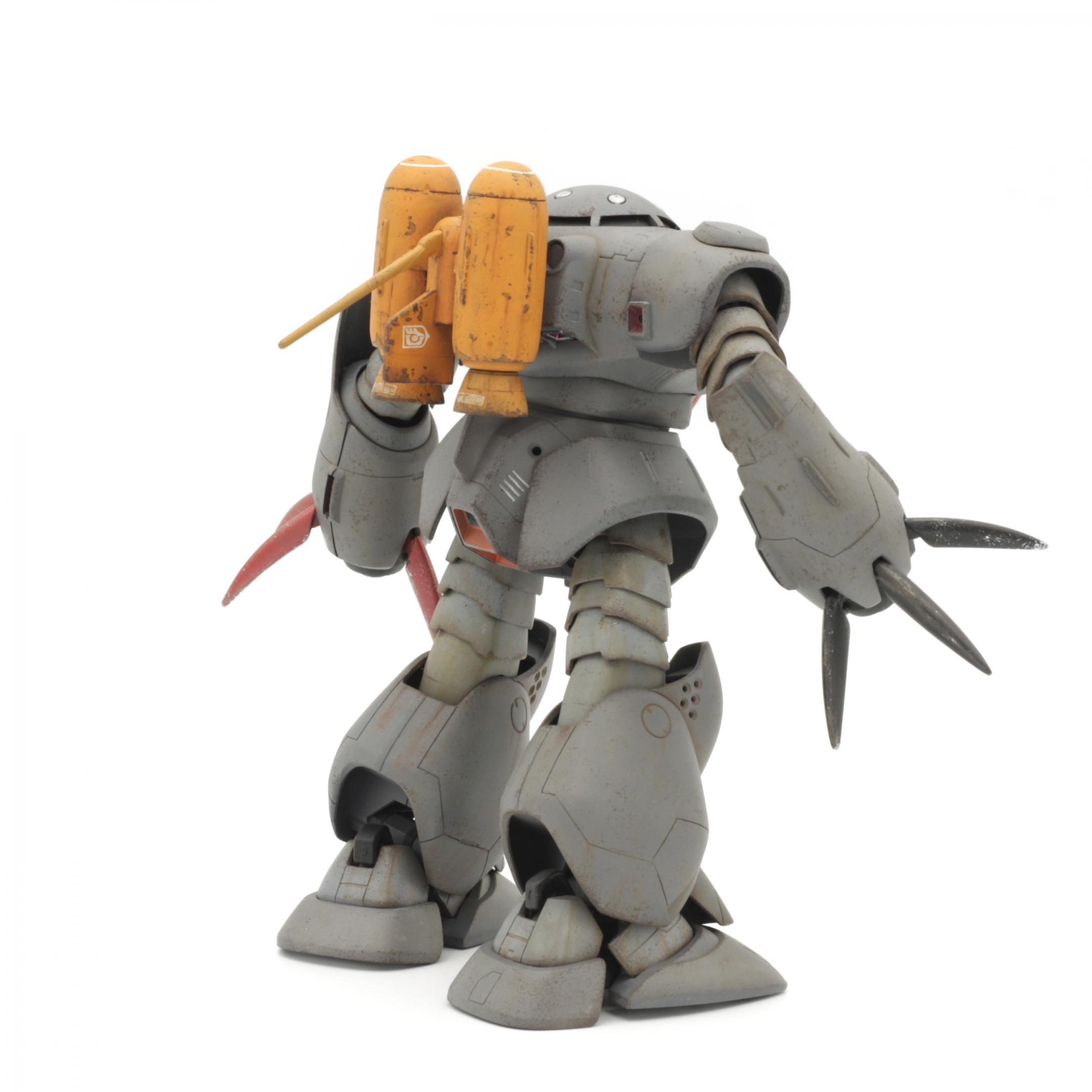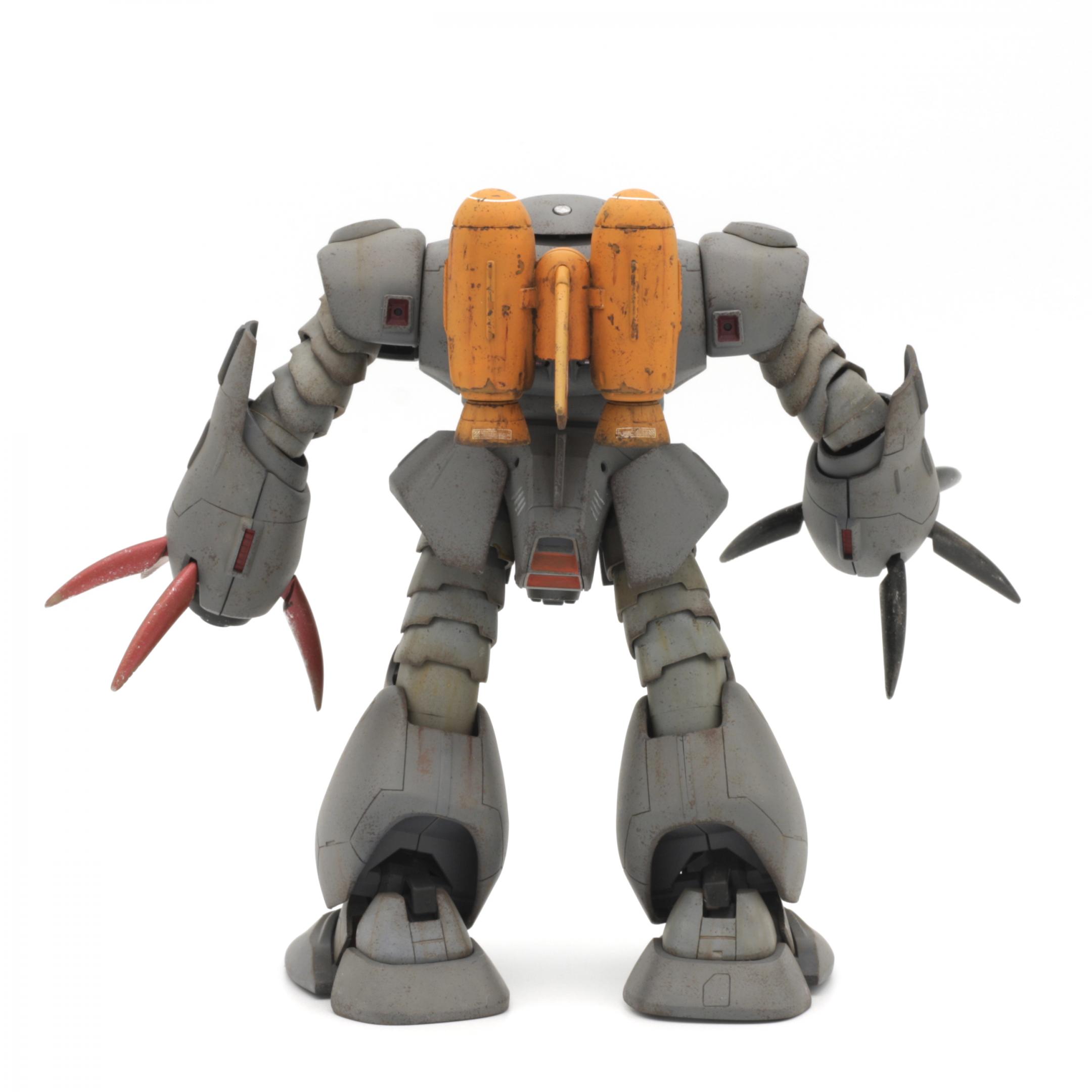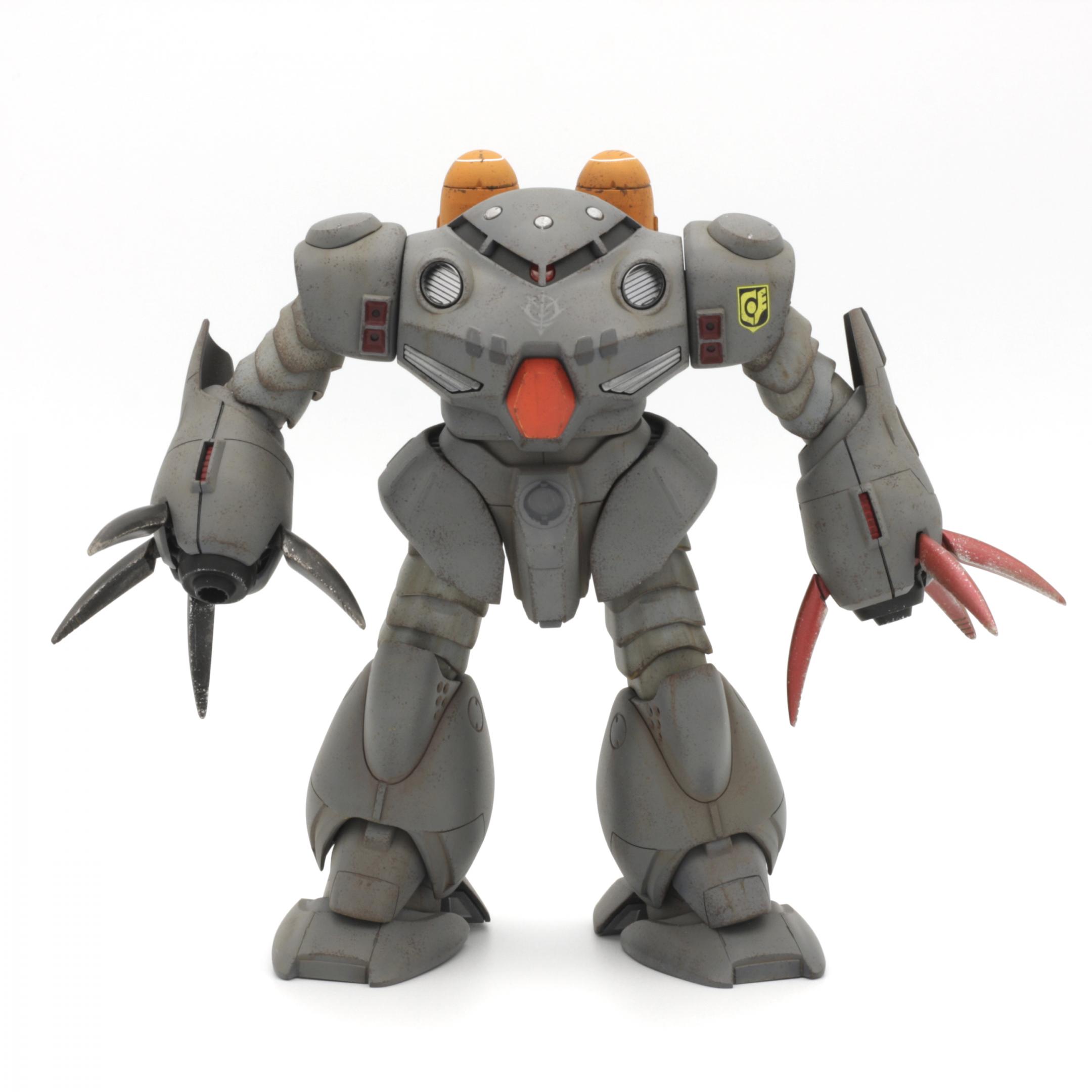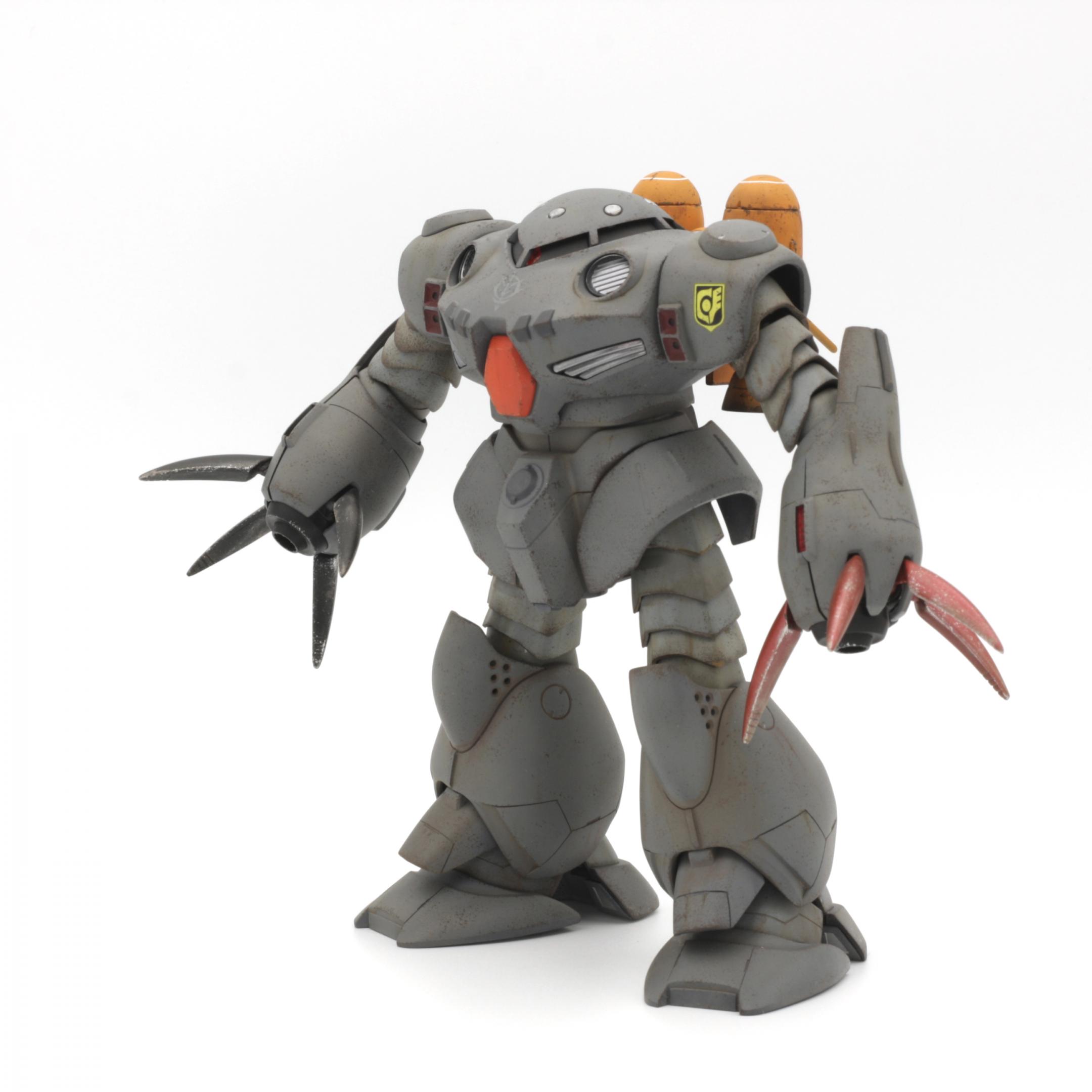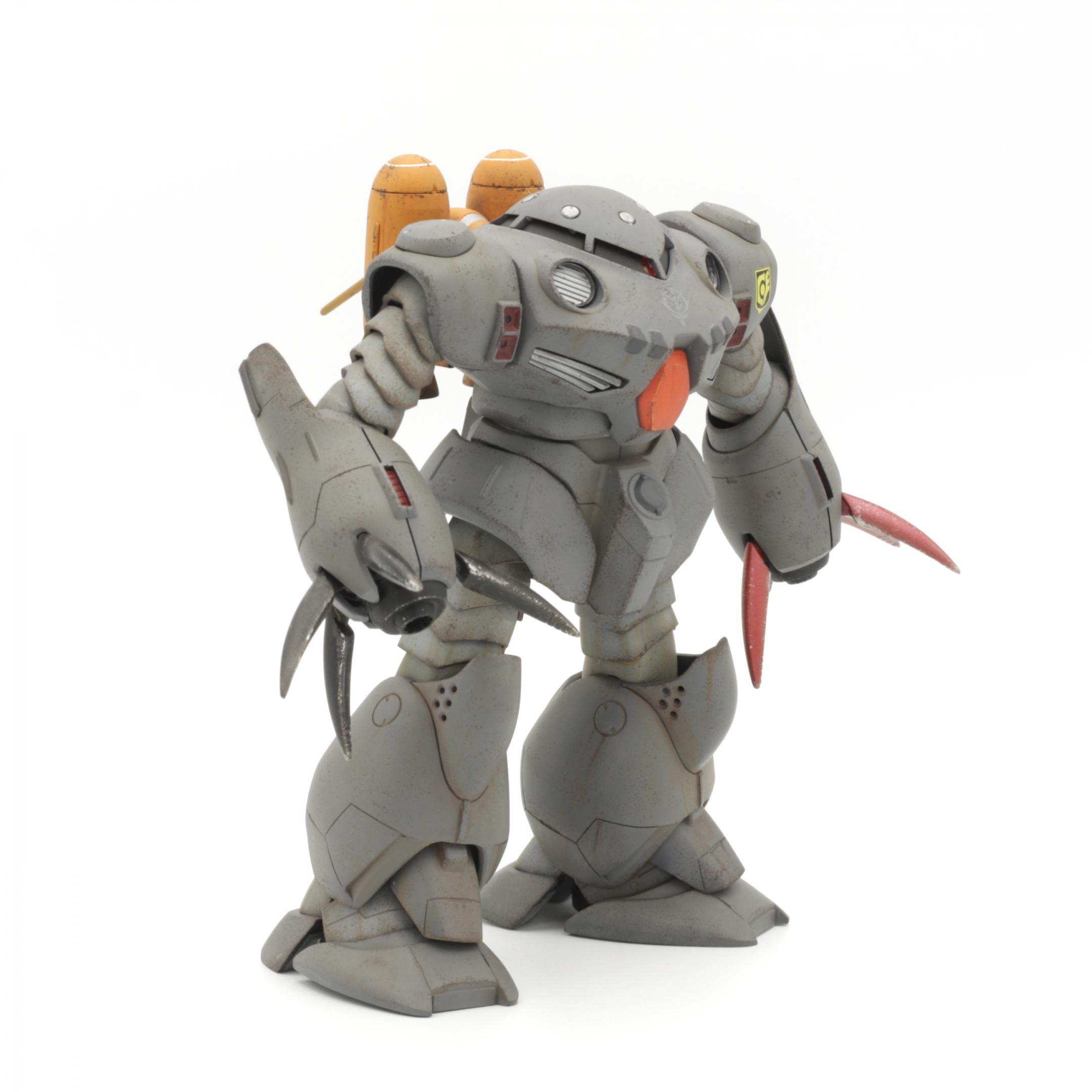 More photos here... Built almost completely out of the box, with custom weapons (2 Armored Core machine guns in the main hands, 2 Kotobukiya MSG sub-machine guns for the sub-arms). I replaced the claws on the sub-arms with hands from an HGUC Hyaku-Shiki that I trashed for parts. The main color is Testors Model Master Blue Angel Blue, the color I use for my Titans MS builds.