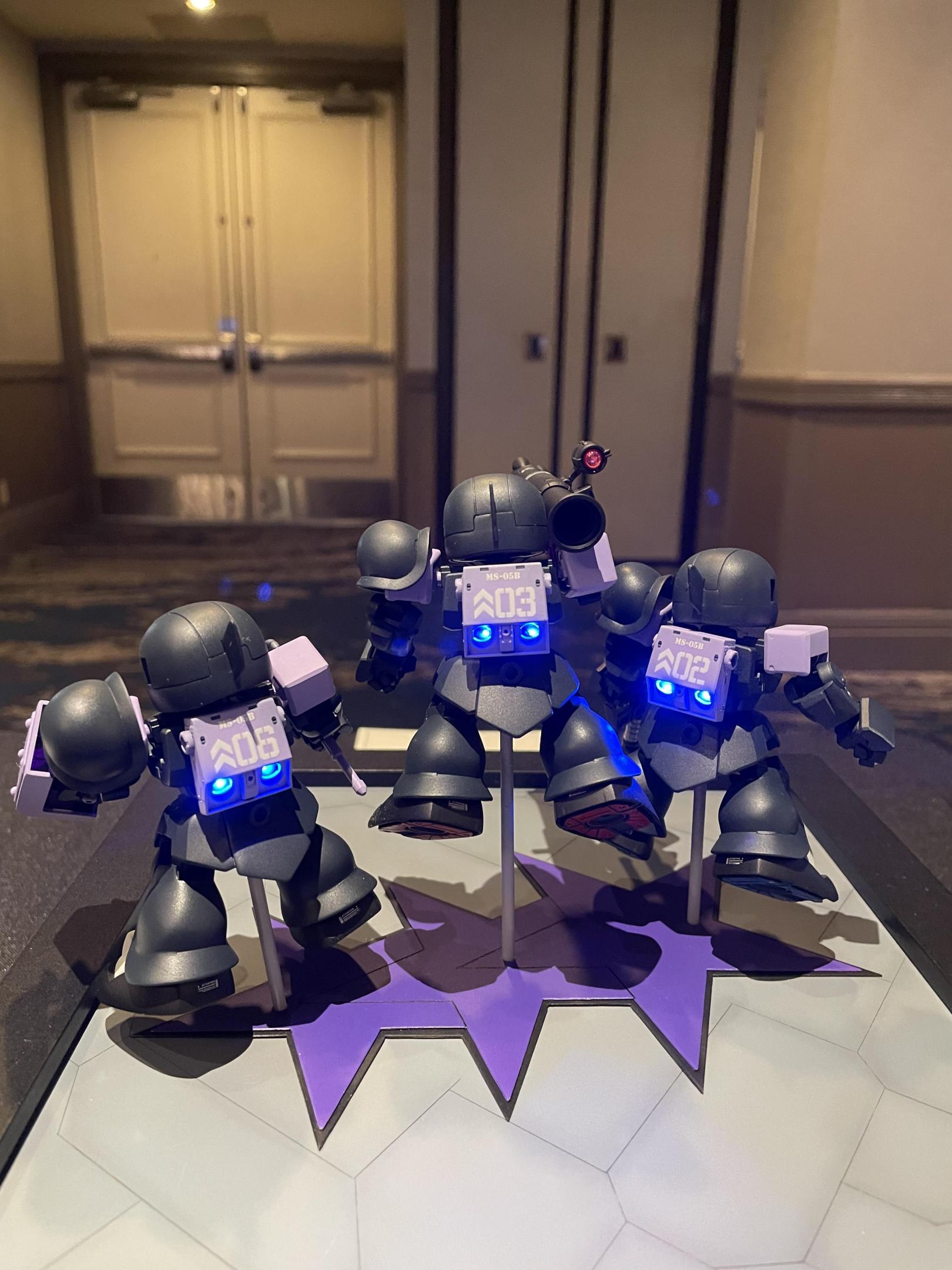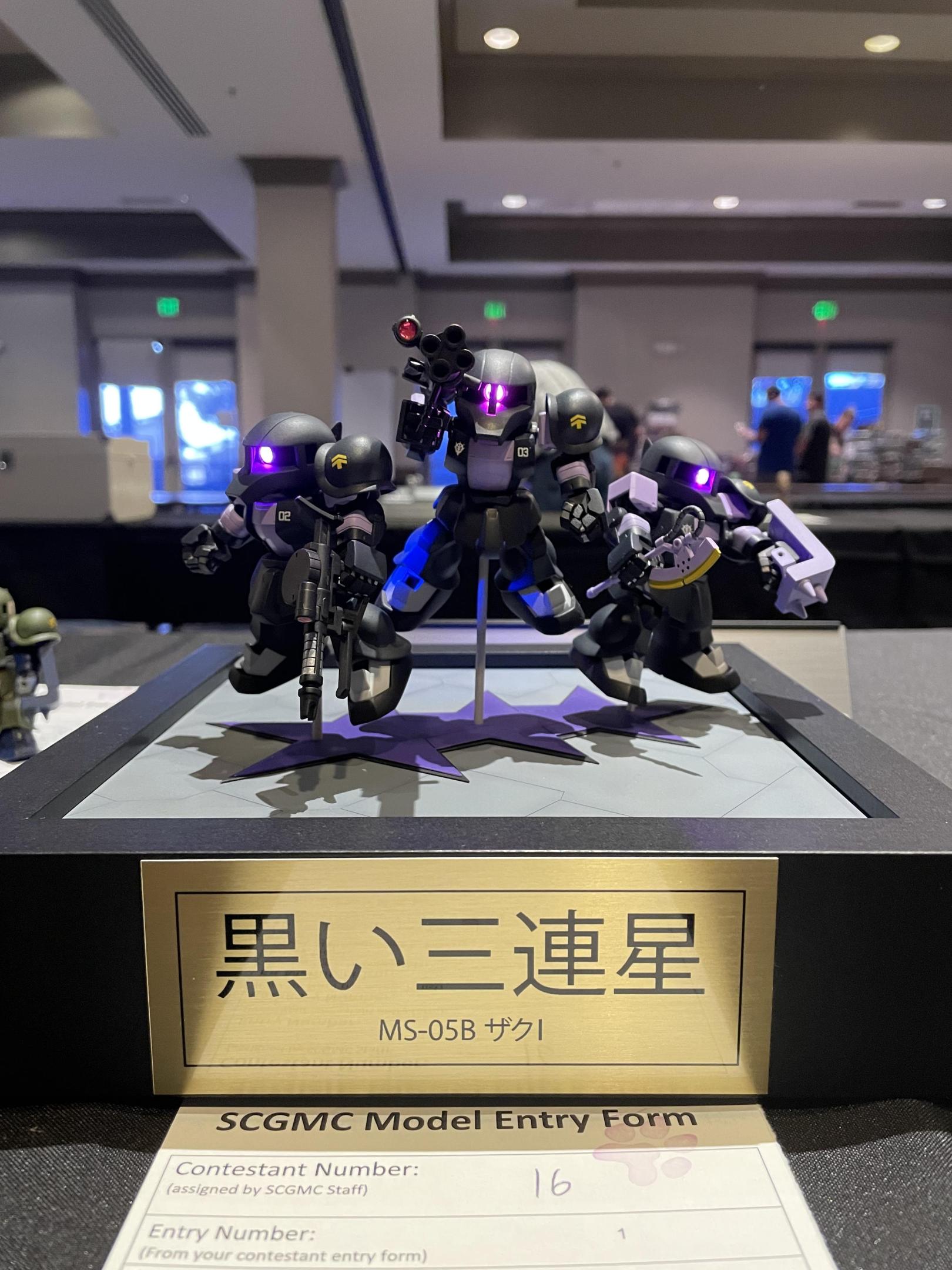 The Black Tri Stars are a trio of ace mobile suit pilots who fought for the Principality of Zeon. According to https://gundam.fandom.com/wiki/Black_Tri-Stars: "Gaia, Ortega and Mash first met in May, U.C. 0076, when the Zeon space forces began secretly practicing combat maneuvers in preparation for the upcoming war. The three were all assigned to the Mobile Training Battalion D Company, 2nd Platoon, and quickly became good friends. When the war began in January, U.C. 0079, the trio participated in the attack on Side 5, piloting customized MS-05 Zaku I painted in dark blue." Thanks for looking!