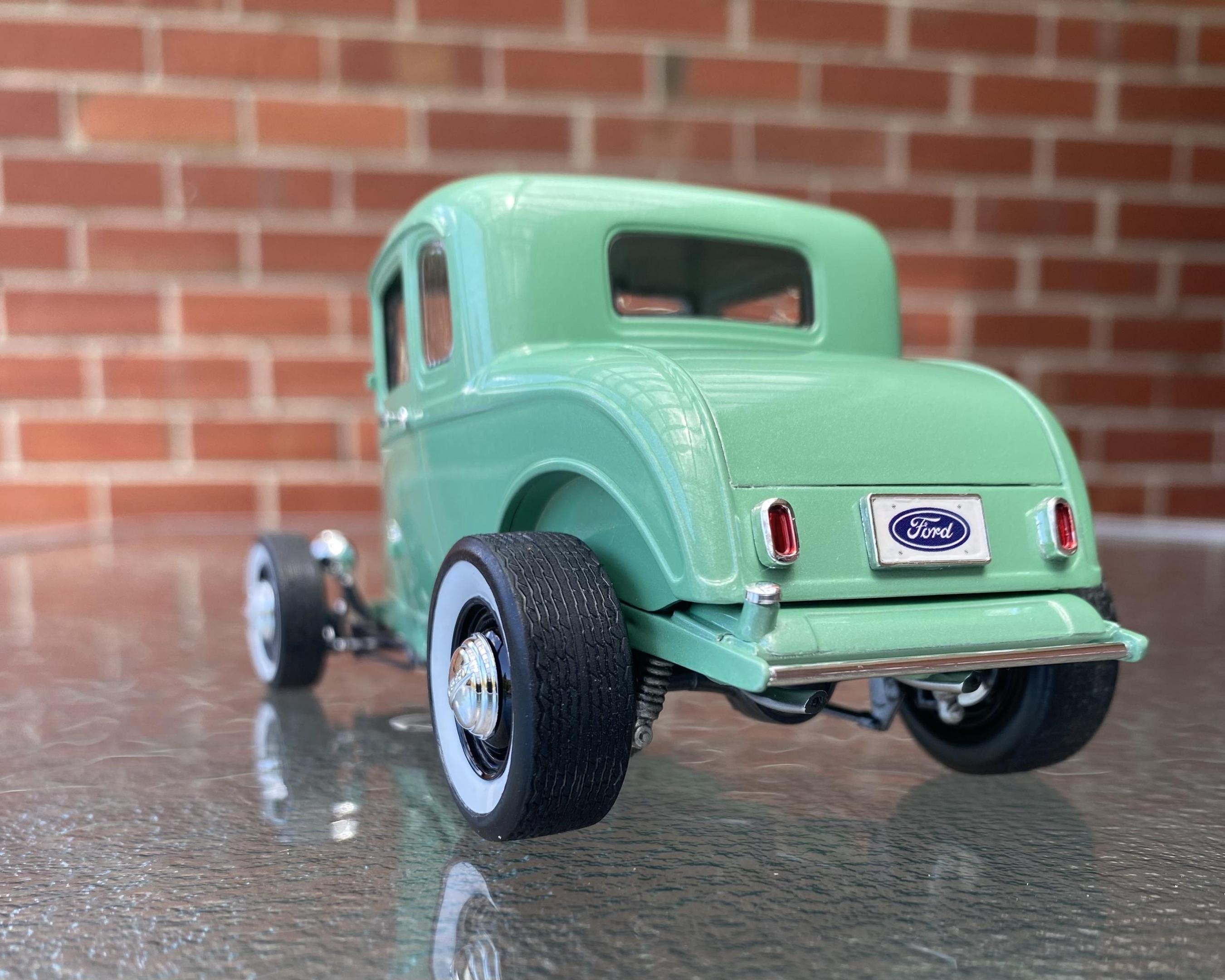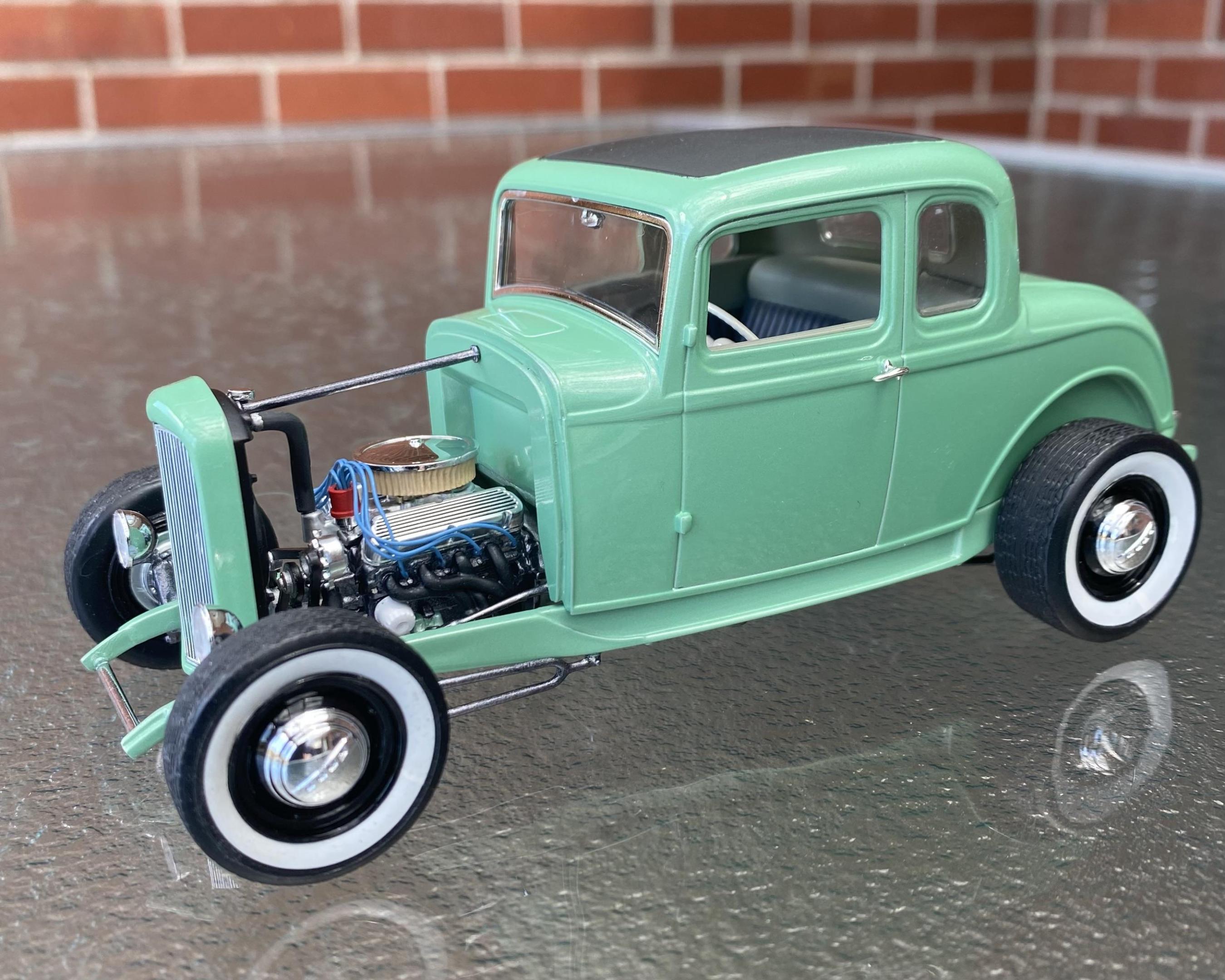 Hallo everybody, I´d like to show you my latest build, a 32 Ford 5-Window Coupe (Revell). I really enjoyed this build. It was first time for me that I used some techniques, like weathering, hinging the trunk or using pre-wired distributor. The story: The owner of this car restored completely the rolling chassis but after that he found out, that he is practically out of money. However, he liked the car so much that he couldn´t wait for the paint job, so he just sanded the body, changed the roof panel and completed the car to drive it. Now he is waiting for the day he can finish it Here are the pictures: ...more to come.