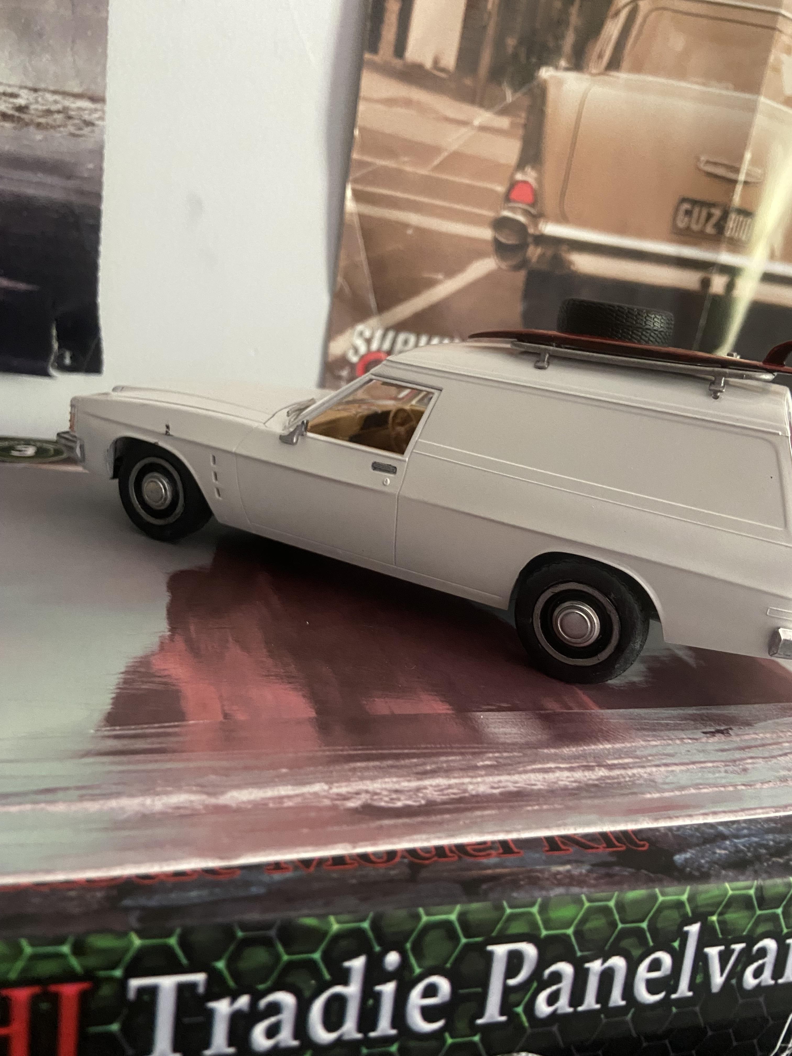 This is my resin HQ monaro that i built as one of the chase cars in Mad Max 2. The front is completely from scratch, made from foil and body filler. the grille is made from styrene rod. Chassis and interior is from a Chevelle kit. see the build thread here http://www.thepartsbox.com/BB/viewtopic.php?f=251&t=4604 the car from the movie