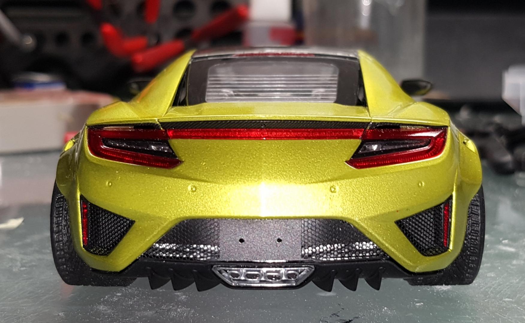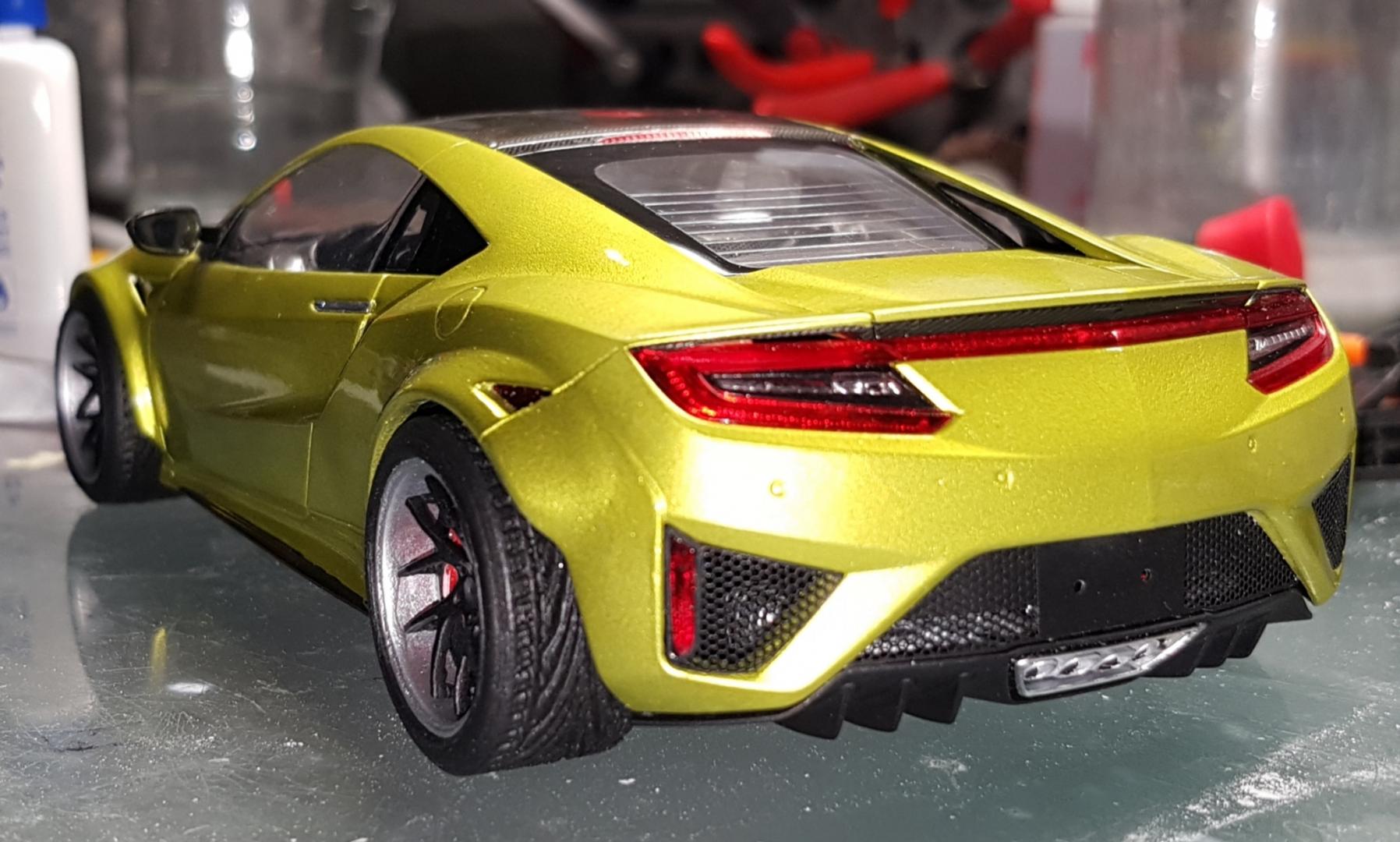 I finished this Tamiya kit of the Honda Takata Dome NSX on Christmas Eve. You can check out the build thread here: Tamiya Honda Takata Dome NSX - WIP: Other Racing: Road Racing, Land Speed Racers - Model Cars Magazine Forum All information about the build is in the link above. The build took me 80 hours. A lot of that time was in masking and painting. For the body I used Gravity Colors - Spain's Honda Takata Green Effect, Zero Paints' Pure Brilliant White and Tamiya LP-5 Semi-Gloss Black. Other items were shot with AK Interactive Xtreme Metals and Alclads. I used Tamiya's PE set for this car. I could not decide which background I liked the best, the black or the white, so I'll post them both. Let me know what you think!
