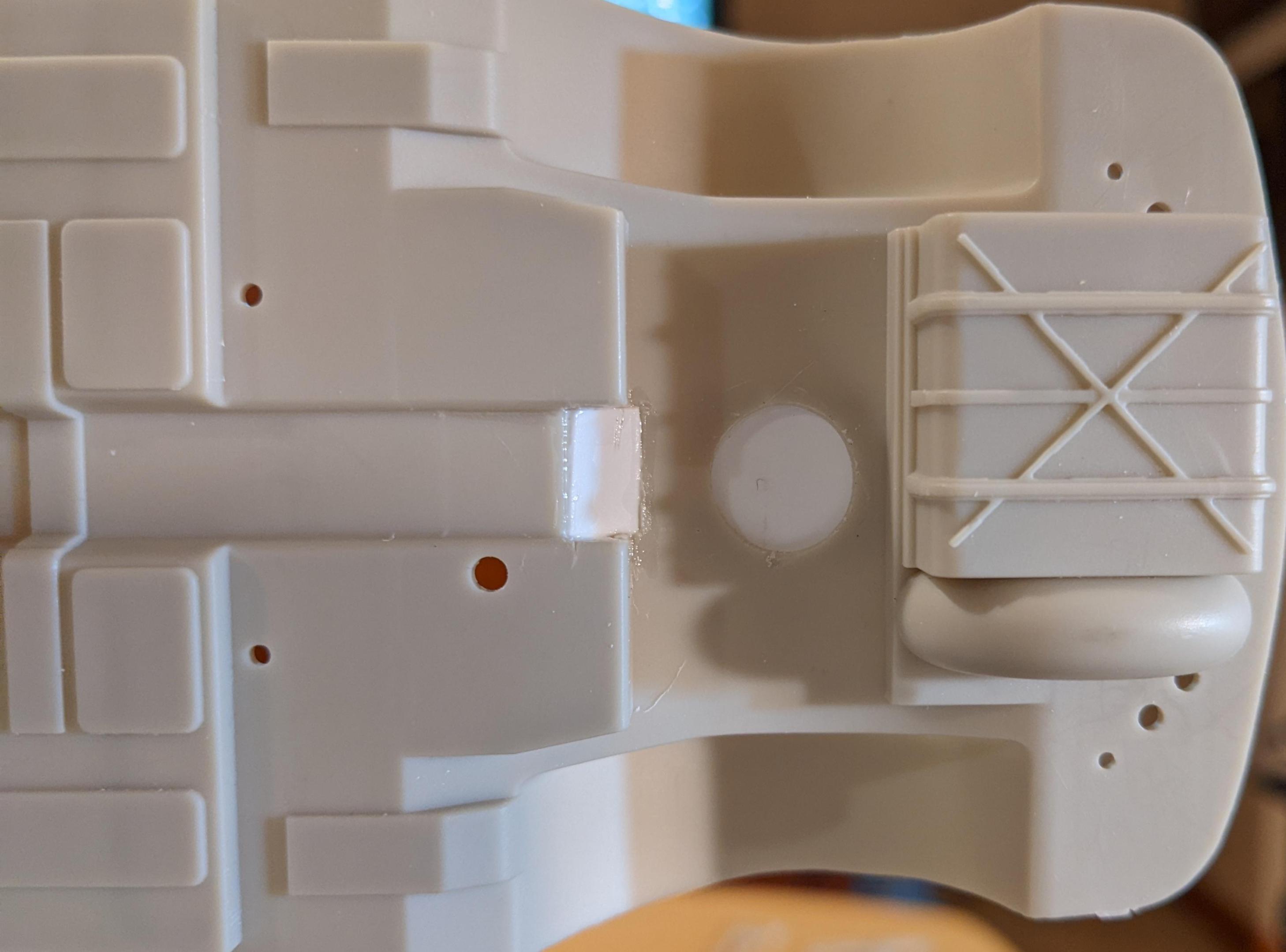 I've built models off & on since I was a kid, but now I'm retired, I can put effort into modifying them. Here is how I'm lowering a Moebius 1952 Hudson Hornet coupe. The technique should work on any of their kits that share this chassis. I'm lowering the rear 3mm & the front 5mm, to also achieve some rake. I plan to use the chrome steelies from the convertible kit, which I also have. I'll show the rear, which is as far as I've gotten, then add the front later. Hope this post is useful to folks & comments are welcome. First, I notched 3mm from the frame rails to raise the rear axle relative to the body. Then, I cut out a portion of the floor to clear the driveshaft, and another to provide clearance for the differential. I added styrene sheet to fill in the holes. Finally, I added 3mm tall blocks to the leaf springs, made from square styrene tube. This mod provides an eventual connection to the axle, & allows the shocks ti remain unmodified. More to follow...