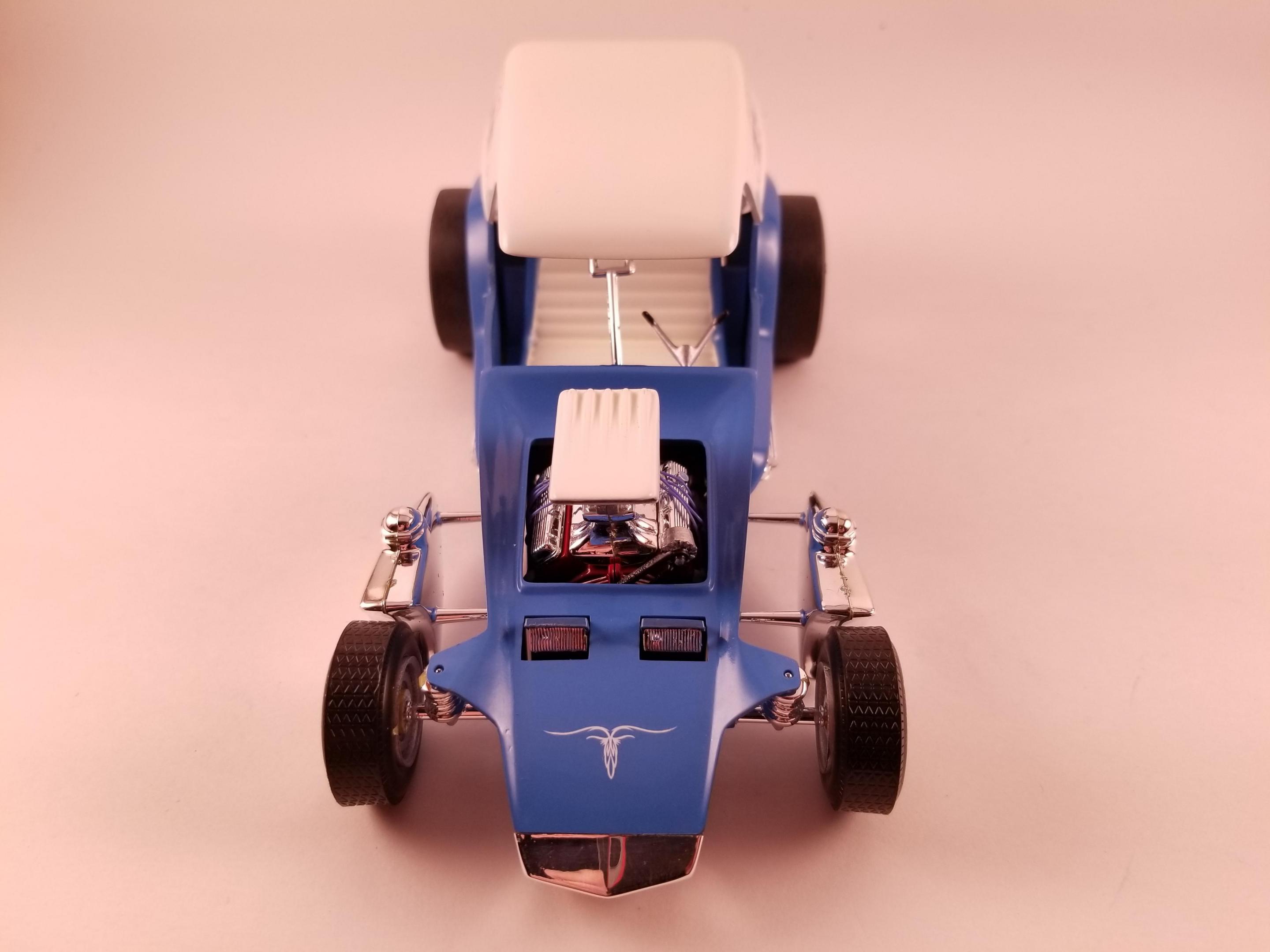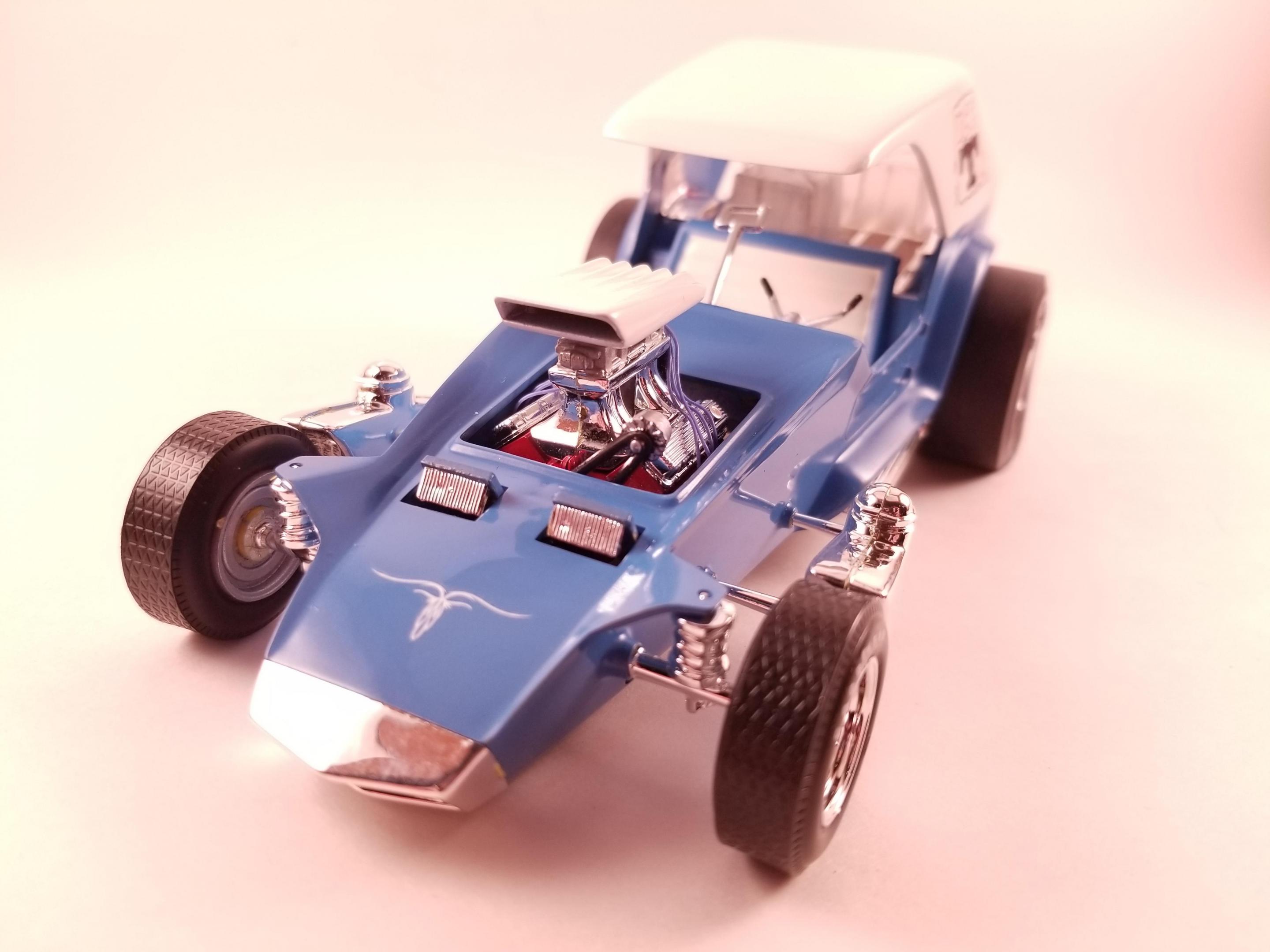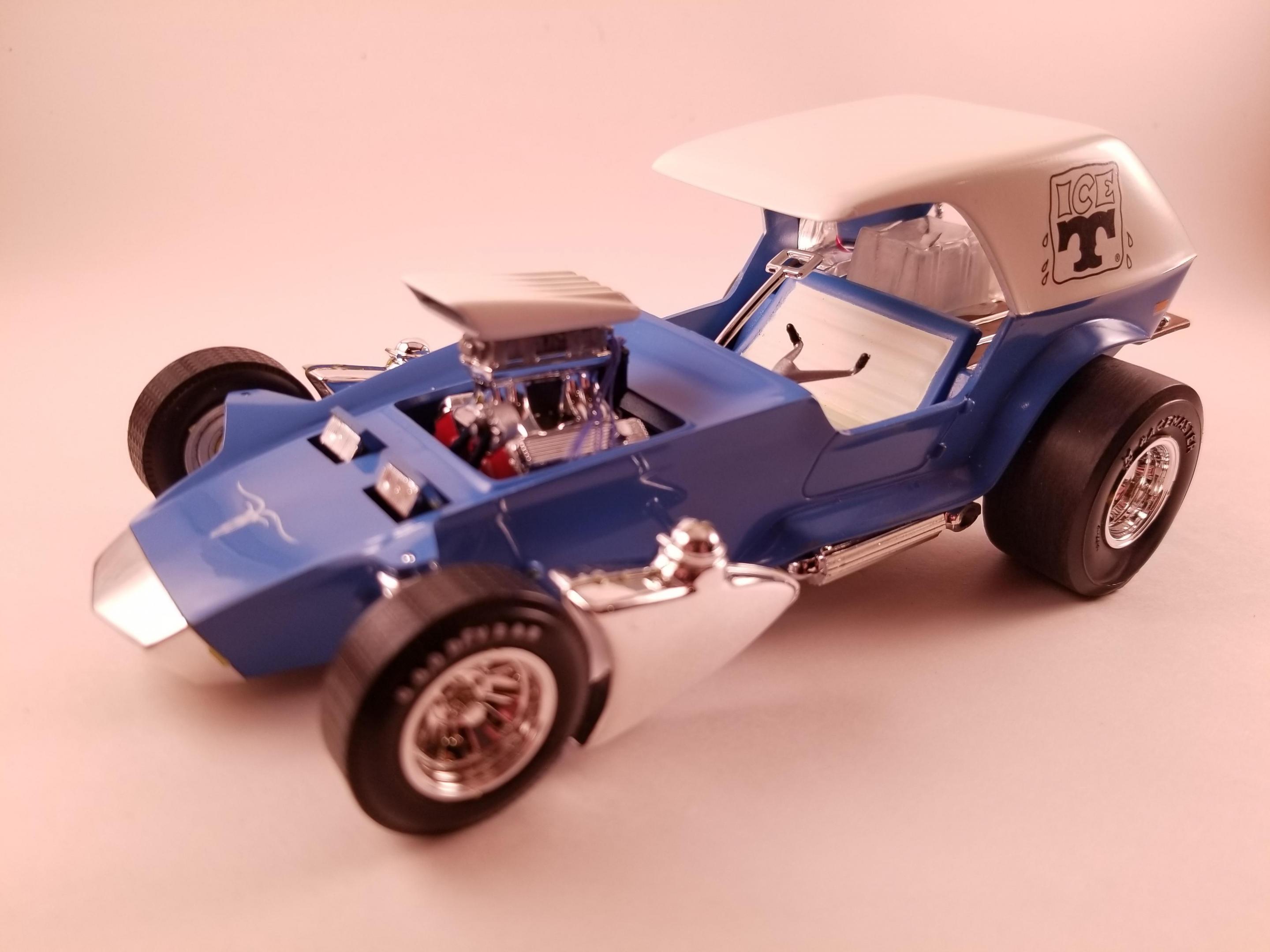 This is my spin on the Tom Daniel's Ice "T" show car. It's painted with Tamiya TS-10 French Blue & Duplicolor Perfect Match Universal White. I added plug wires to the engine. The bed is a mix of brown, beige & tan & I used BMF for the bed rails.