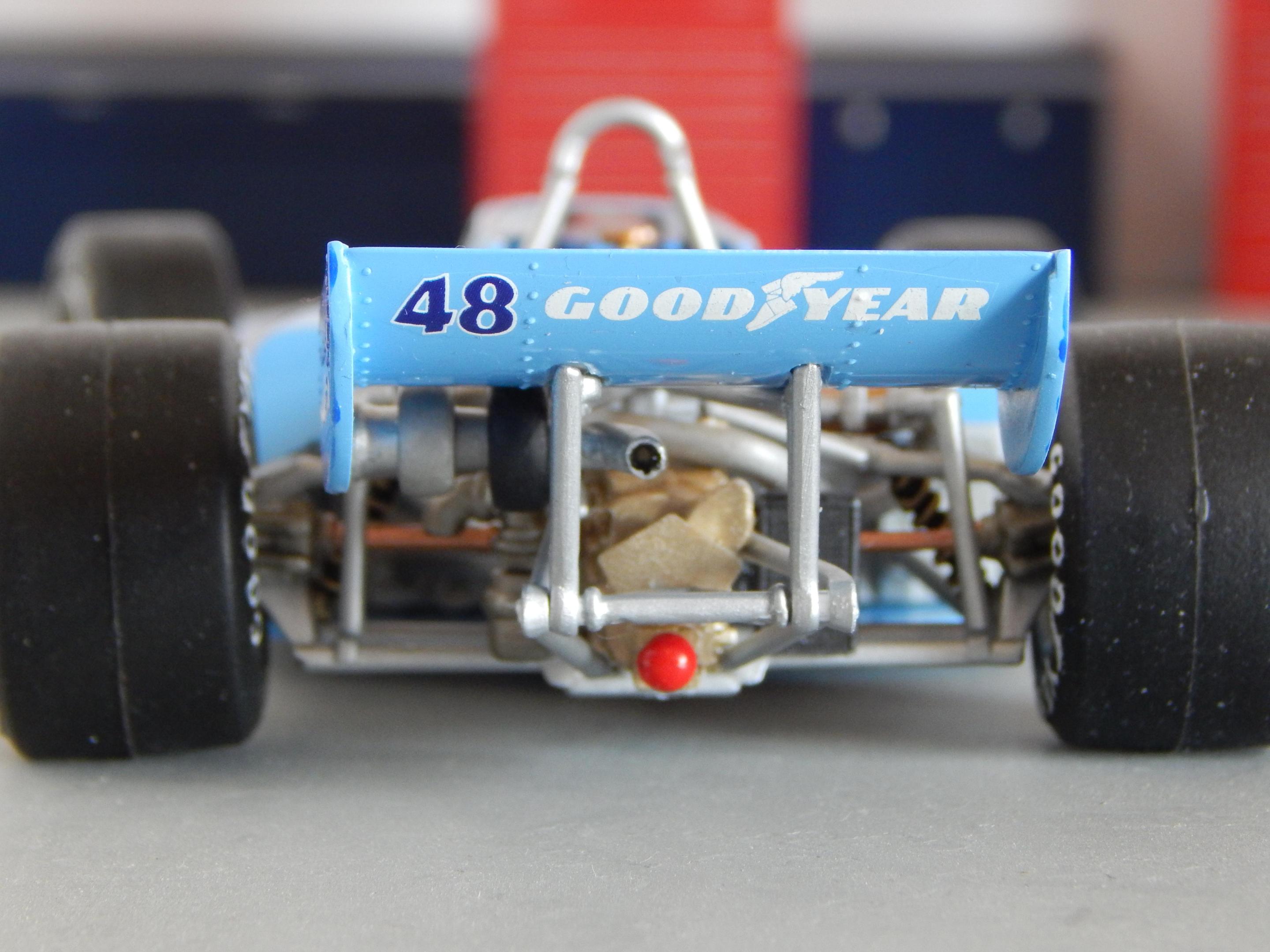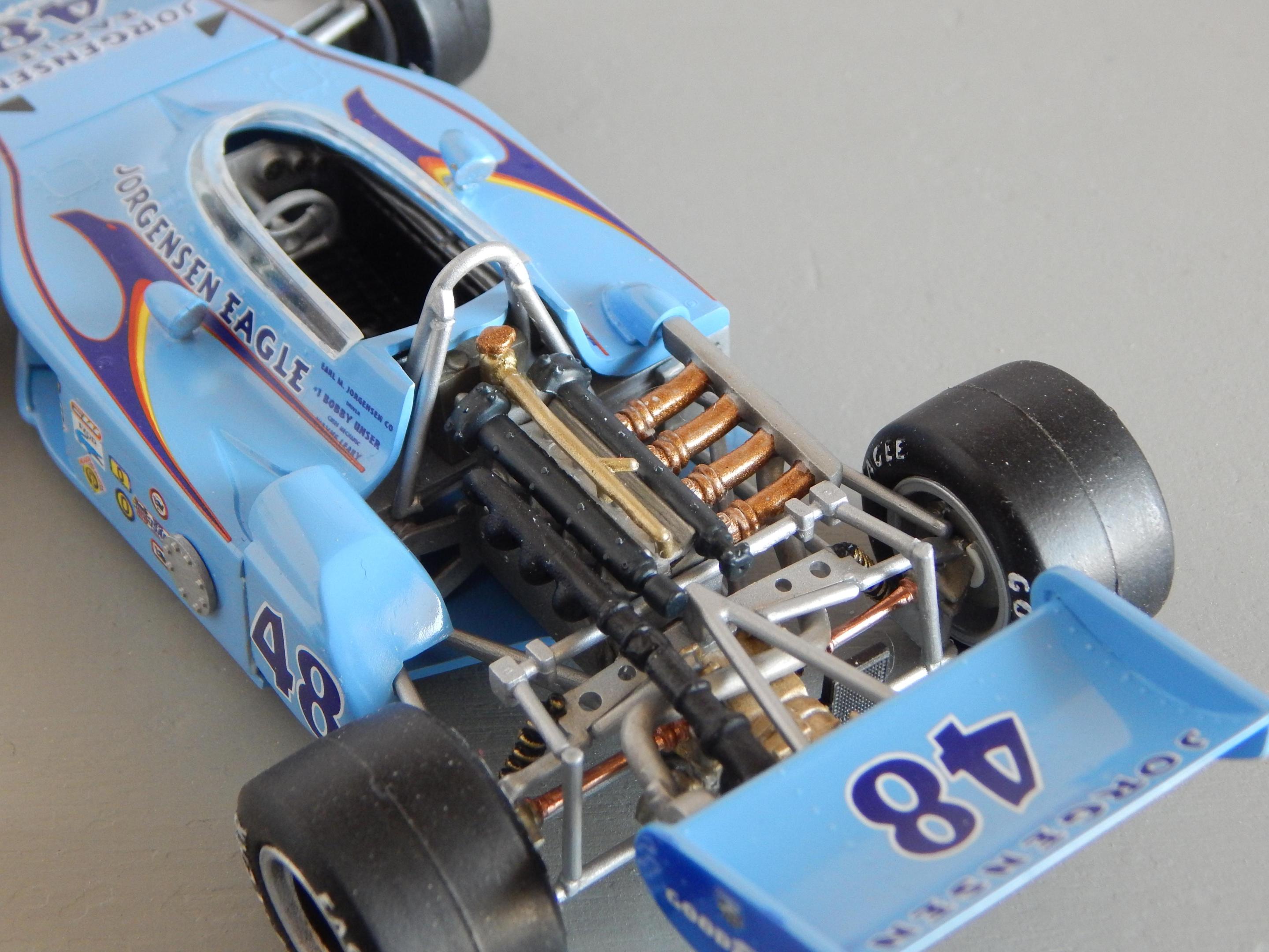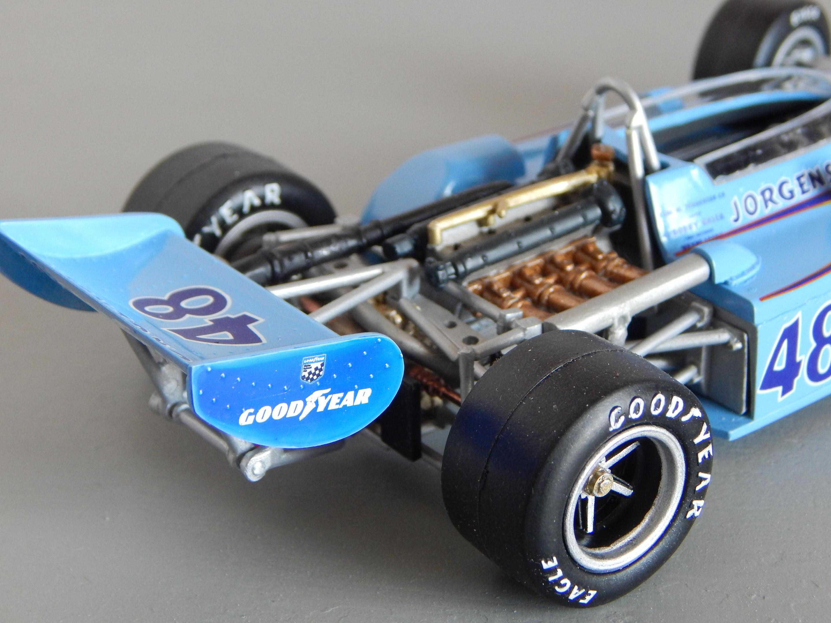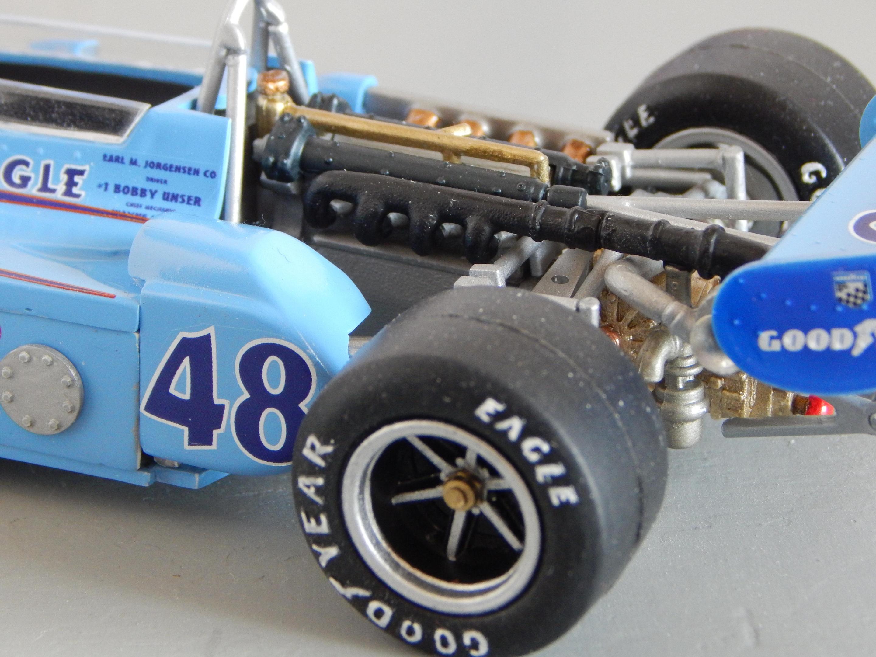 AMT kit, Speedway decals. This is a pretty old mold and the kit was not easy to get together. Vague instructions, no precise part locating aids, it took a lot of test fitting and consulting google images to try to get it right. Looking at the pics there are a couple of things I would do differently but in all I'm pretty happy with it. Comments welcome, thanks for looking!