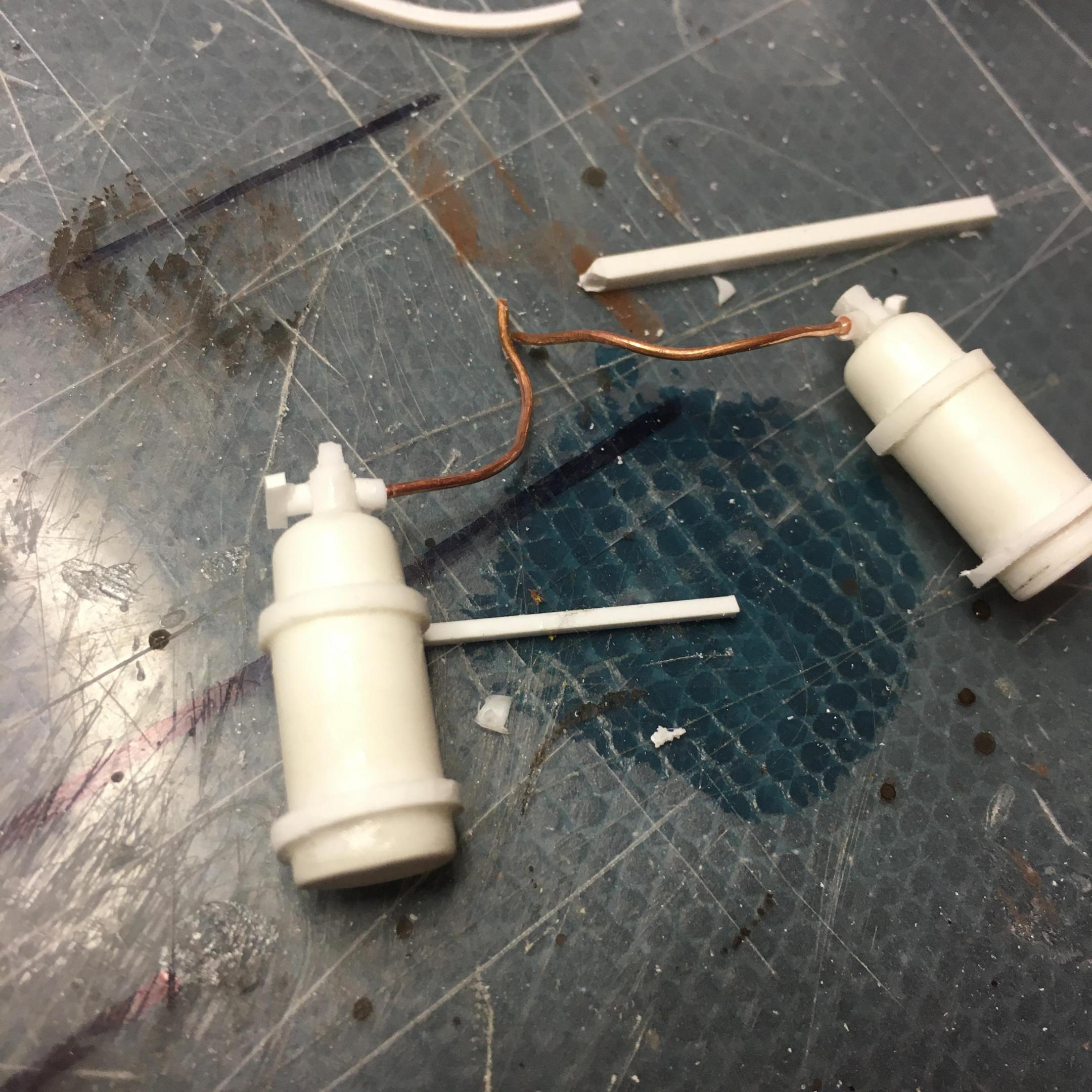 Hi Folks, new here and wondered if I could draw on your big rig expertise a little if I may? So I really wanted one of these for my 1/48 FJ-3 Fury diorama (desperately) it’s just Sooo cool. I’ve taken the Atlantis re-pops of the old Revell Chevy stake truck and the Fruehauf trailer from the White fueler and smushed them together as follows… Mods have included removing and remounting the front fender as a separate entity, mirrors, shortening the chassis a bit, taking the skirt off the trailer, etc.- there’s a way to go yet. The headlights are going to be nose studs from a jewellery store with the facets sanded off and polished. The mirrors are made from laminate. Atlantis’s new glazing parts are superb for the Chevy, hats off to them. The wheels for the Stake Truck were a little agricultural for the paved airfields where this truck would have plied its trade , so I turned the White truck tyres to 9” high road tyres on the lathe then turned the 22.5” rims from Defmodel’s resin set for the Tamiya GMC army truck. I think they really beef up the tractor. Is it an ‘57 8400 do you think? It’s lovely hard plastic- polishes up beautifully. So used to the softish modern grey stuff! Ah yes - expertise please, if you could? Top photograph (the only one in existence as far as I can tell) you can see immediately behind the cab there’s a tank and a load of hydraulic or air lines. Anyone seen a setup like this before? Gas for the tractor unit? Exhaust baffle system? Compressed air? Pump unit for the trailer? Any answers will be gratefully received as it’ll need scratchbuilding. Thanks for looking, I’ll keep you posted on progress cheerio, Matt
