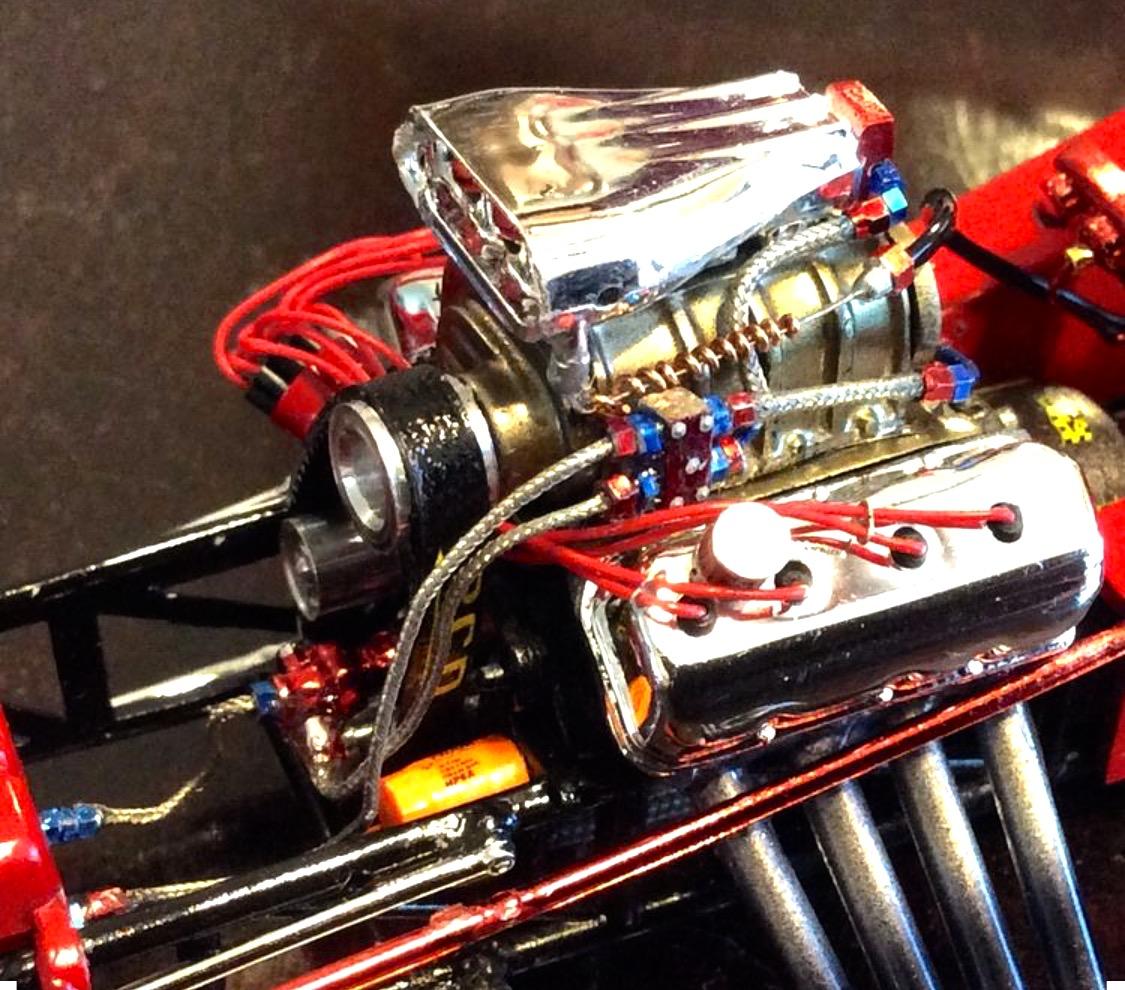 MPC Mustang FC 72 (HOTROD MAGAZINE) this was my 1st detailed build & contest entree. I installed every aftermarket plumbing, Aluminum Billet pulleys, A/N color coded fittings, Wrinkle Wall Slicks, even added the Chrome Valve Stems on it...for a EXTREMELY SIMPLE "BOX STOCK" build that would only take most beginners a few days to complete, took me about 350+ hours...(and I still wished I had 25-30 more to do everything that was in my head.. I had nothing but FUN all the way through.....