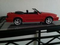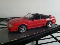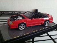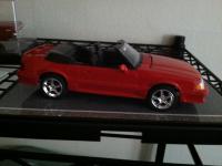 This is a revell 92 ford mustang gt, it was a ok kit , easy build for the most part, though somewhat simplistic. It has minor added details like flocking and aftermarket rims. The hard part was getting the correct stance and fitting the wheels to not pop out as if was a lowrider version. I just need to install battery cables, otherwise comments are welcomed good or bad