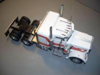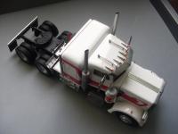 Hi all.... I´m here today with my last Peterbilt. Very cheap kit, but I was kind surprised. I change some parts and also color of body. Decals are from modeltruckin. Sorry, by this model I don´t made a cable instalation and some plumbing. Color is white from duplicolor, sprayed into bottle and than sprayed on kit by H/S Infinity gun. PE parts are from Model car garage (Peterbilt marks). Antenas are from guitar springs 0,35 - 0,36 mm.. This truck is made under my ideas.