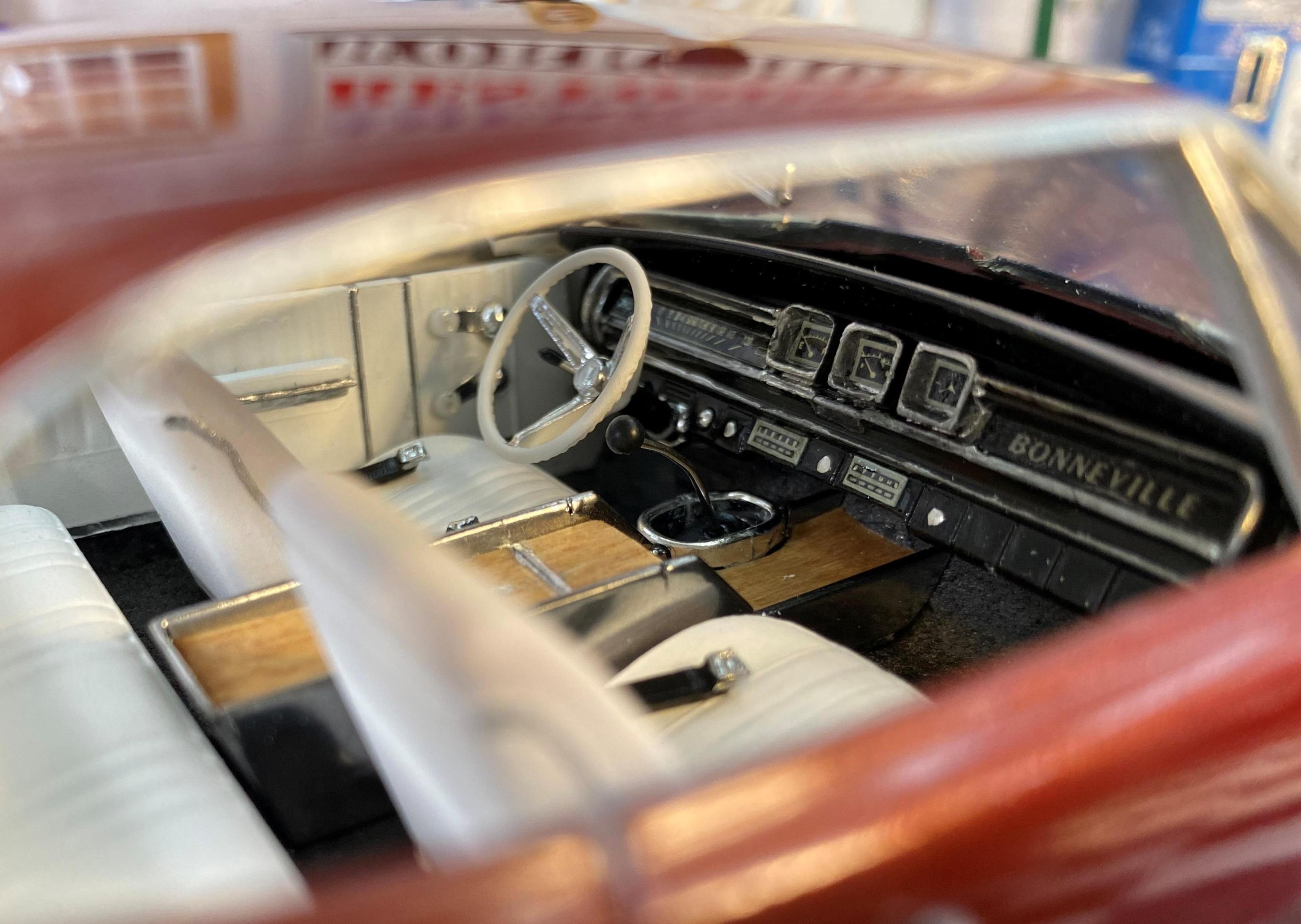 This is the the last of my Pontiac Big Girls. She wears Pegasus wheels and disc brakes. I upgraded the tires to be taller to fill the wheel wells better. I also use different inlays on the console. Comments welcome.