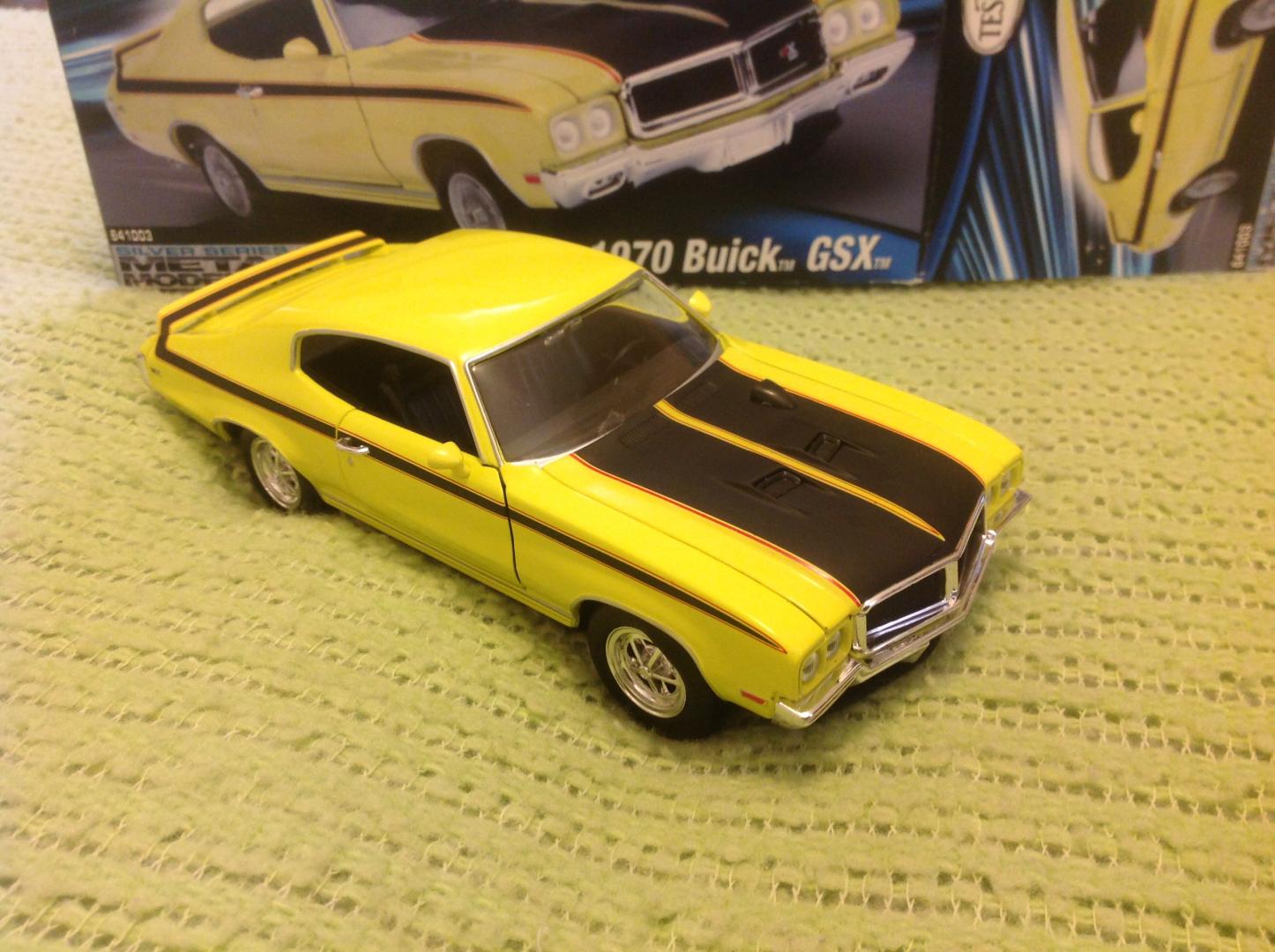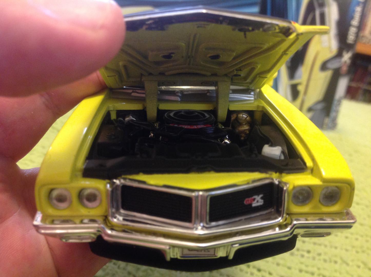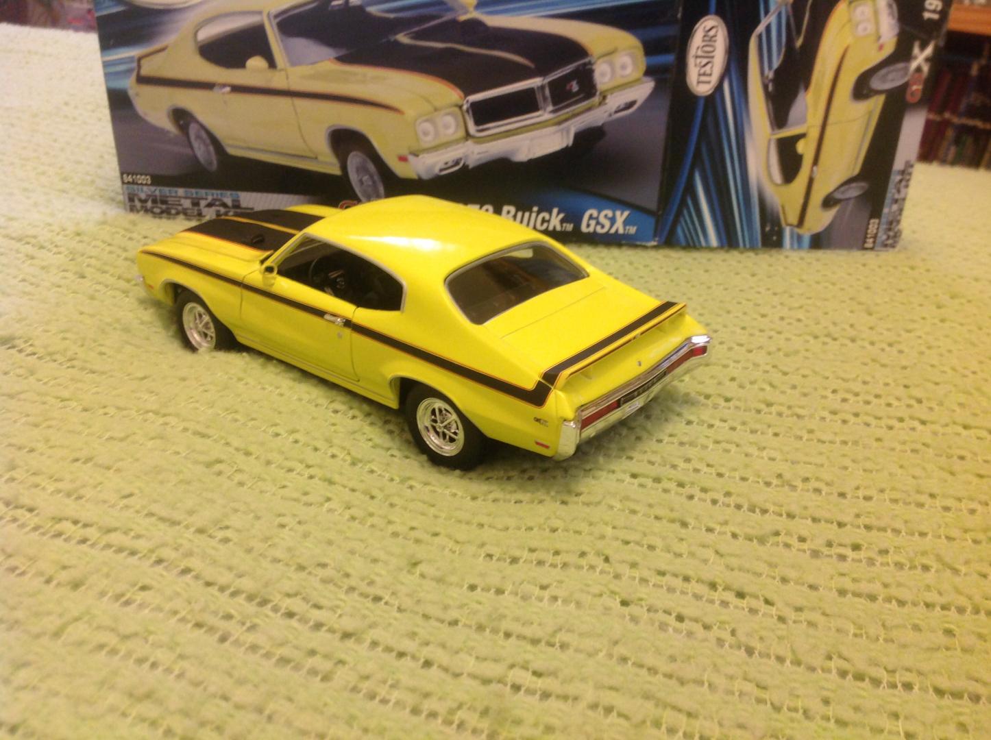 Here's a die cast kit of a 1970 Buick GSX, I just put together. Part of Testors' "Silver Series Metal Model Kits." A nice looking kit, that looks a little small for claim of 1/24 scale. Nice paint. Nice engine detail. But it was a bit of a disappointment. Too many things were already pre-built. Put together. Only six basic steps required to build it. It was way too easy to build. Took less than 10 minutes. Yet I like the looks of the kit is the end.
