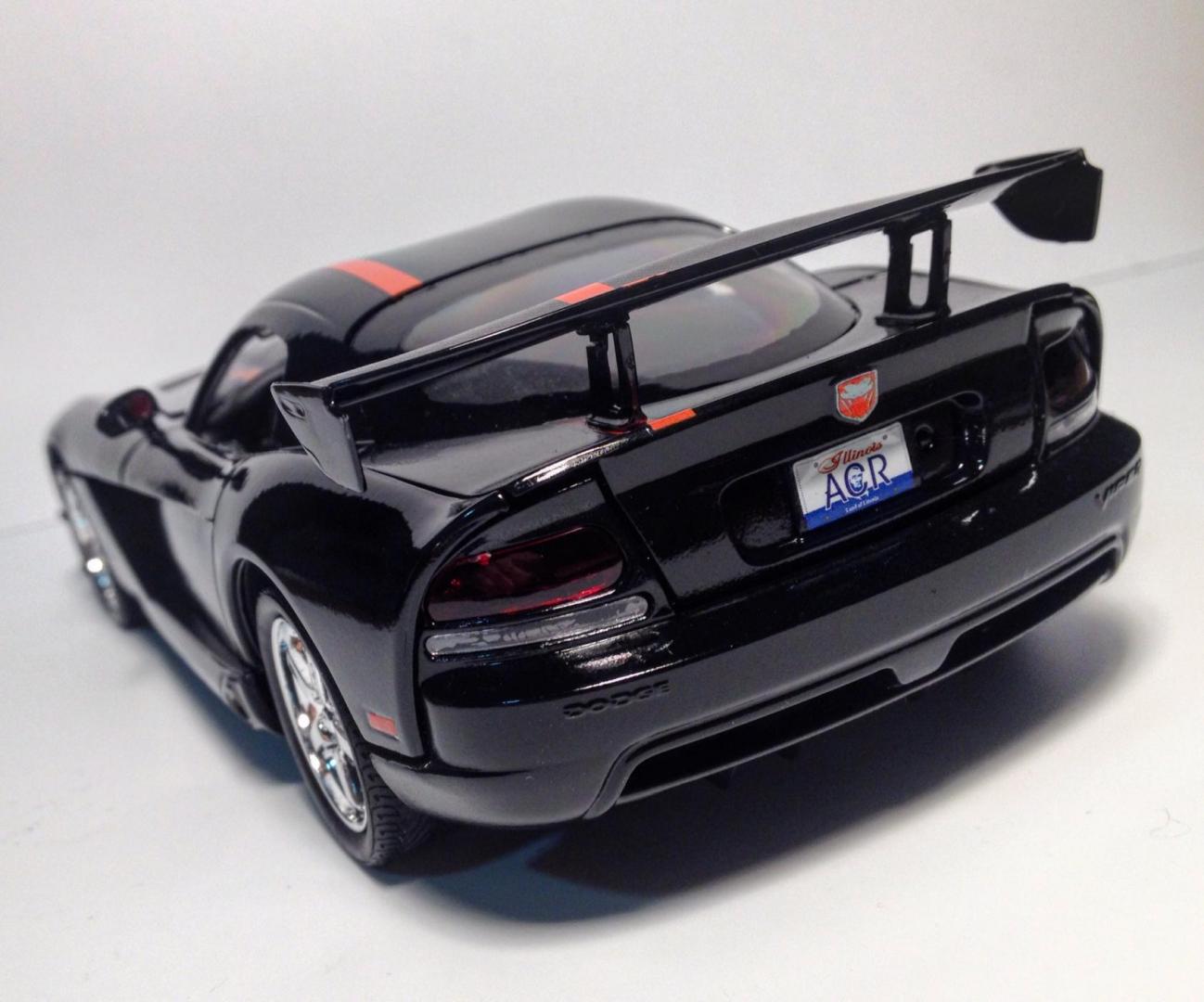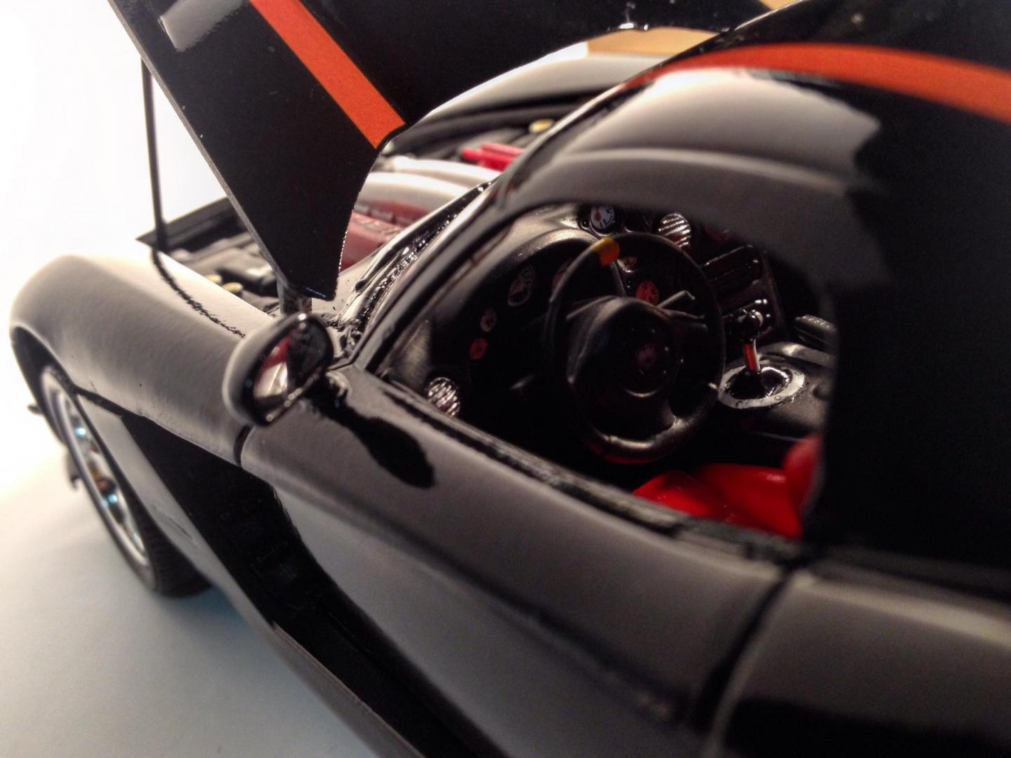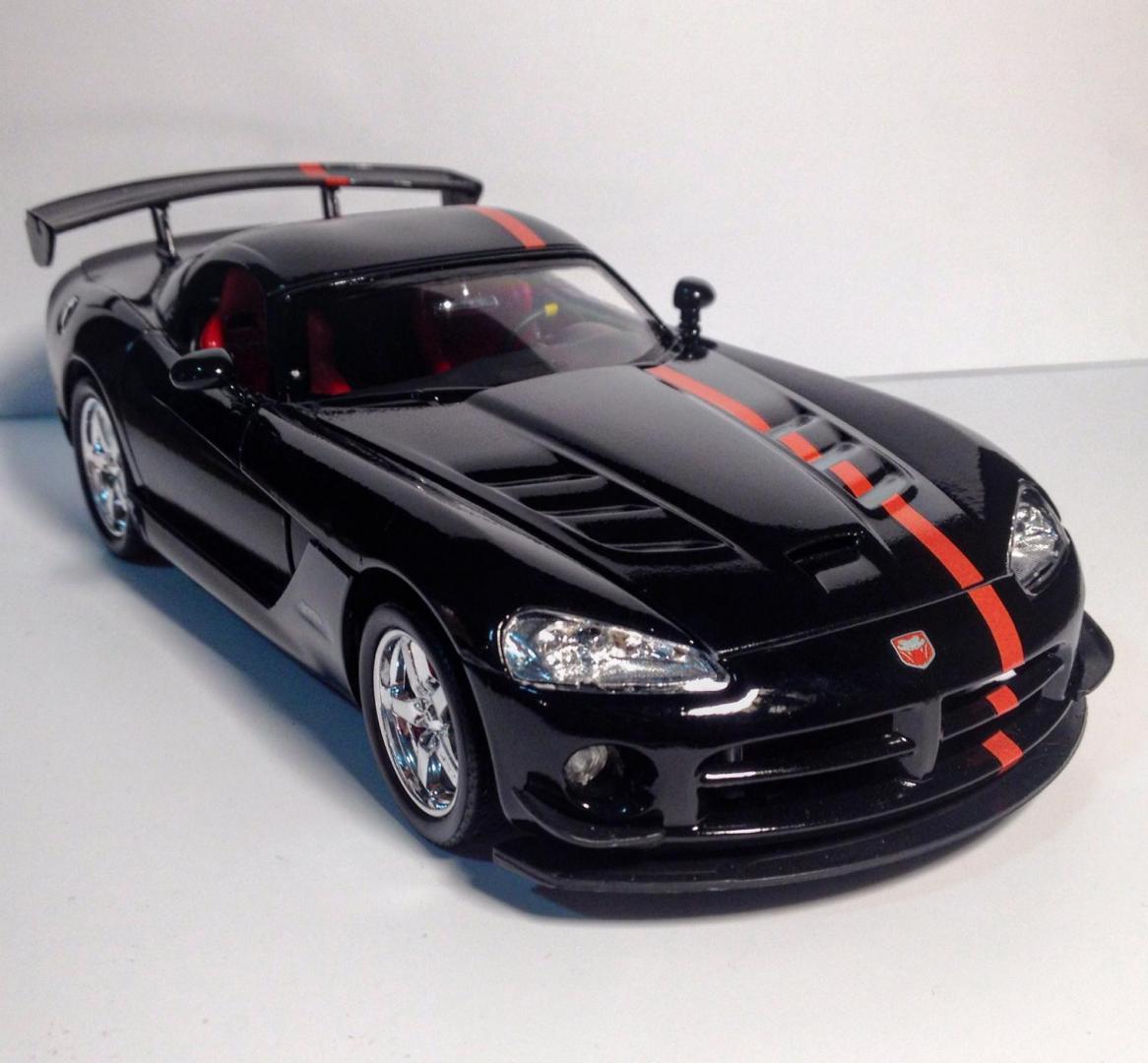 First one done for this year. This went a little better then the Cuda even if i made many mistakes and arent too happy about it. What is done is i bashed a AMT Viper coupe for suspension,engine,transmission,brake booster and engine managment. The rear back up lights was made out of clear parts three,inspired by two other builders on this forum. The plenum and intake is from Revell (Thank you evilbay lol). The steelies are from a member on here,dont remember hes name but has ebay store. The dog dish are from Missing Link and are great. Paint is tamiya,dip stick is home made,alternator wire is just wire lol. Heater hoses are wire isolation,radiator hose is scale production,the hose clamps are Top Studio. Exhaust is modified Cuda AAR. I regret having some blackwash on the engine,because now it looks dirty. Also the rear window is a joke. Anyway,thanks all for the tip and suggestions in the WIP. Here are some pics. Thanks for watching,and if you like it or hate it,let me know.