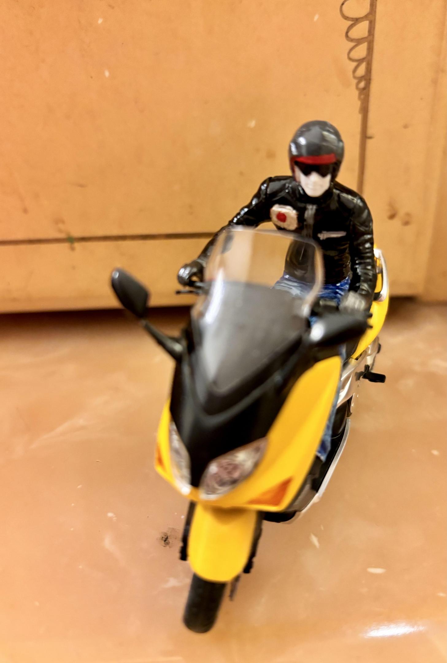 I started this kit about 30 years ago. Sat in the box painted metallic black or gray. Finished it finally. Not a motorcycle guy, but I think it looks kind a cool. Tamiya FZR750R OW01. Straight outta the box.