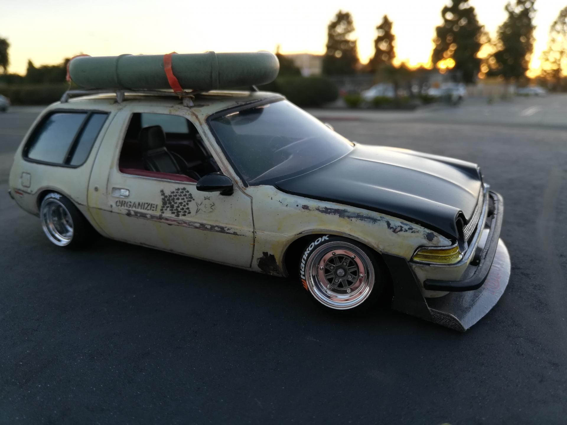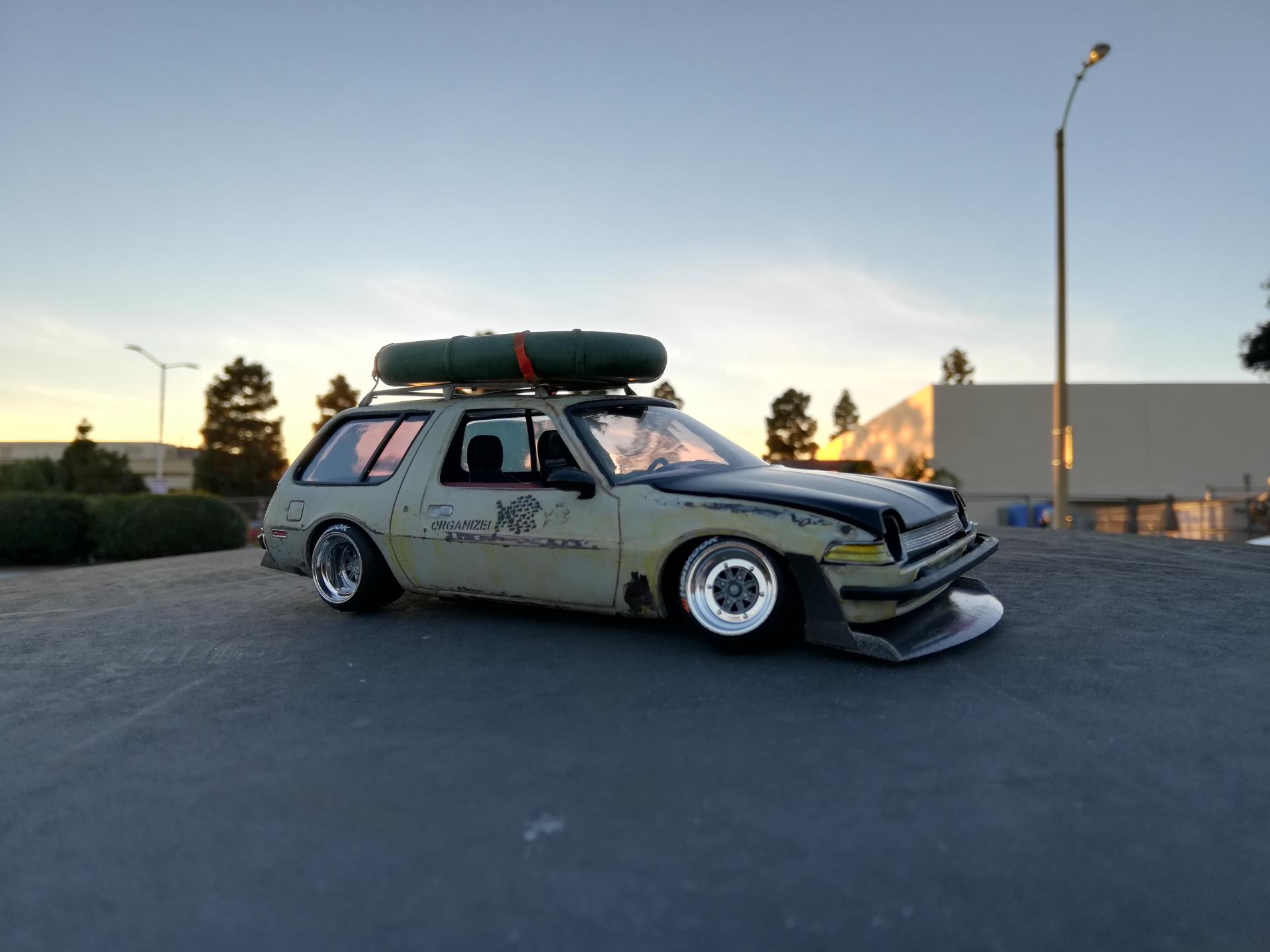 Still have some things to finish up on the Pacer Wagon for NNL West's wagon theme. Vette suspension, a Toyota 2JZ-GTE engine and a bunch of weathering. Front splitter and rear diffuser are 3D printed.
