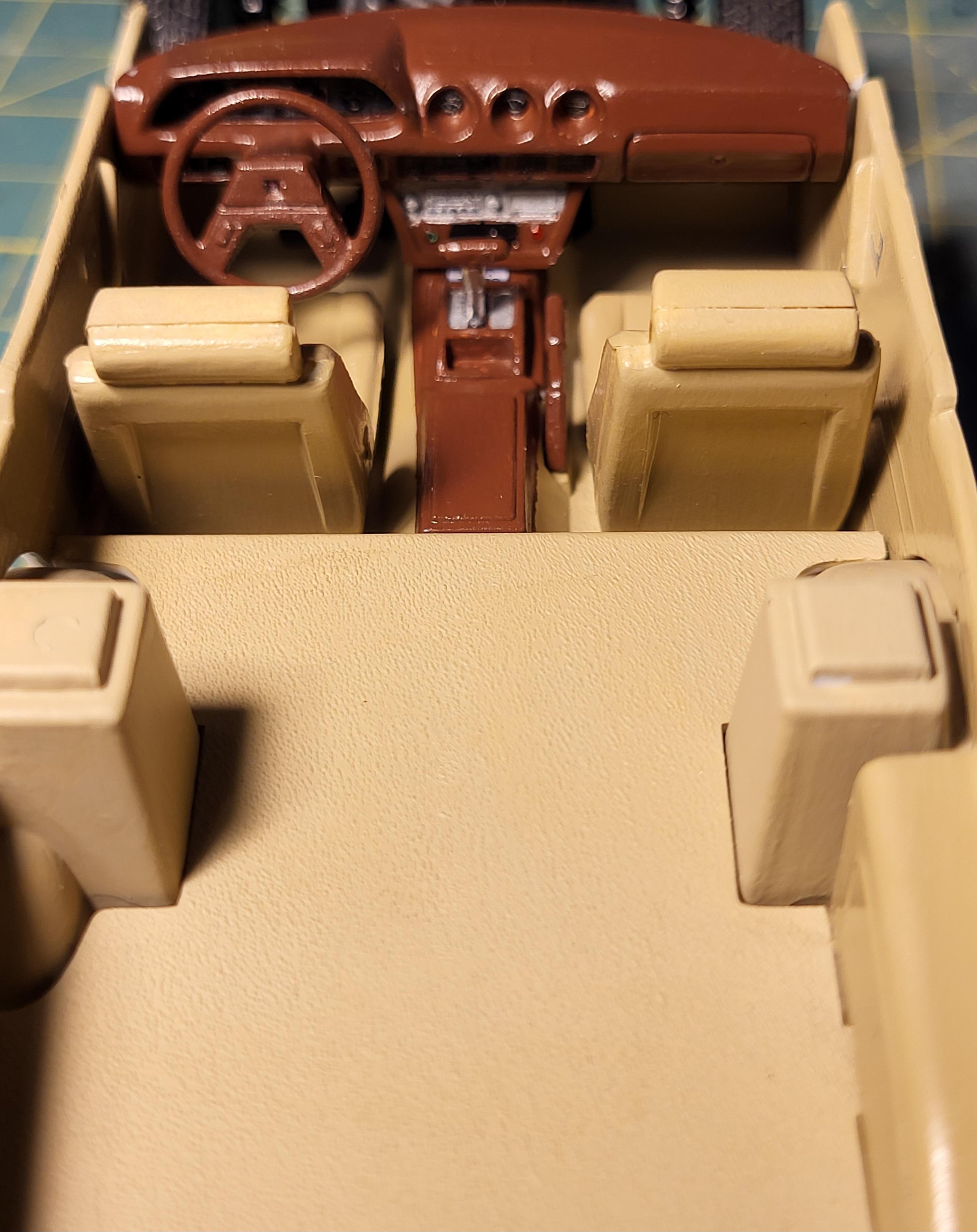Here is my 1978 Chevy Monza promo in Dark Camel that I added some detail to. I randomly came across this one on eBay recently for a good price and jumped on it. These Monza’s are pretty sharp looking for a peak-malaise-era econo-box! The original paint finish was a little box-worn on the roof and nose, but I was able to save it by polishing out the paint and clear-coating it with Extreme Lacquer Clear. Window trim is silver Sharpie and other bright work is generic Molotow-style chrome pen. Mirrors came from an Academy ‘75 Hyundai Pony, the Asian market fender mirrors. I love doing up these old promos and simple snap kits like this; it’s a nice slump buster and lets you practice or exercise your detailing skills without investing the time and money into a full kit!