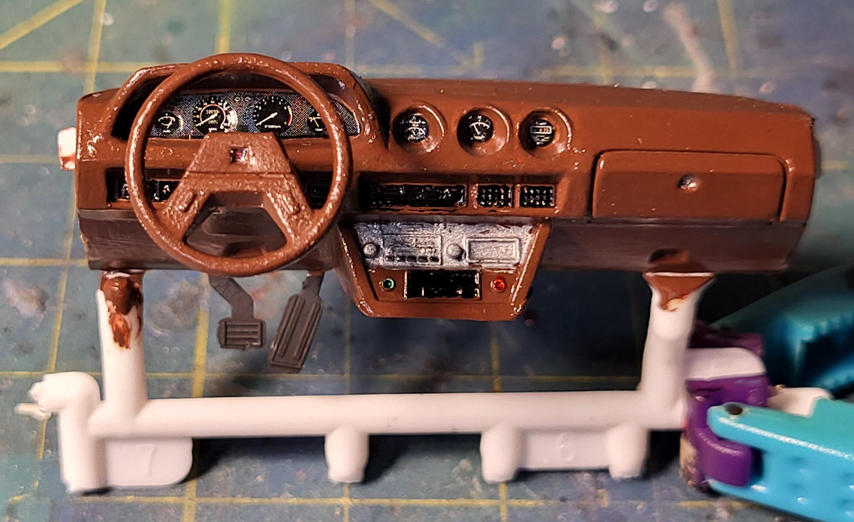 One of those builds just for fun and to further develop airbrush painting skills and maintain build techniques. Id say the idea's and inspiration for the style of the build, came from watching South Florida car culture and Donk car show videos on YouTube. 3D printed steering wheel, scratch built stick shifter and Hobby Design resin seats which I removed the head rest. Wanted something different for the interior colour, so decided to use 50:50 mix of Ammo by Mig Medium Rust and Dark Rust to achieve a redish brown (chestnut??). Floor colour is Ammo by Mig Chipping. As per usual the colour shift was applied over a gloss black base. Removed the moulded in lower grill to open the lower opening of the front bumper. I 3D printed the wheels, the files were sourced from Dirty Customs. I up scaled them to 19's and used Aoshima cambered tyres for the ultra low profile B pillar window frame was removed to achieve more of a hard top coupe look. Shaved the door handle and filled the pocket. Also filled the quarter panel vents. Filled in the fuel cap door.