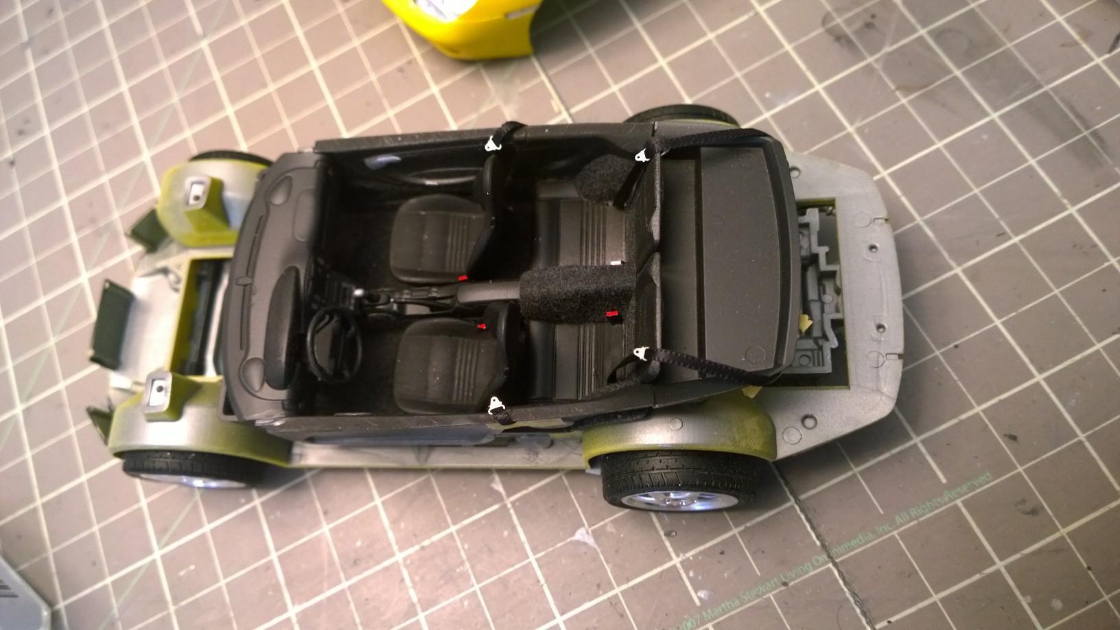 Well this kit has been an incredibly long WIP. I bought this kit back in the mid-90s when I was still working for Porsche. It was to be one of the kits that got me back into building. So I started it, then promptly stopped working on it. For whatever reason. And now I'm going to finish it. Back when it was new, I decided purple was the colour of choice. And I decided to spray that right onto the body, no prep, no primer, big mistake. So now I've done the purple bath, properly prepped the body, primed it using Tamiya white primer, then sprayed Tamiya Gun Metal. Needs some polishing, but I like how the colour turned out. Interior is now a semi-gloss black, with Model Master Dark Crimson. I think it's a pretty close approximation to Porsche's Oxblood Red. Over the years, the kit's wheels and seats vanished. Thanks to Steve (Intmd8r) I have a set of wheels and tires that could be interesting on this one, going to require some suspension tweaking, but it should look cool when done. I have a set of seats coming from Clearly Scale, so those will look pretty good once in. Not going too nuts with detailing on this one. Just want to finally finish it and have a good looking curbside kit to put on the shelf.