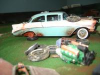 I finally finished something and found a camera! Thanks, JTalmage (ps I still need to find a box for your hotrod parts o__O) Whilst taking these pictures, the removable top took a leaper off the table and the window fell out, hence the last picture. This was also my first time doing plug wires. I used small electrical wire stripped and rebraided, then painted green.