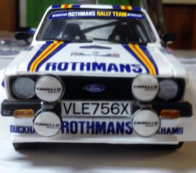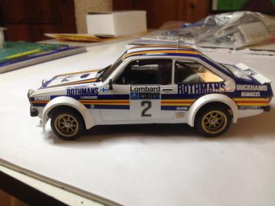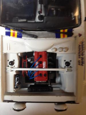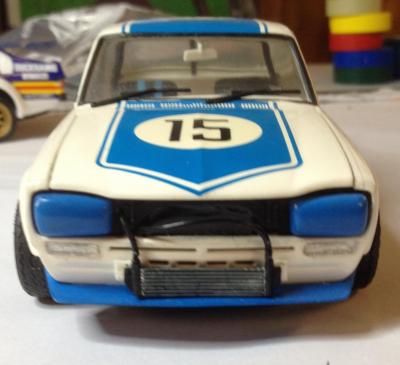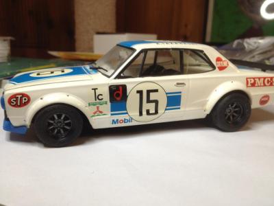 I like to look for unusual models, like Fujima's Nissan Skyline GT-R KPGC10 race car. Unfortunately, it's a curbside. So i took the engine from the Tamiya skyline and transplanted it. Here's the result: Then there is the Esci Ertl Ford Escort RS1800. It's a clear body kit. The tooling was not so great. But, I painted it white and acquired some Rothman livery decals. Interesting model...tough to build.
