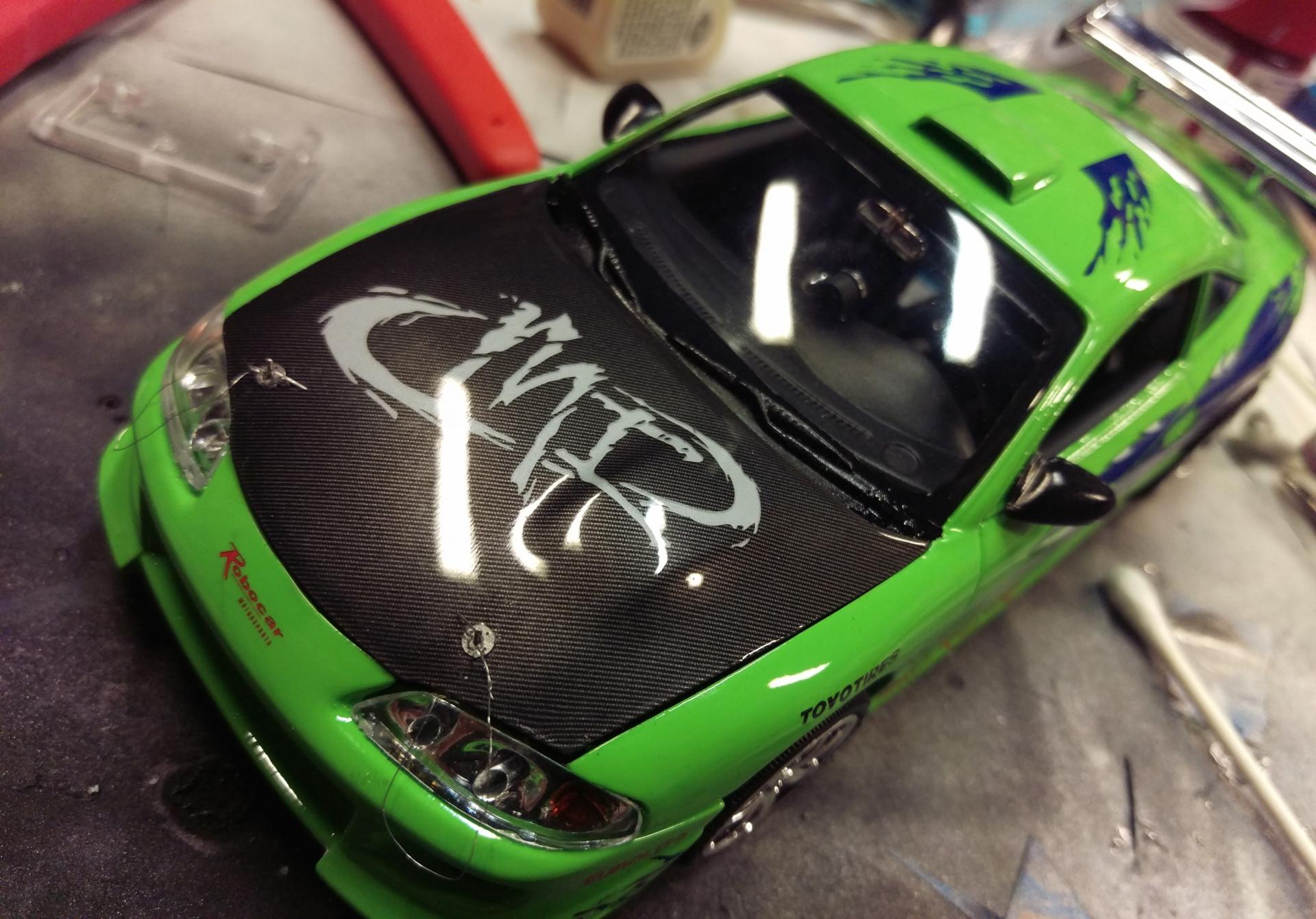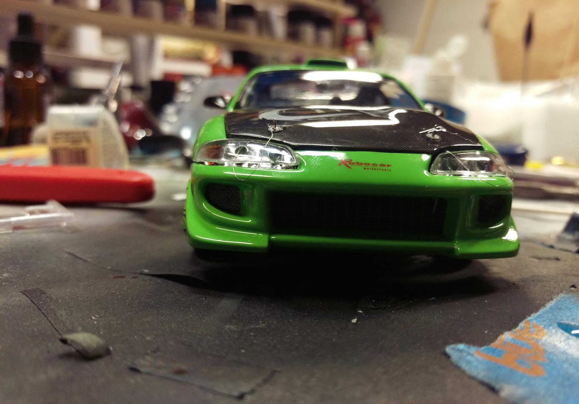 I did this one about 4 months ago me thinks. It's a movie car from the fast and furious collection by Revell. This was all about the decals. I ditched the stock carbon fiber for some scale carbon fiber decals. I used Tamiya paints and POL 2 part auto clear. Got some etched hood pins. Fun build.