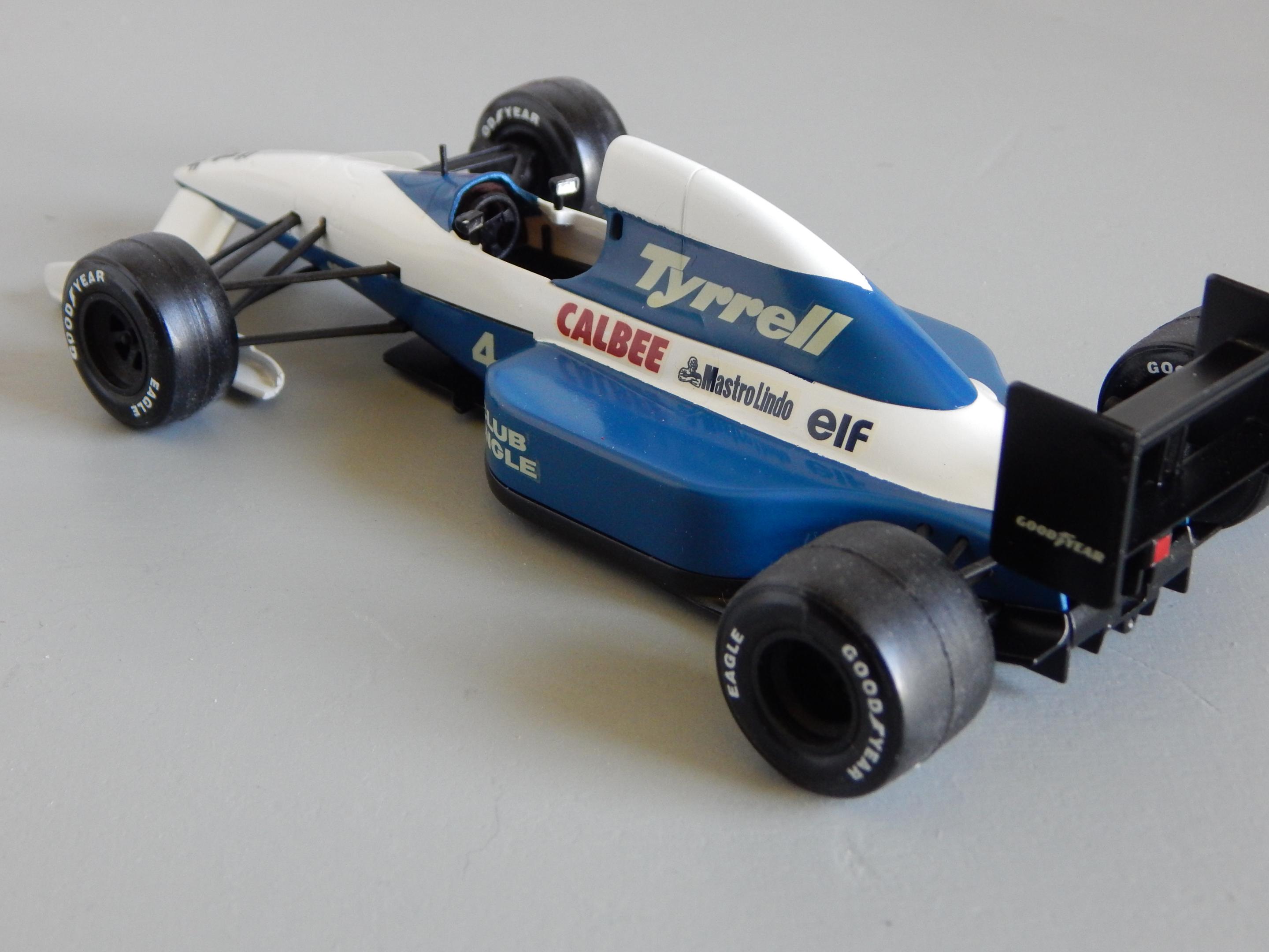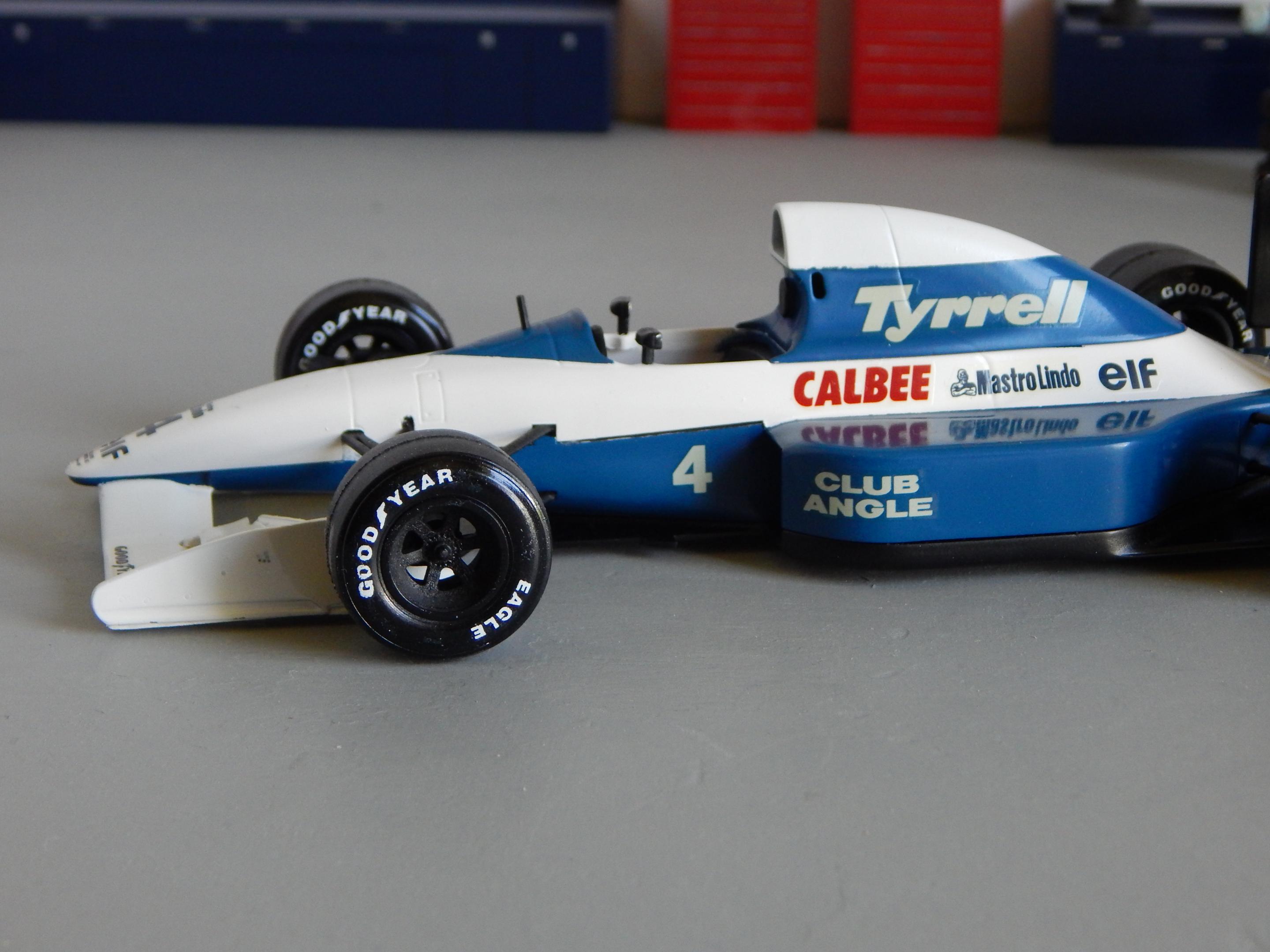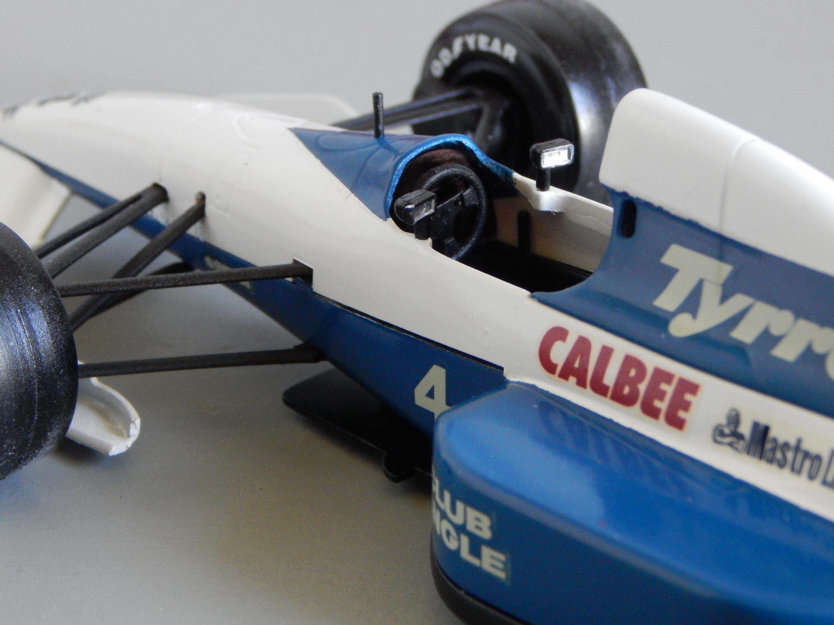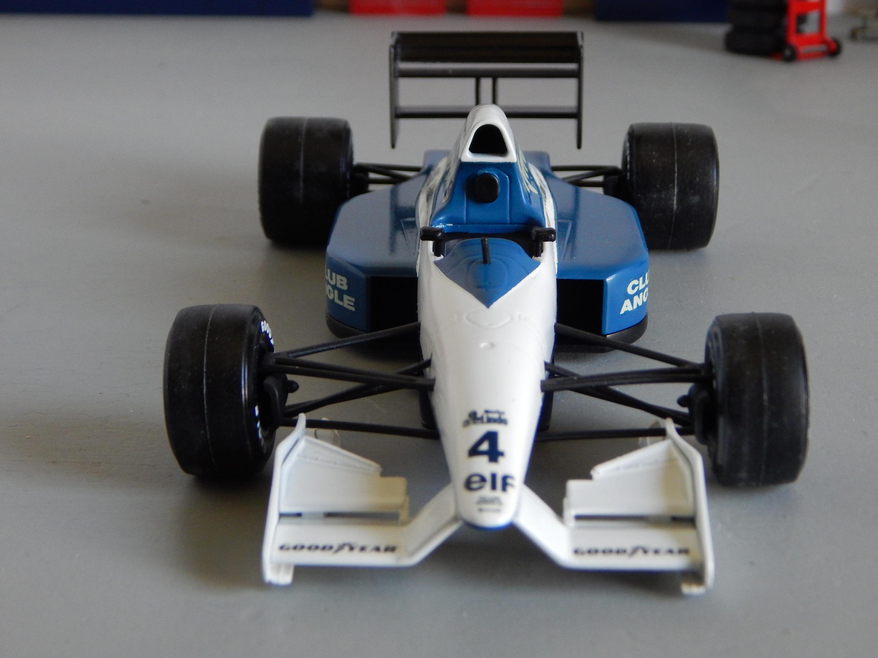 From Wikipedia: The Tyrrell 020 was a Formula One racing car designed by Harvey Postlethwaite and George Ryton for Tyrrell Racing and raced during the 1991 season. The 020 was driven by Satoru Nakajima who brought the Honda engine contract with him and also by Stefano Modena. Its best result was a second place by Modena in the Canadian Grand Prix. Tyrrell scored 12 points to finish 6th in the Constructors' Championship with half the points scored by Modena's 2nd in Canada. The car was powered by the 690 bhp (515 kW; 700 PS) Honda RA101E V10 engine previously raced by McLaren in 1990 and maintained by Mugen Motorsports, which would run Mugen-Honda badged engines the following year for Footwork Arrows. The car was updated for the 1992 season and was dubbed the 020B. For this season the Honda V10 was replaced with the 680 bhp (507 kW; 689 PS) Ilmor LH10 V10 engine and was driven by Olivier Grouillard and veteran Andrea de Cesaris. The team only scored 8 points for the season but again finished in 6th place. My first time building a kit from Wave. Very basic, few parts, it was almost a snap kit the way it went together. The tires were suspect as they seemed "sticky" no matter how much I cleaned them. I coated them with Future both before and after the decals and they seem to be OK. Simple curbside slump-buster between more complex builds. Comments welcome, thanks for looking.