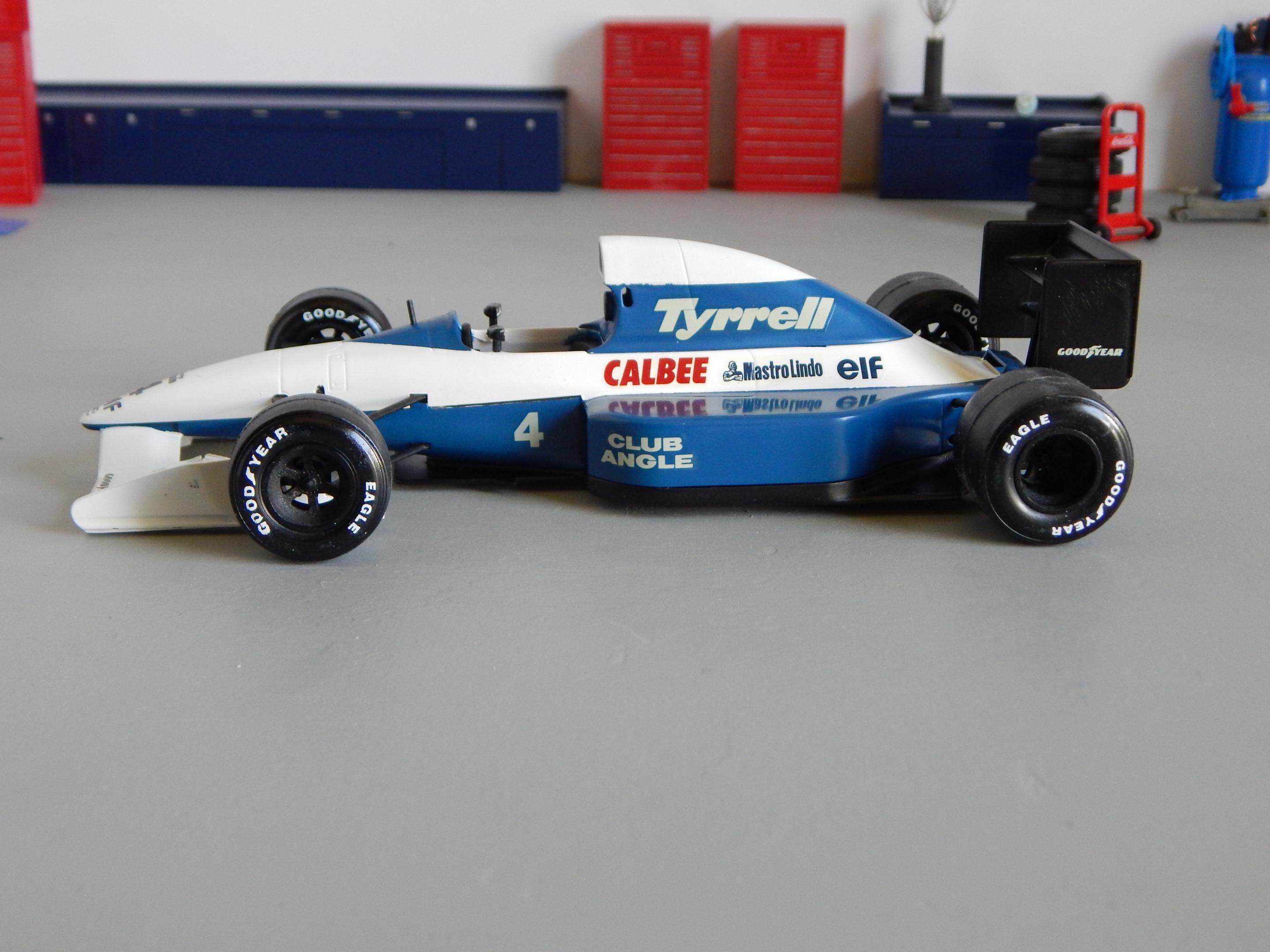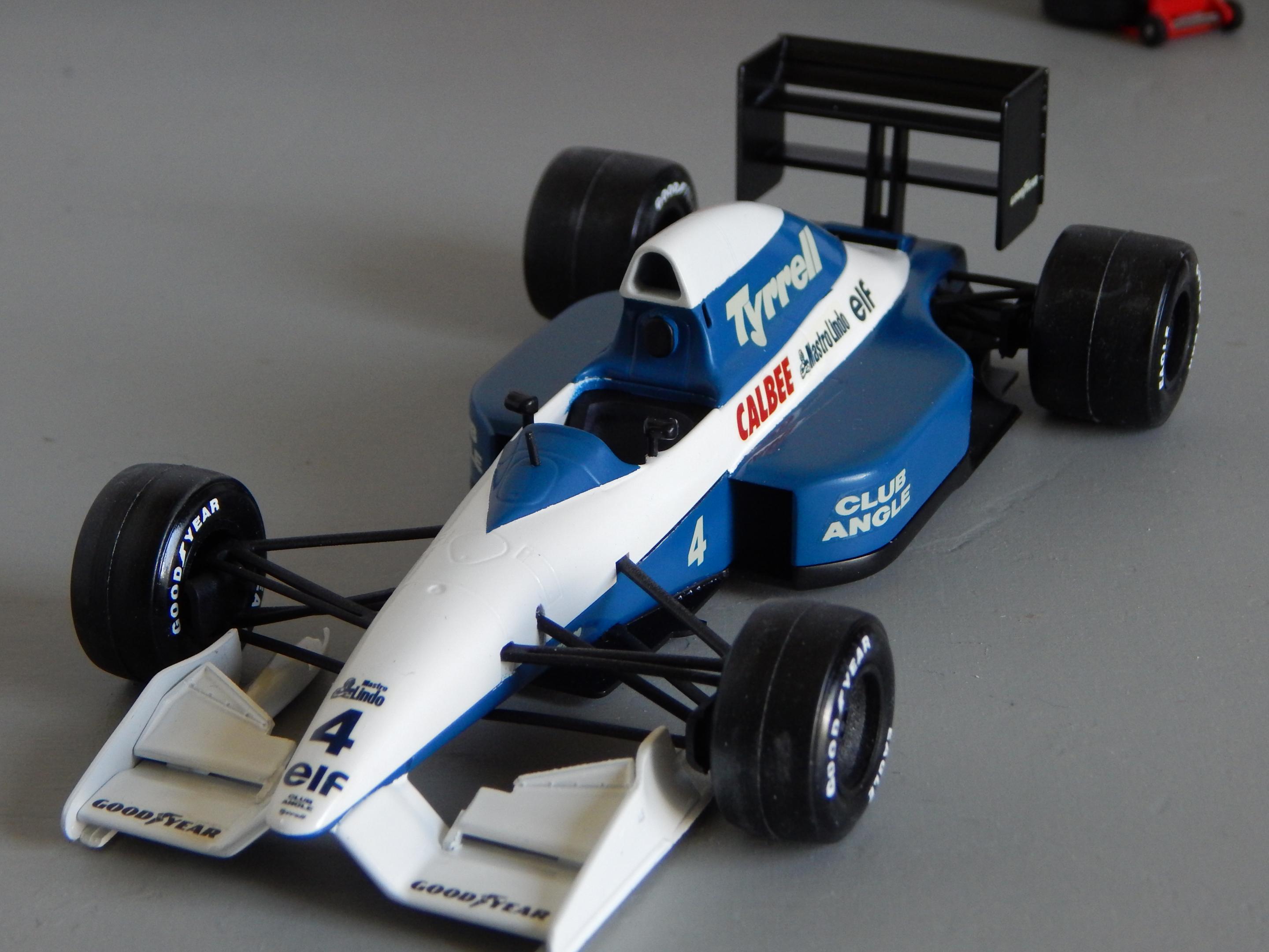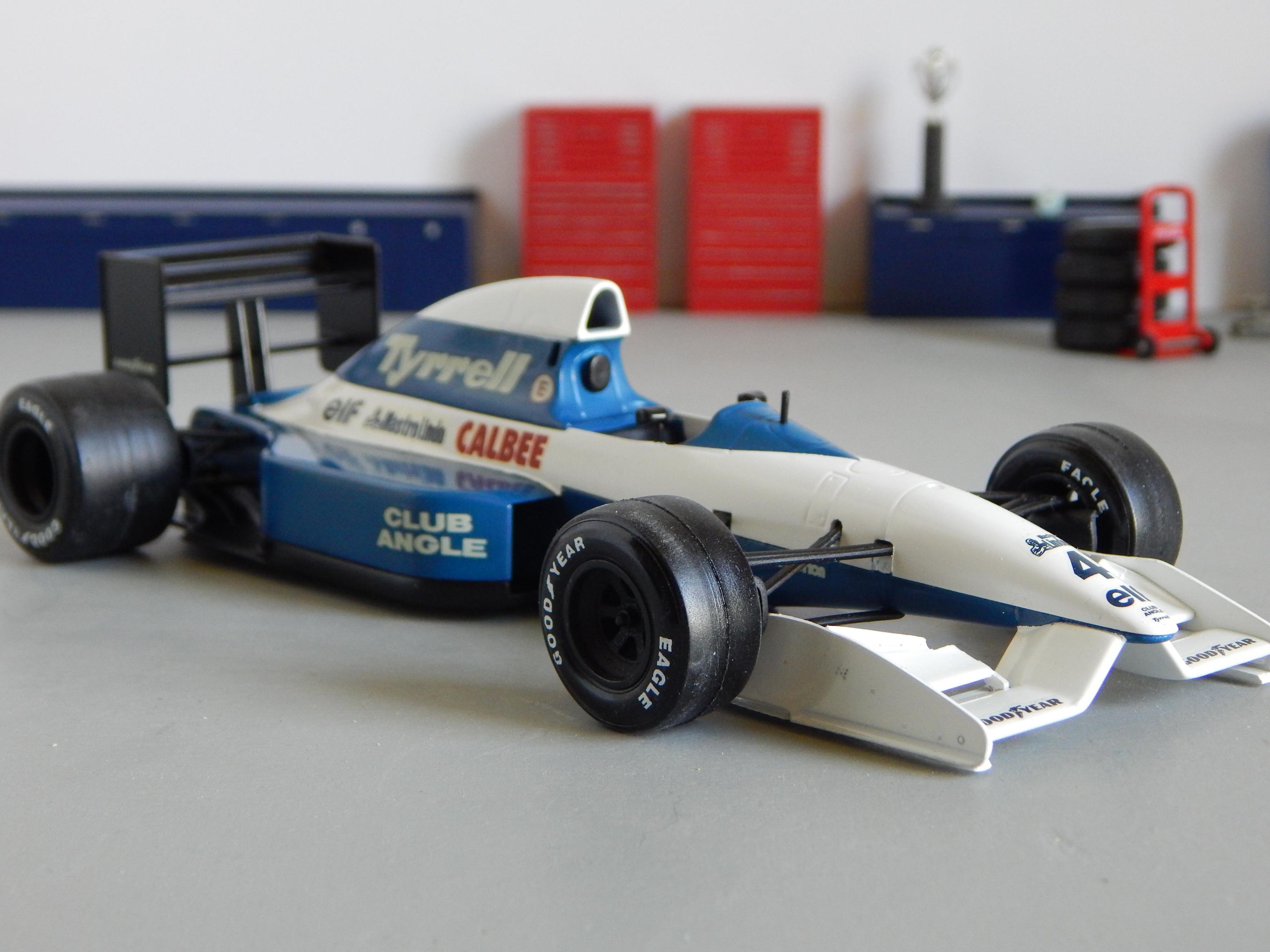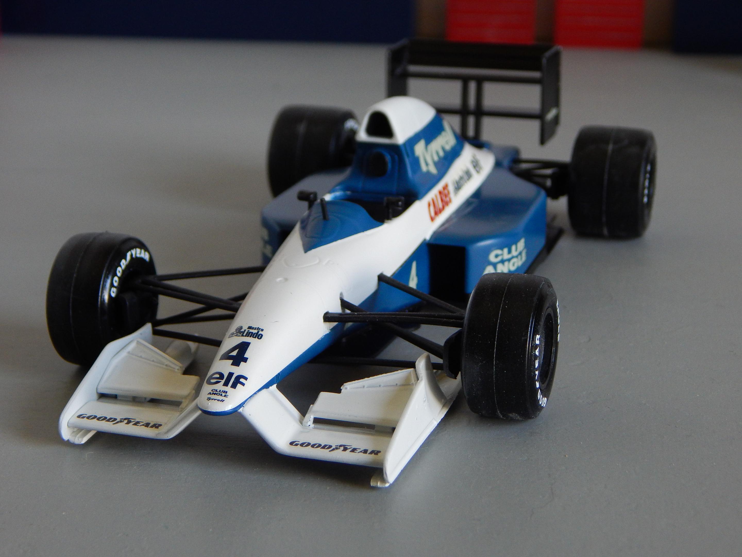 From Wikipedia: The Tyrrell 020 was a Formula One racing car designed by Harvey Postlethwaite and George Ryton for Tyrrell Racing and raced during the 1991 season. The 020 was driven by Satoru Nakajima who brought the Honda engine contract with him and also by Stefano Modena. Its best result was a second place by Modena in the Canadian Grand Prix. Tyrrell scored 12 points to finish 6th in the Constructors' Championship with half the points scored by Modena's 2nd in Canada. The car was powered by the 690 bhp (515 kW; 700 PS) Honda RA101E V10 engine previously raced by McLaren in 1990 and maintained by Mugen Motorsports, which would run Mugen-Honda badged engines the following year for Footwork Arrows. The car was updated for the 1992 season and was dubbed the 020B. For this season the Honda V10 was replaced with the 680 bhp (507 kW; 689 PS) Ilmor LH10 V10 engine and was driven by Olivier Grouillard and veteran Andrea de Cesaris. The team only scored 8 points for the season but again finished in 6th place. My first time building a kit from Wave. Very basic, few parts, it was almost a snap kit the way it went together. The tires were suspect as they seemed "sticky" no matter how much I cleaned them. I coated them with Future both before and after the decals and they seem to be OK. Simple curbside slump-buster between more complex builds. Comments welcome, thanks for looking.