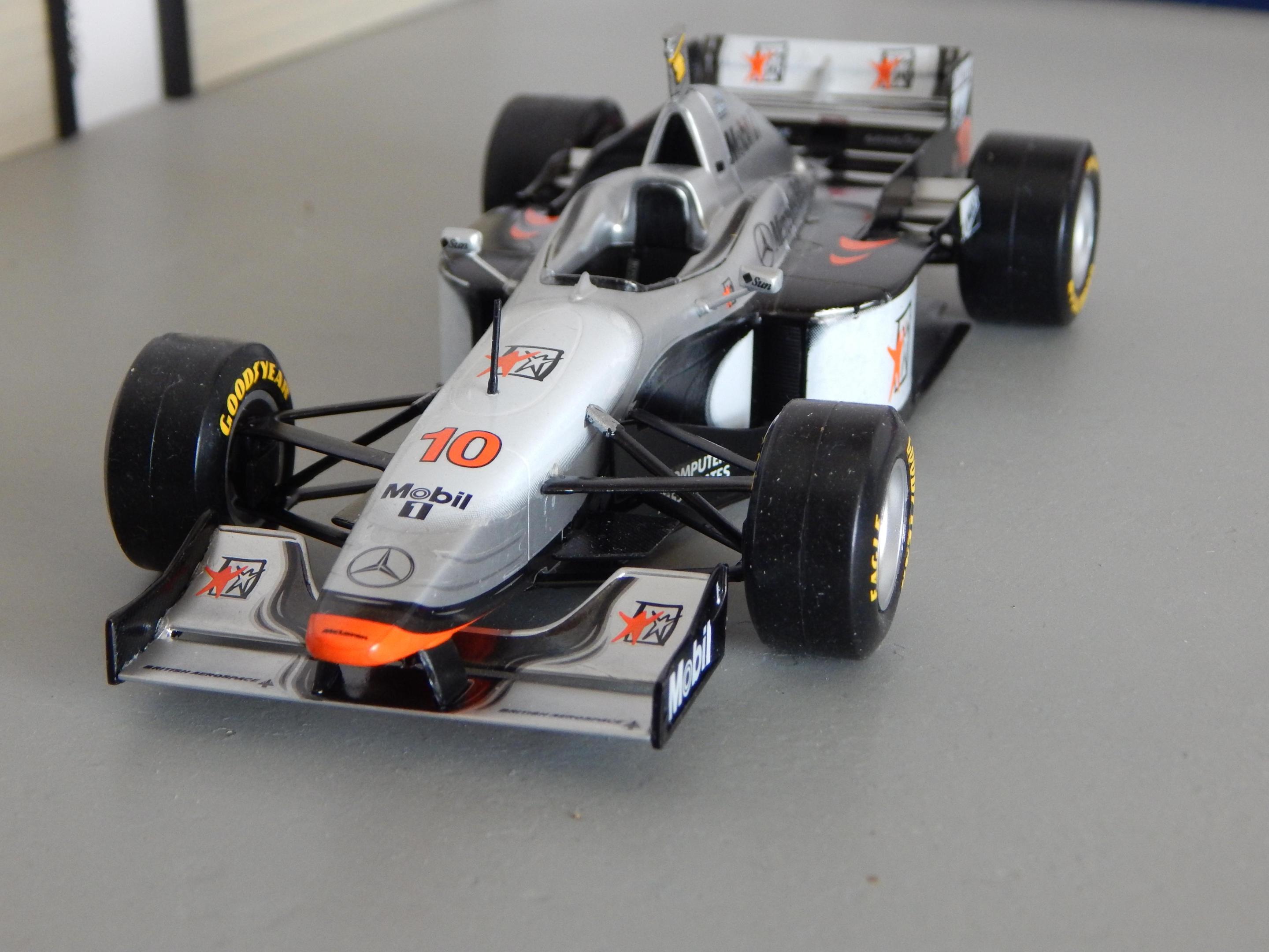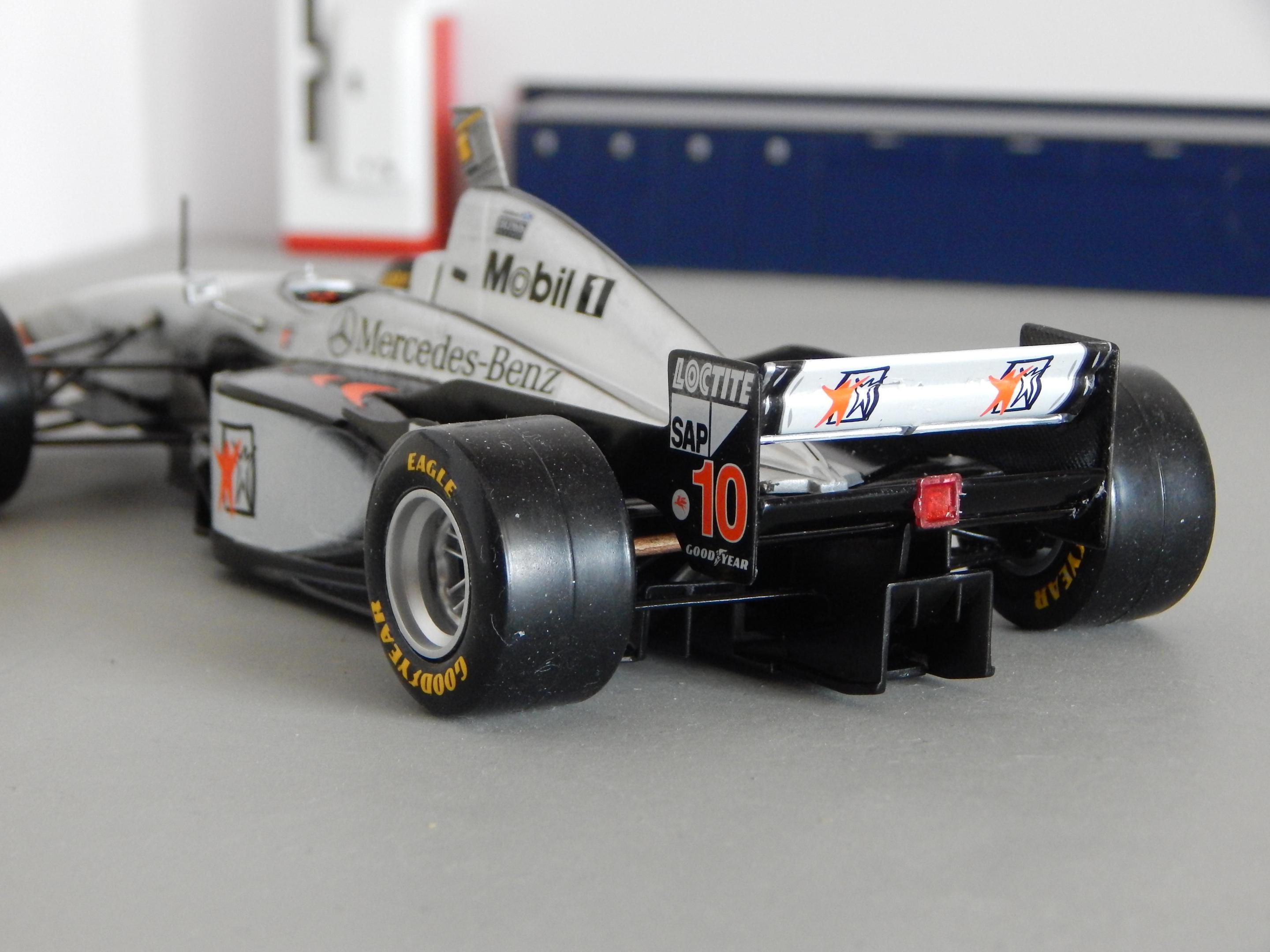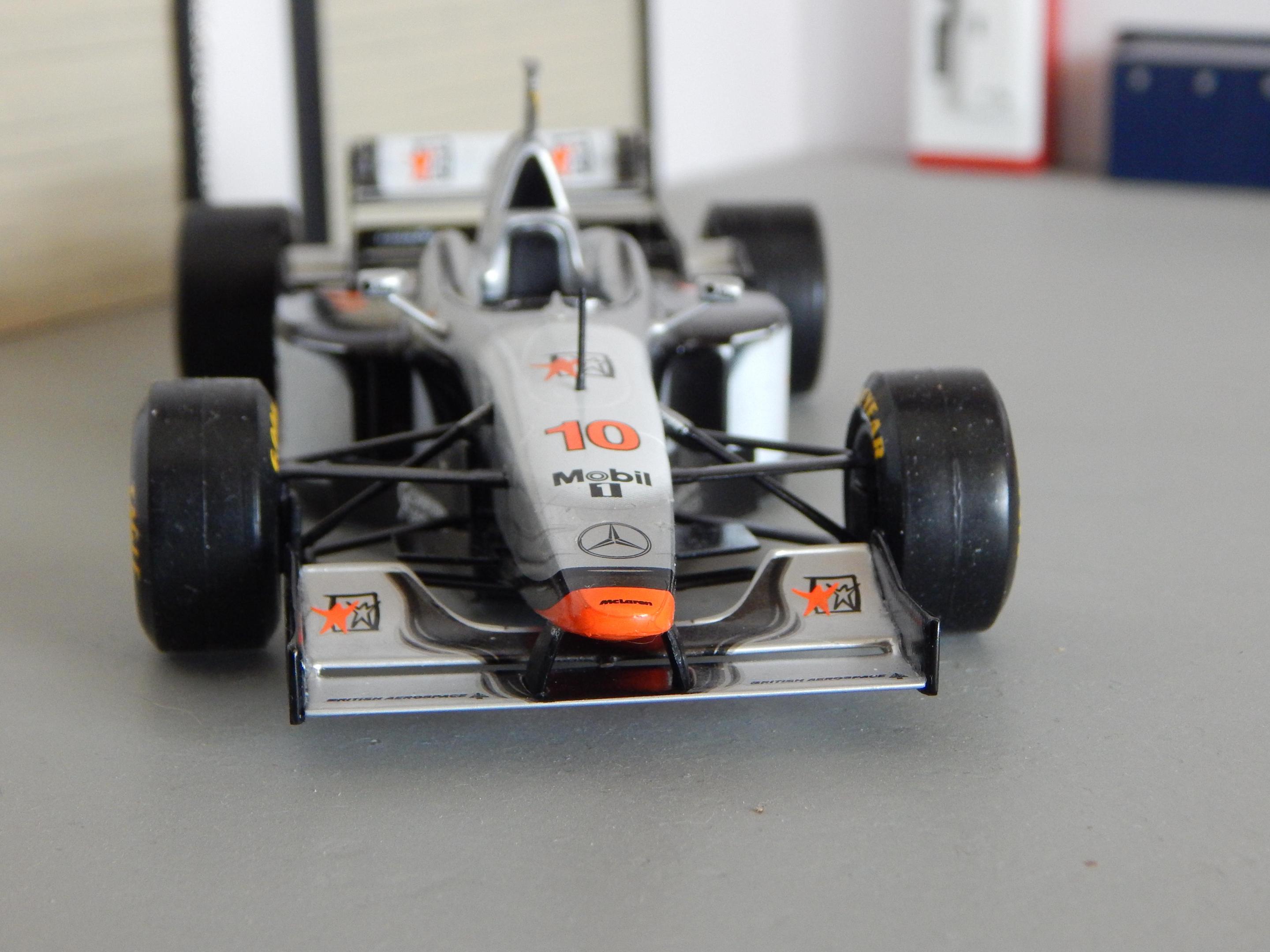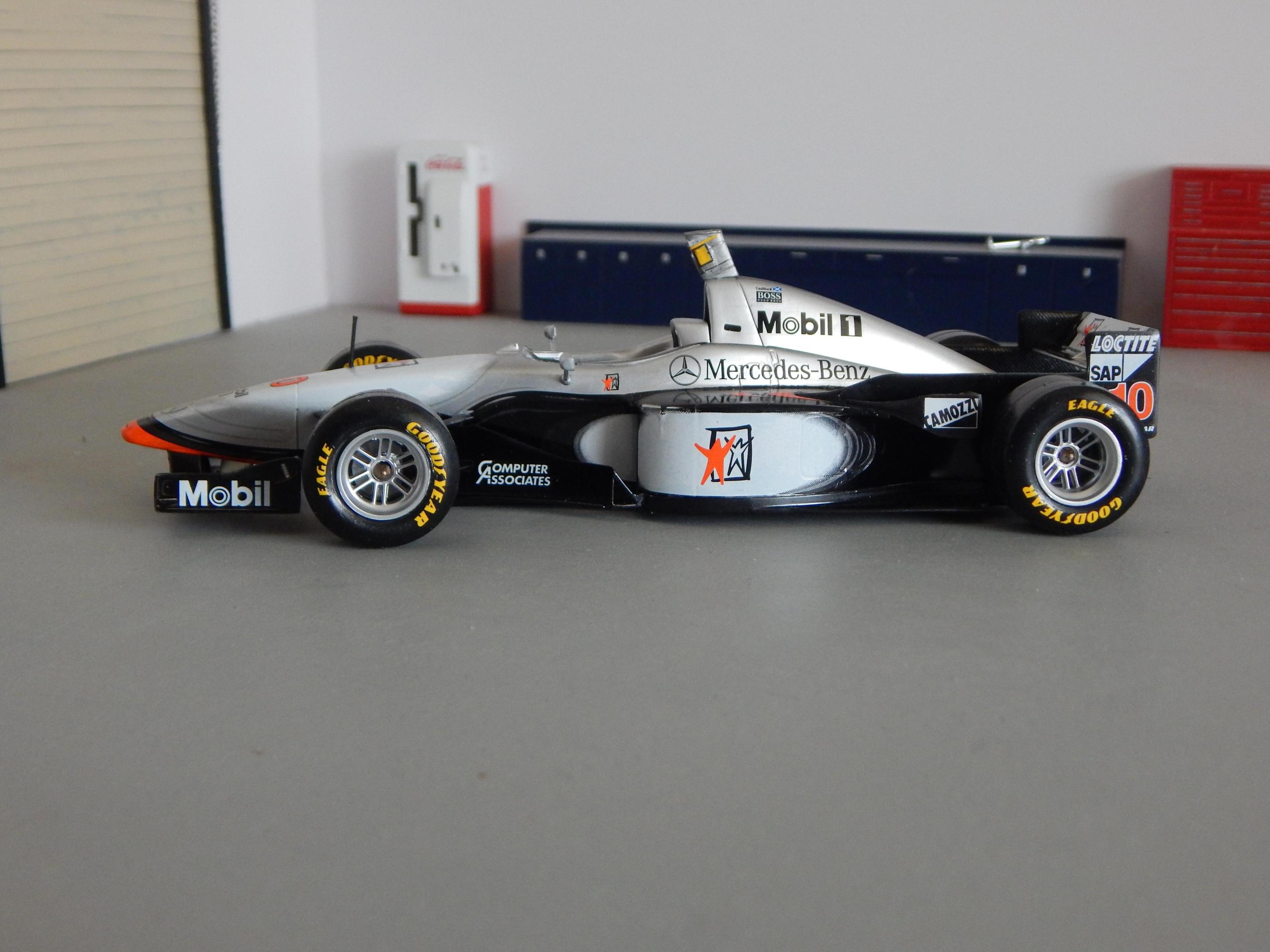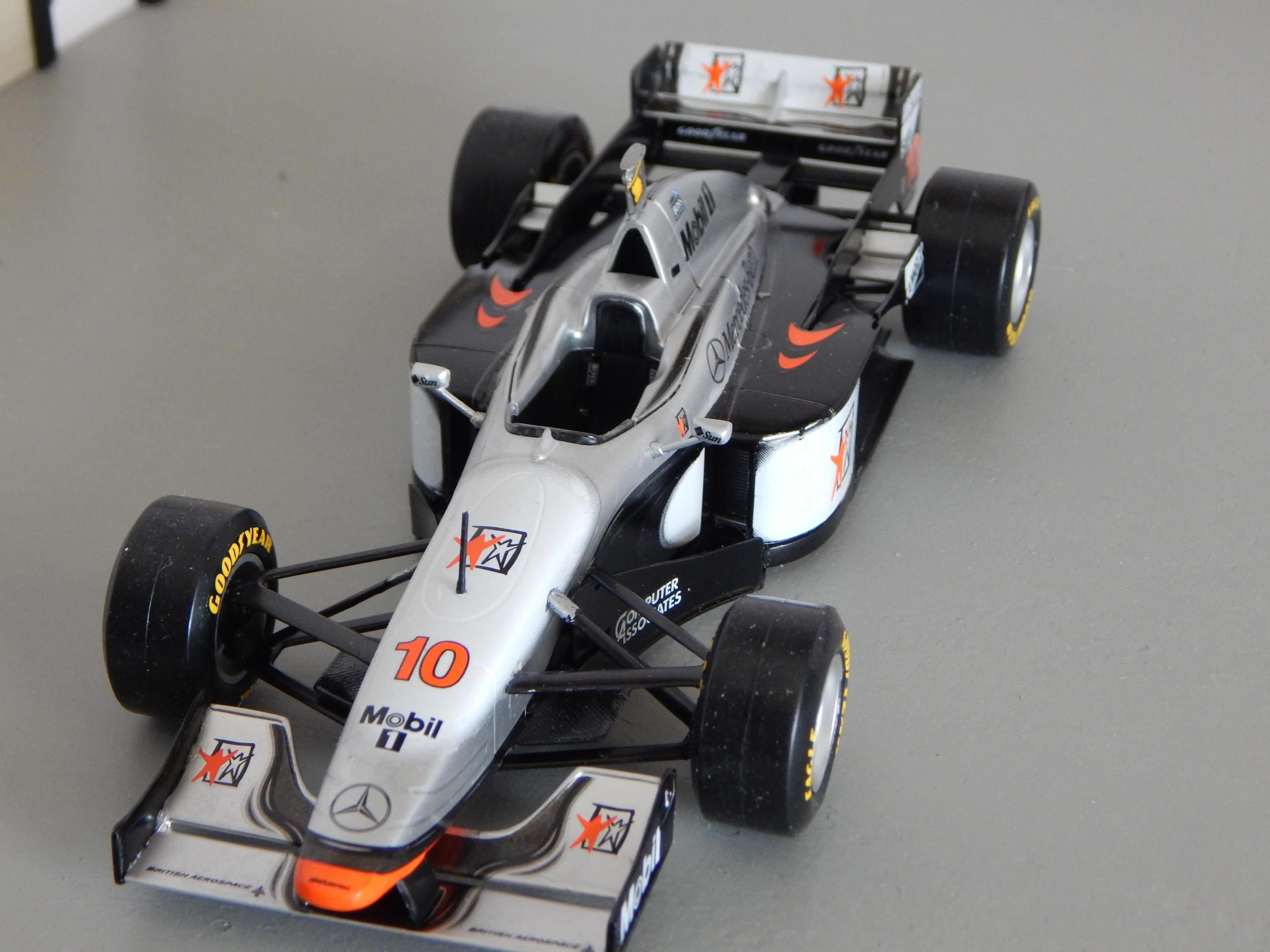 My latest completion. These Revell 1/24 kits are kind of finicky, small attachment points for the wings being the toughest part, but I really like doing the decals. Lots of setting solution and some hair dryer heat got them snugged down well. This is the car driven by David Coulthard, his teammate was the #9 of Mika Hakkinen. Coulthard won the first race of the season in Australia and I think Hakkinen won in Spain that year also. Comments welcome, thanks for looking.