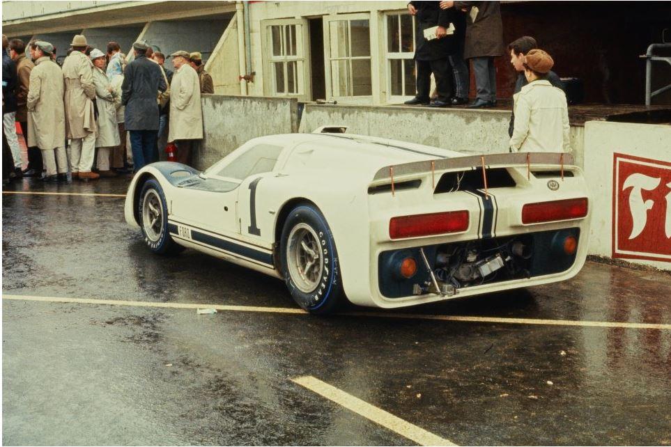 Ford J Car 1966 Le Mans Trials Ford leadership decided in 1965 they needed a new, made in the USA, lighter and more aerodynamic GT for Le Mans. They teamed with Kar Kraft and Brunswick to build an aluminum honeycomb chassis and Ford Styling came up with a dramatic new body shape. For the Le Mans trials in April 1966 the all new J Car was introduced and dubbed the Pickle Fork (your grandmother or mechanic will know what that means). Here as it arrived at the local Peugeot dealership where Ford rented garage space for their J Car and MK IIs. During the trials it was found the rear end was lifting and a spoiler was fitted. I also believe IBM used it as a test bed for their new electronic timing system. The MPC 1/25th J Car Model. The MPC model was unique in that it had a body molded in clear plastic and had a detailed chassis. I got this model as a built up with a chassis painted to match the box art. There was damage to the suspension which had to be fixed and glue smudges to the windows had to be fixed. A periscope rear view mirror was missing and had to be made. I had decided to paint it to match the J Car as it was at the trials. The rear end needed to be revised to match its configuration at the trials. The taillights were changed, the spoiler was added, and the tacked-on IBM transponder attached. Decals came from the parts box. Thanks for looking and comments are welcome. There is a WIP thread too. Oops, just noticed the NACA ducts are missing in the tail.
