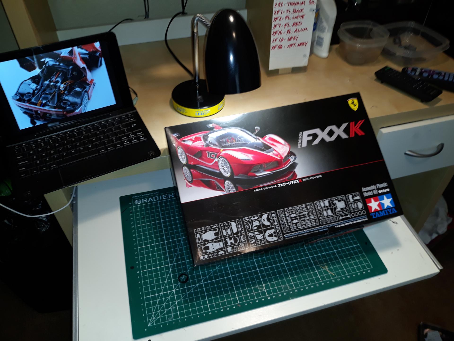 Finally decided to dust off my little work table, shake off some of this old rust and get busy! Right around the 1st of the month I ordered 3 different kits that I'd set my sights on from my favorite on-line supplier, and low and behold, there was a knock knock on the door friday morning and there he was....the good 'ol UPS guy handing me a package that absolutely made my day! There they were, the Ferrari Enzo, FXX-K, and the Ferrari F1 2001, all Tamiya 24th scale with the exception of the F1 in 20th scale. Yes, it was a dream come true for this wildman~**~ Anyhoo, to keep this entry from becoming a lengthy novel, I've decided to do the FXX car first, I guess for a lot of reasons. From the minute I began unboxing this masterpiece, it was very obvious that I had a pretty darn complex build there in front of me plus I just love how this car looks, and the background on it is pretty impressive as well. This will be the first time I've done a WIP on-line, and my first attempt (ever) at a project this detailed, but I've done some background research and collected plenty of photo reference- hopefully this helps me along the way! I didn't go overboard on the aftermarket detail stuff on this car, but got a middle-of-the-road PE kit from Crazy Modeler and the carbon fiber decal set from Tamiya. I'm intent on taking it slow, and hope that I can turn out an end result that does this bad boy the justice it deserves. I am very aware that this particular forum is absolutely loaded with some of the most accomplished and skilled craftsmen one could ever hope to encounter, so if you have ANY advice, suggestions or tips you don't mind sharing as I embark on this journey, not only will they be welcomed, but very much appreciated as well!! Thanks guys, and look forward to your comments!