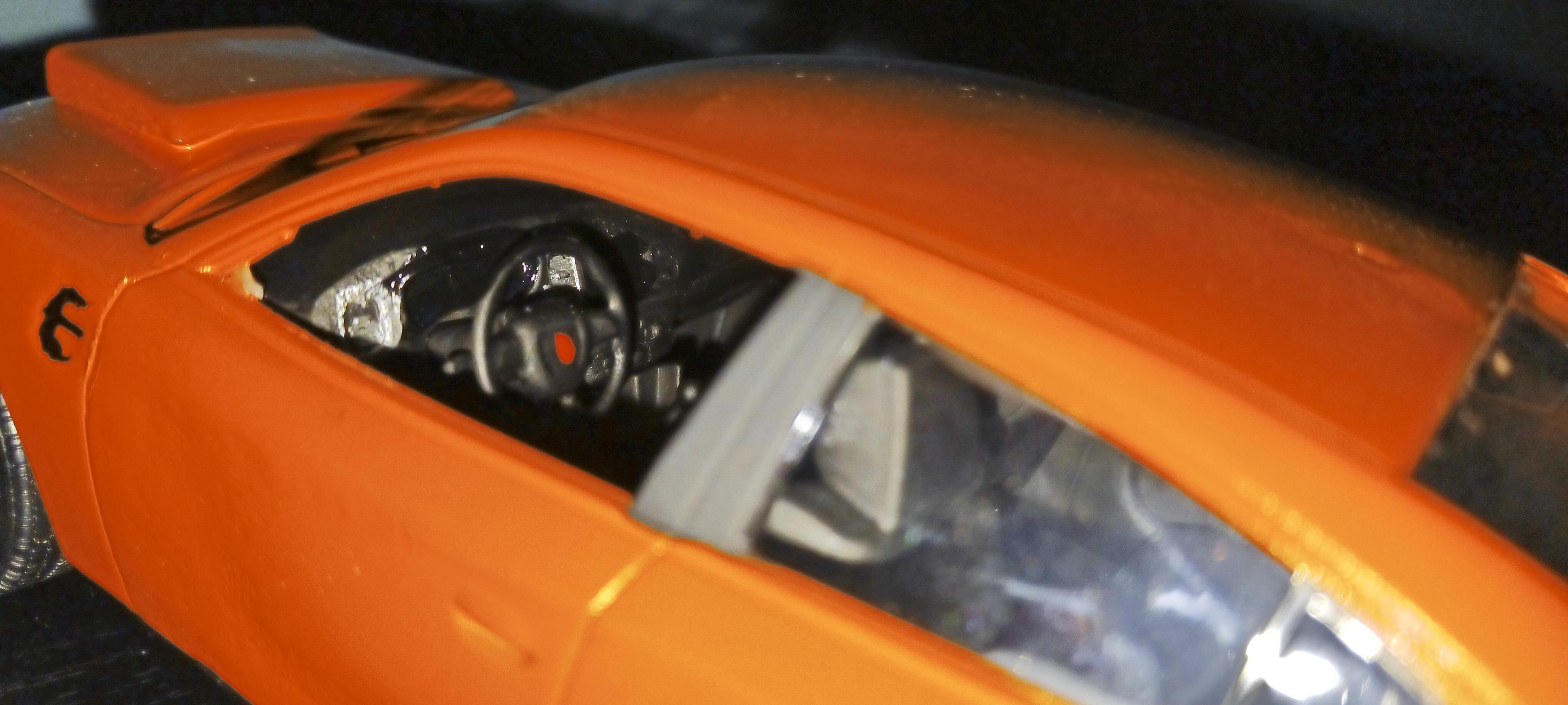 1/25 scale kitbashed model of a bravado gauntlet classic custom from gta online I made using a Revell 70 Cuda and a Revell 69 Daytona nose cone and a Revell 70 superbird wing and some putty and the rest came from my parts boxes