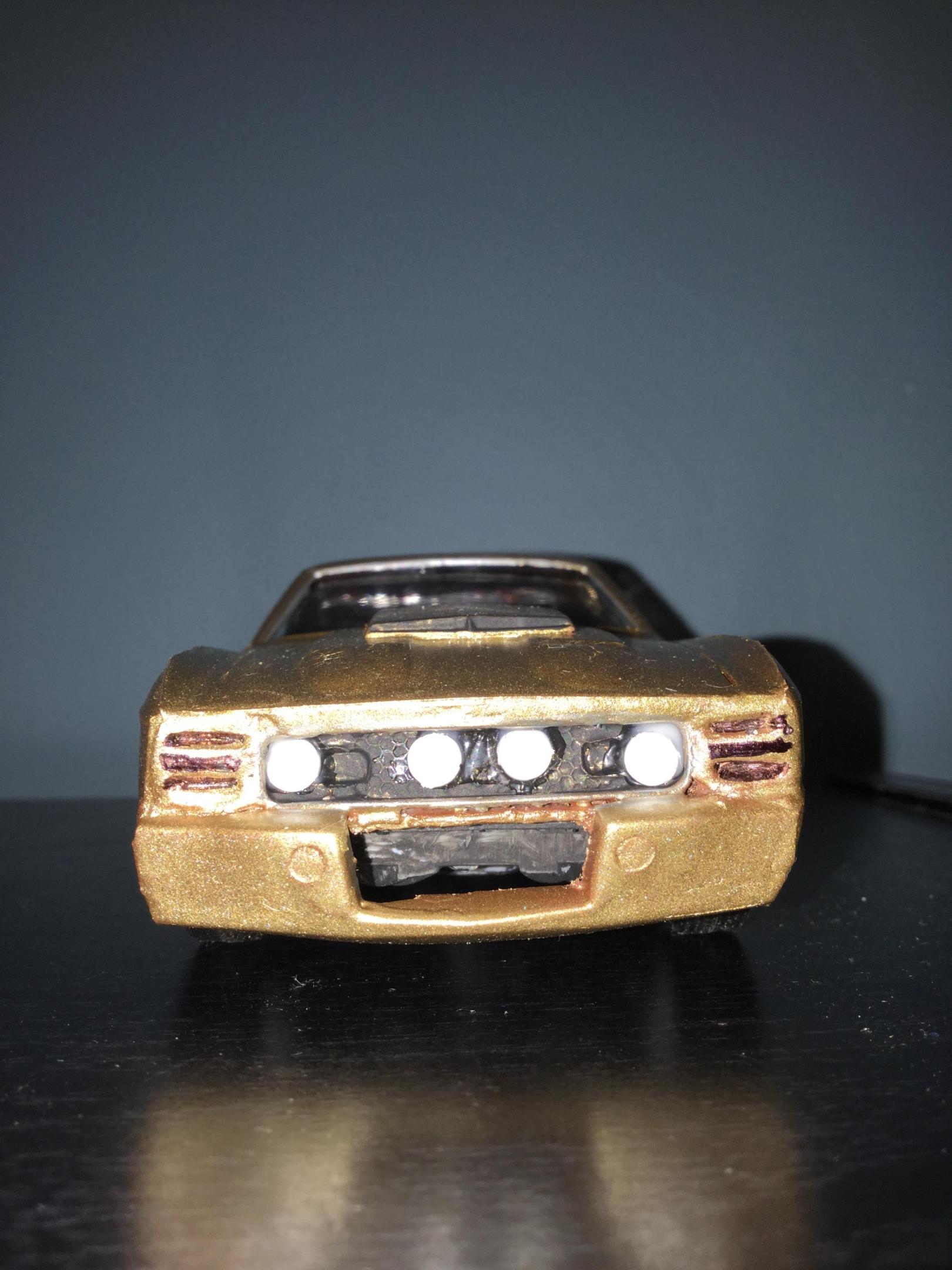 1/25 scale kitbashed model of the declasse Tampa from gta 5 I used the body and hood of an amt/ertl 66 nova and the rear clip,taillights, back bumper from a Revell 68 charger and the grille from an amt hemi hunter dart with I added extra headlights to the rest came from my parts boxes