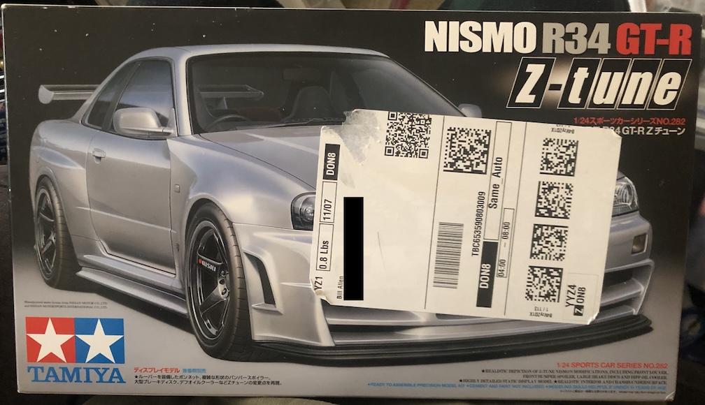 I know another forum member already touched on this subject, which I looked for already. My apologies moderators, move as necessary. On Nov. 6 I purchased a Tamiya Nismo R34 GT-R Z-Tune, as the price was good. The order was fulfilled by Amazon. Delivery was quick and it arrived the next day, hurray! This is the way it was shipped, booo! So I went on line to find an effective way to remove the shipping label. The suggested way was to apply high heat (hair dryer high, not heat gun high), and start at a corner and try to peal back the label. This worked, however after the label pealed off, the adhesive residue remained. Tamiya box lids have a glossy paper surface which is achieved by a plastic film layer laminated over the printed paper cover. With further research, I found out that the residue might be removed with something as mild as cooking oil, all the way up to something as aggressive as Goo Gone. I decided to go all in with Goo Gone, but first tested the durability of the plastic film on an end panel. Success, no damage to the corner of the end panel. So with a small amount of Goo Gone in plastic lid, I went to work dipping Q-Tips in the Goo Gone and then slowly rubbing away the adhesive residue. This picture shows the top portion cleaned off and the bottom portion still with adhesive and fuzzy bits. After removing most of the adhesive with Q-Tips, I moistened the corner of a piece of paper towel with Goo Gone. I used this to give the whole adhesive covered area a final wipe down. This was the final result. I lucked out this time, but I sure wish Amazon wouldn't use such a sketchy shipping practice.