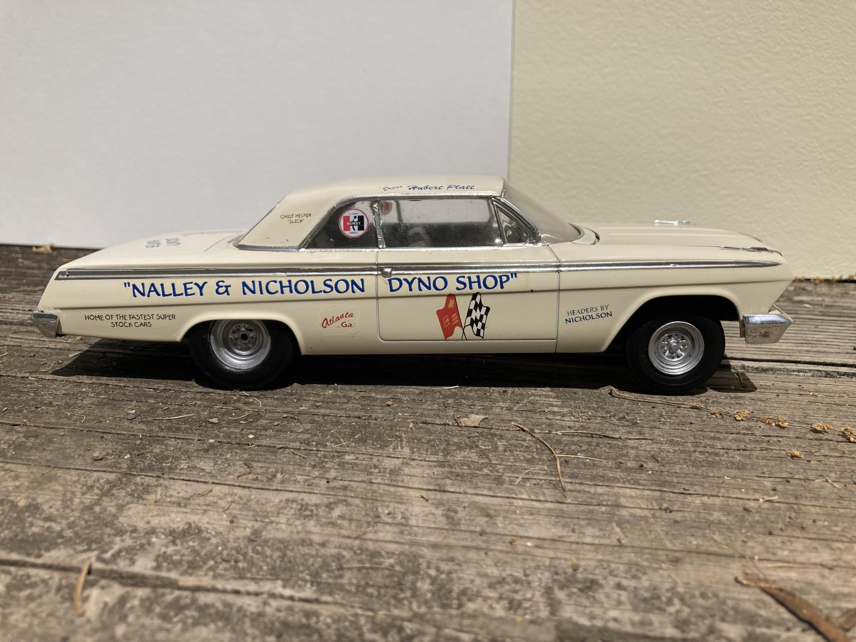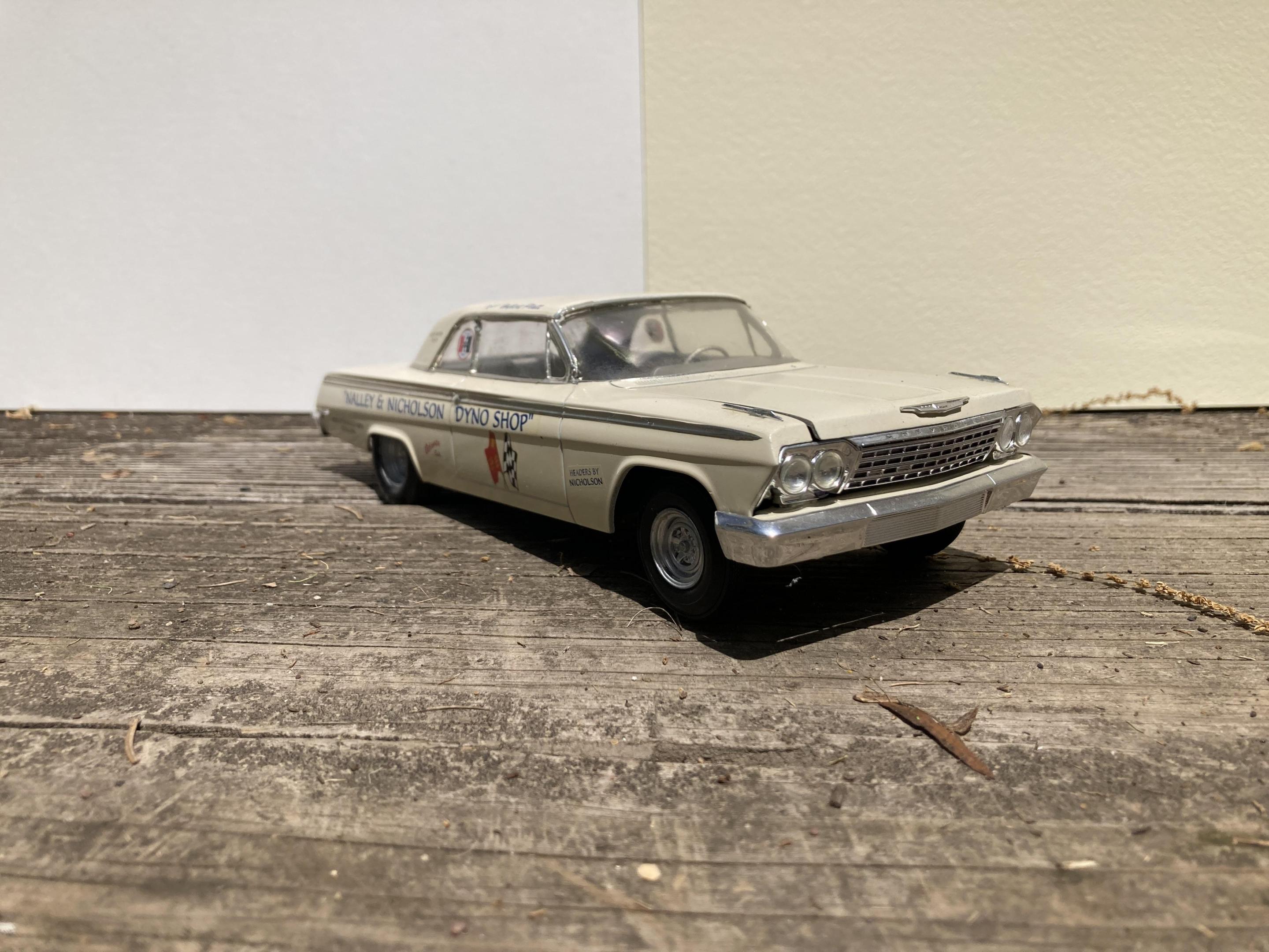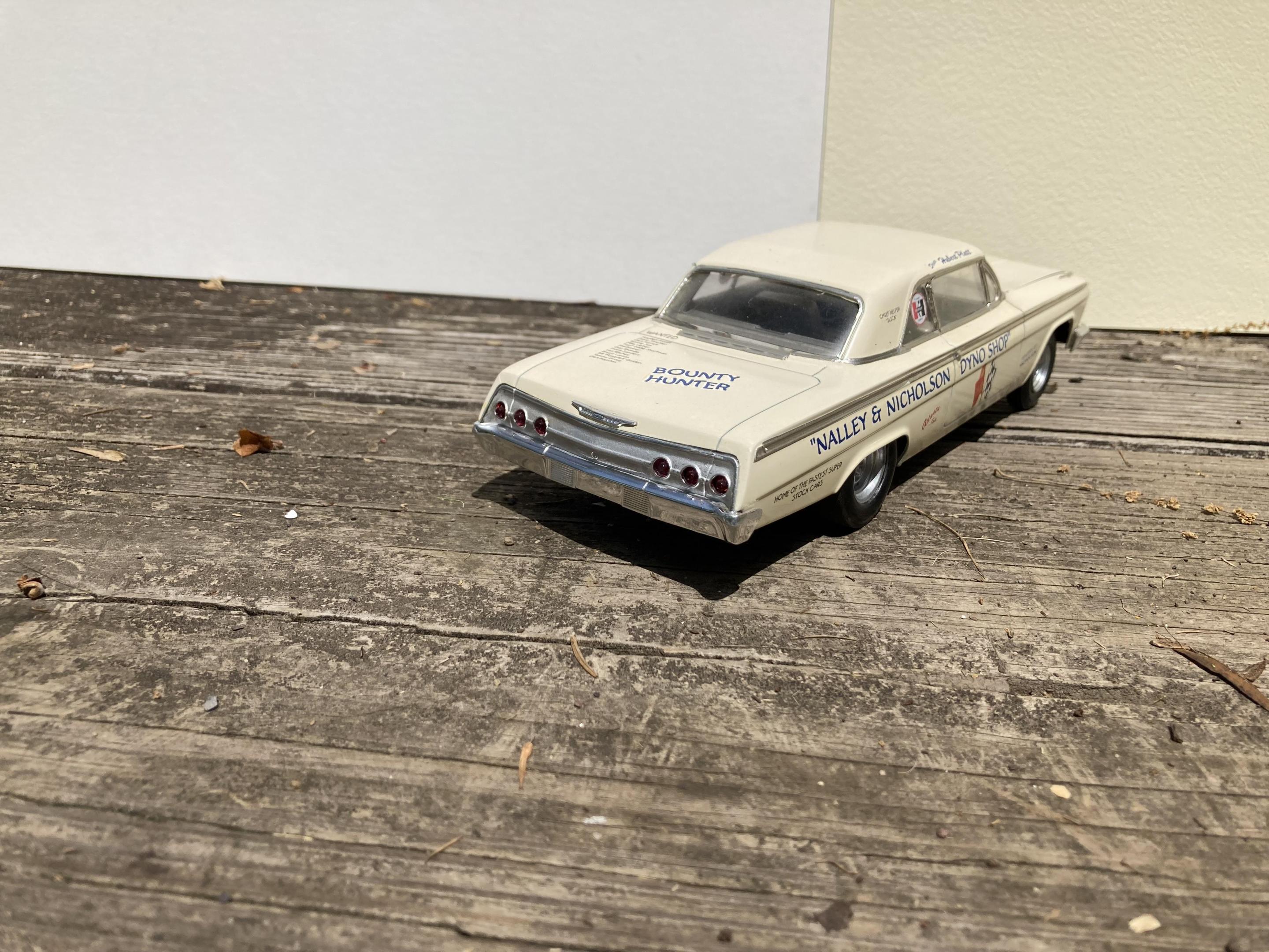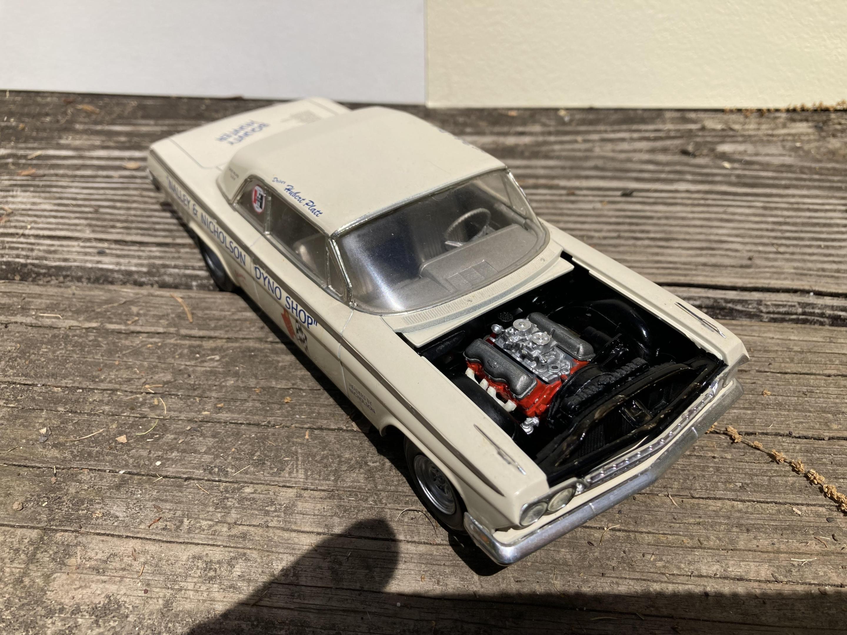 This is a box stock revell kit with the front end raised and headers from amt’s 65 chevelle wagon. When I built this I didn’t have a good reference photo, and I totally missed the color choice as I used a light ivory instead of a light yellow. Unfortunately the decals were sourced from mcw resins which I believe are no longer available. Overall this is a really nice building kit that makes a convincing super stocker. Thanks for checking it out, mike