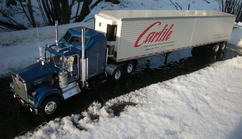 Know almost all the series "Ice Road Truckers". I have tried to recreate a truck from the 4/5 season, here is the result. When Trailer I've added 2 hole rims, at the Truck other things like headlights, snow chains, modified exhaust system, etc. Is something improvised because there is not the Kenworth T800 as a model. Have fun with the pictures the ice is melting